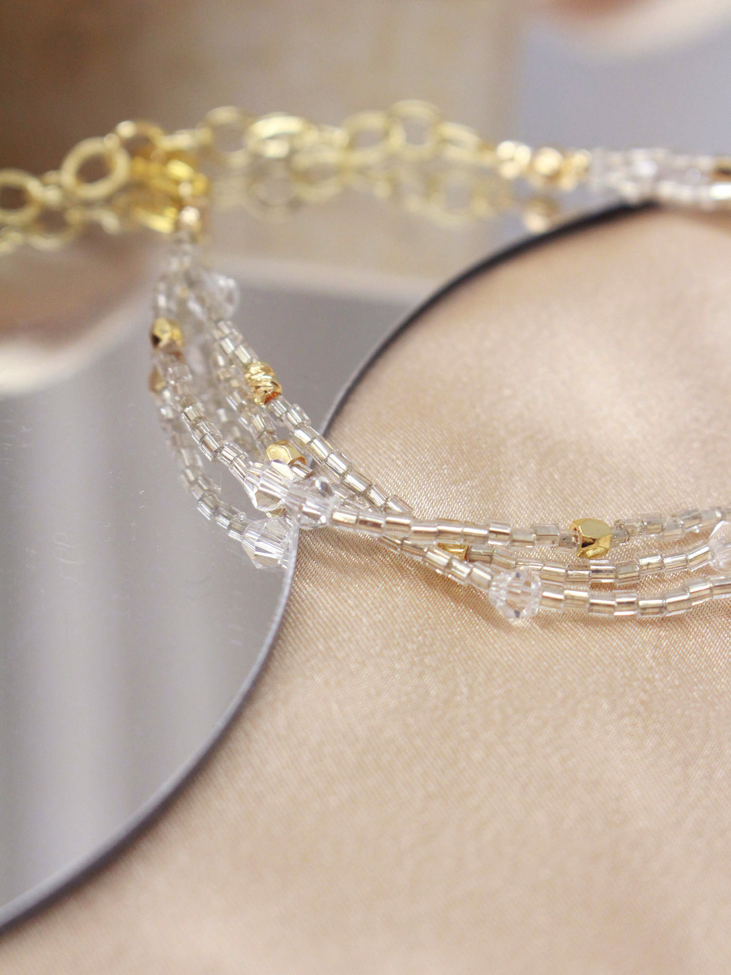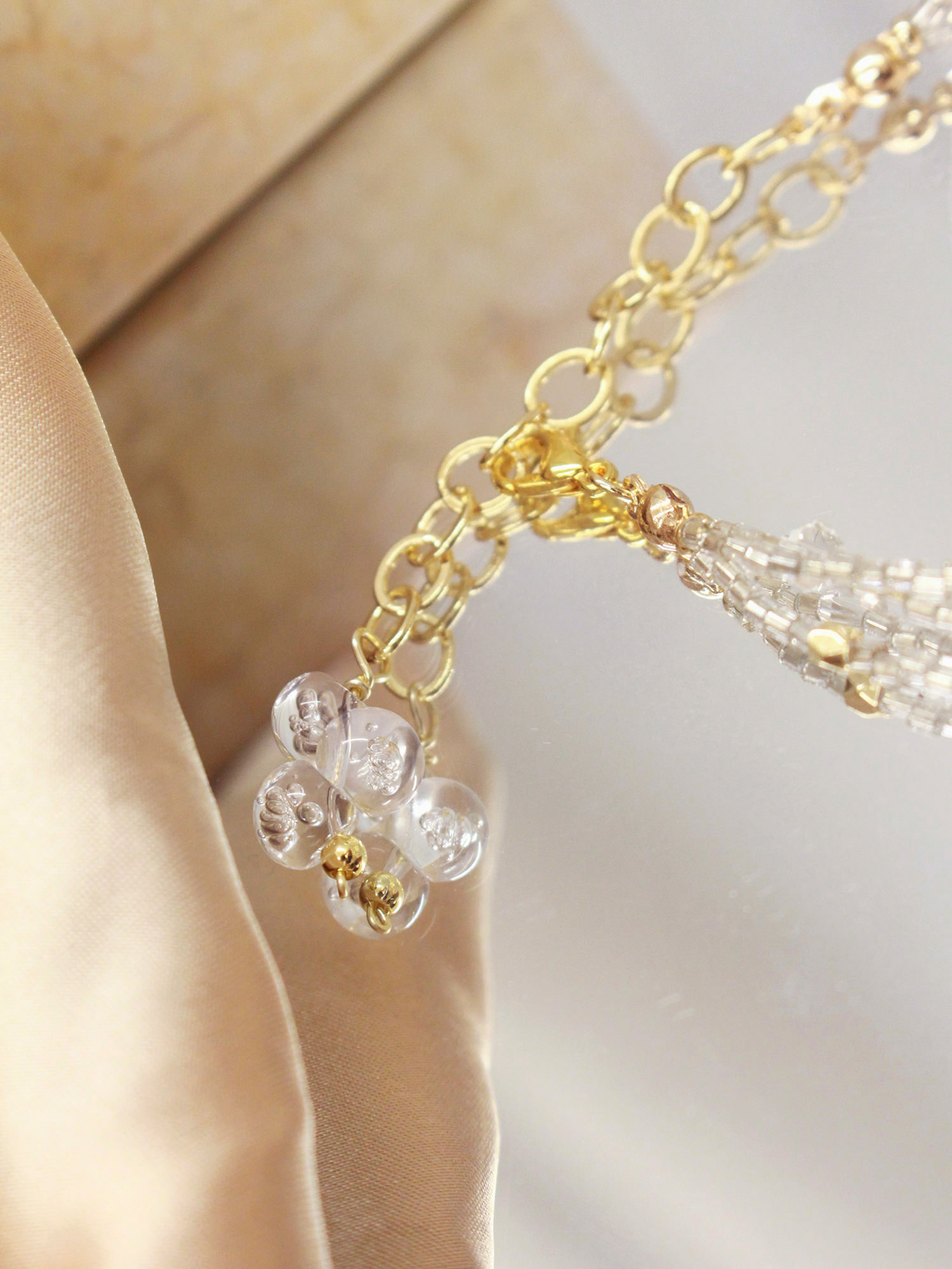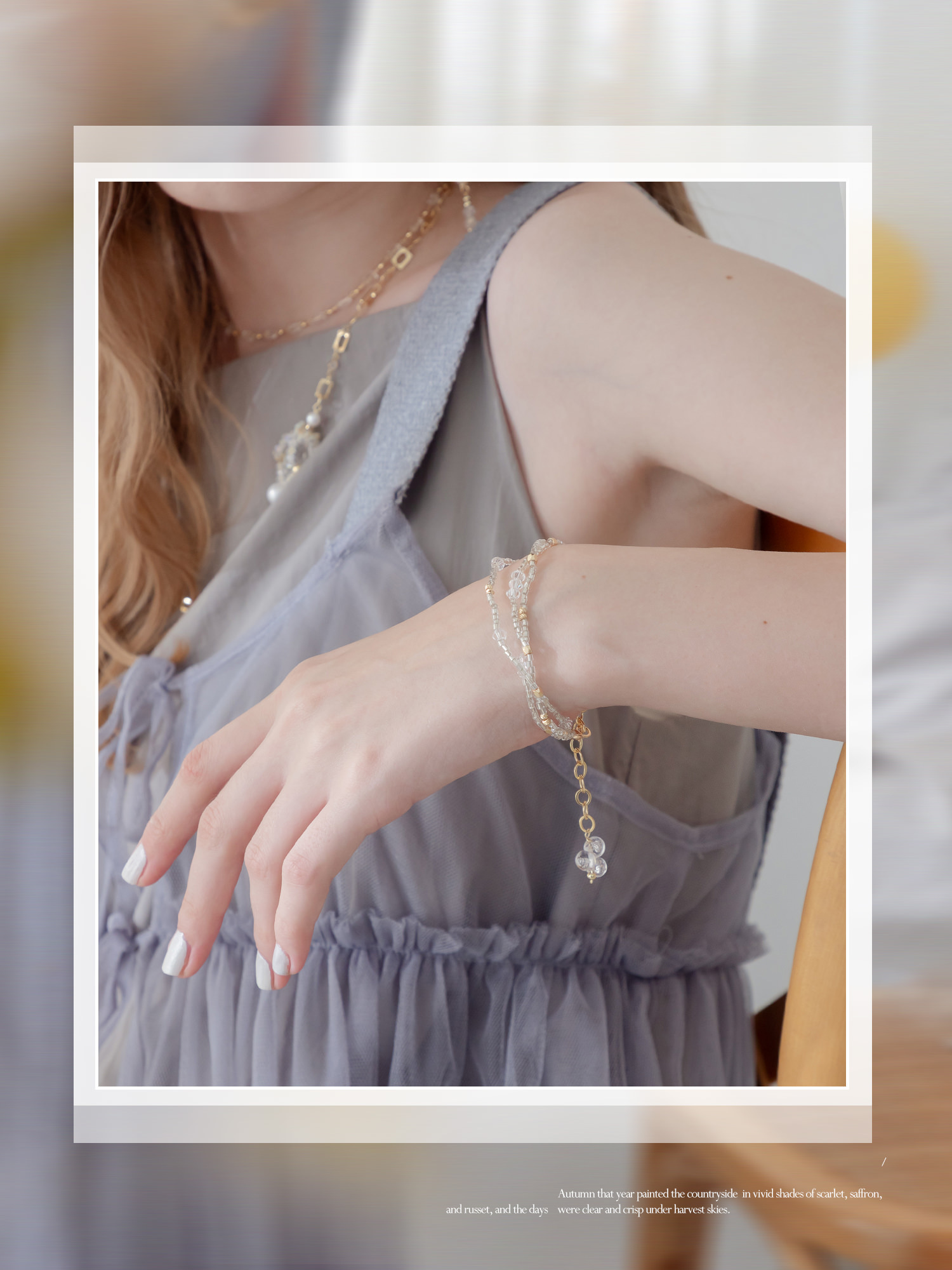 ▸ 素材:銅鍍14KGP、水晶珠、串珠、日本樹酯氣泡珠等複合材質