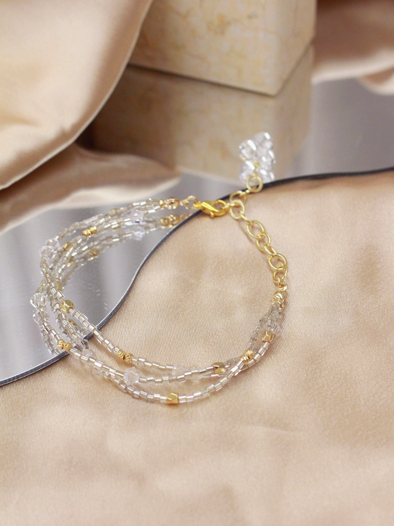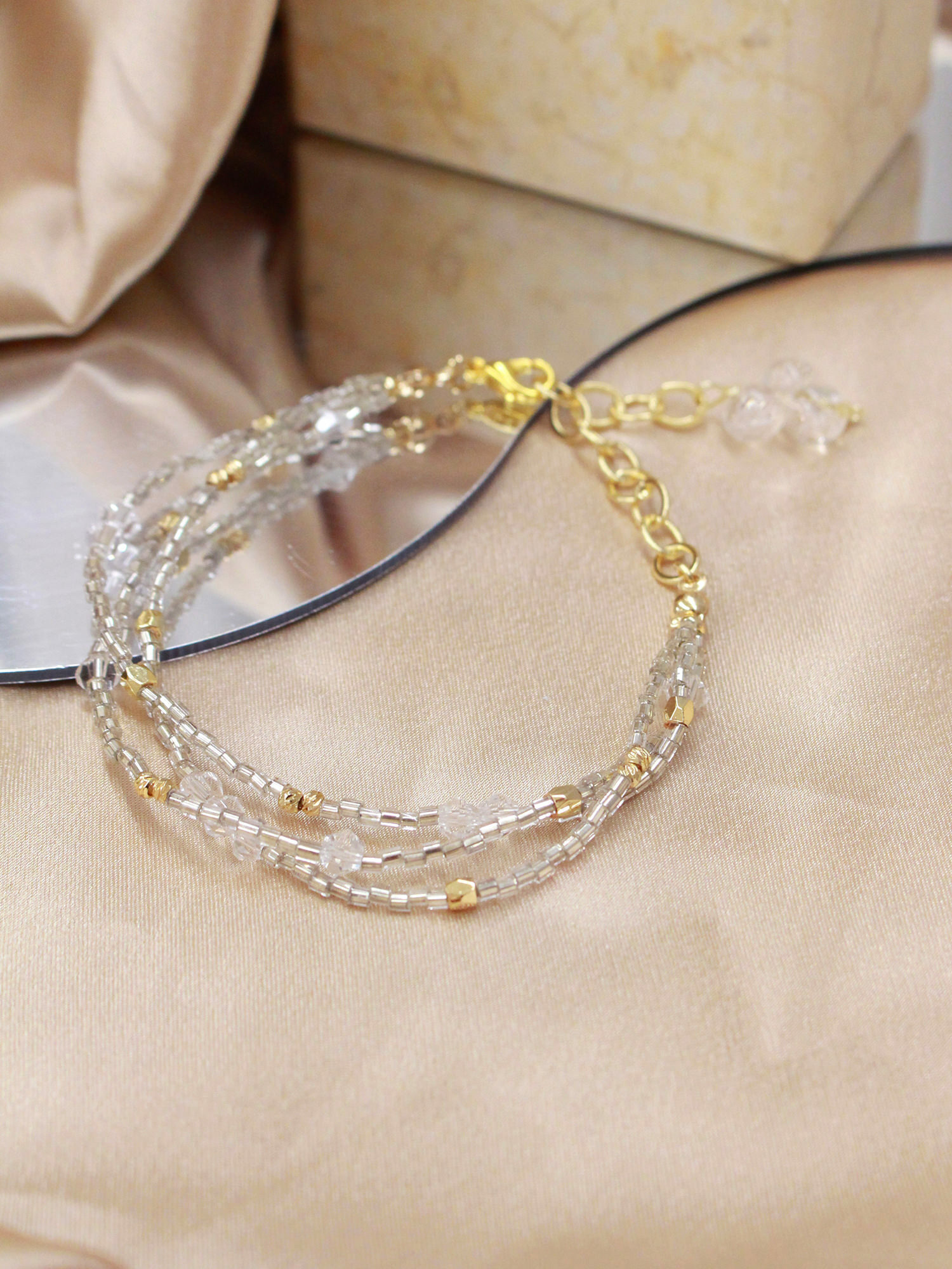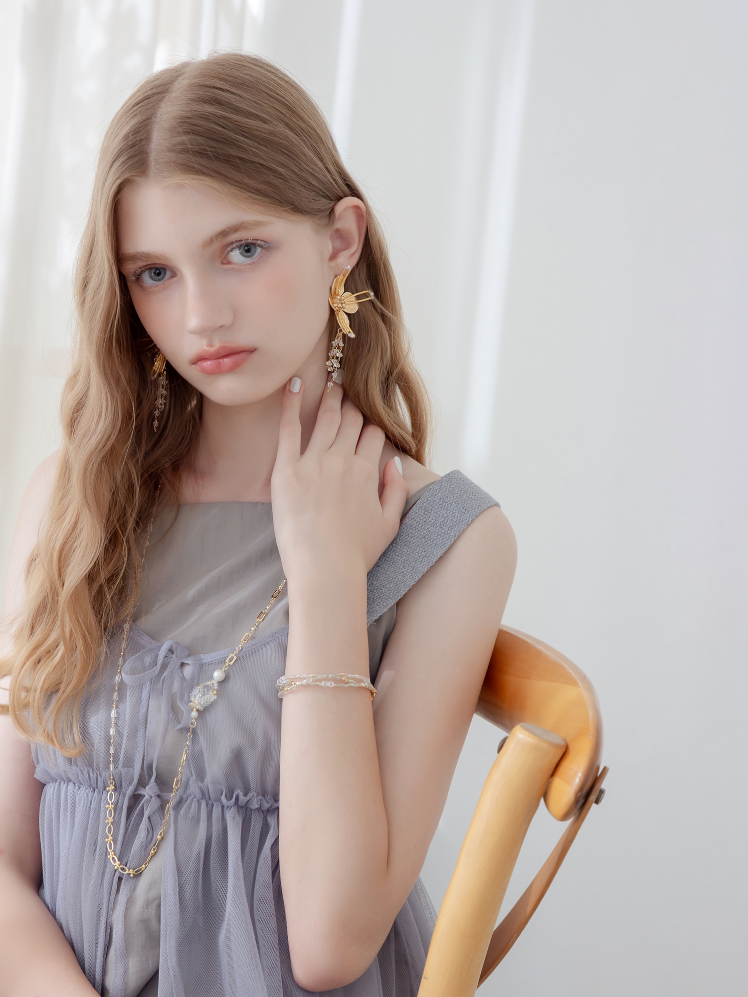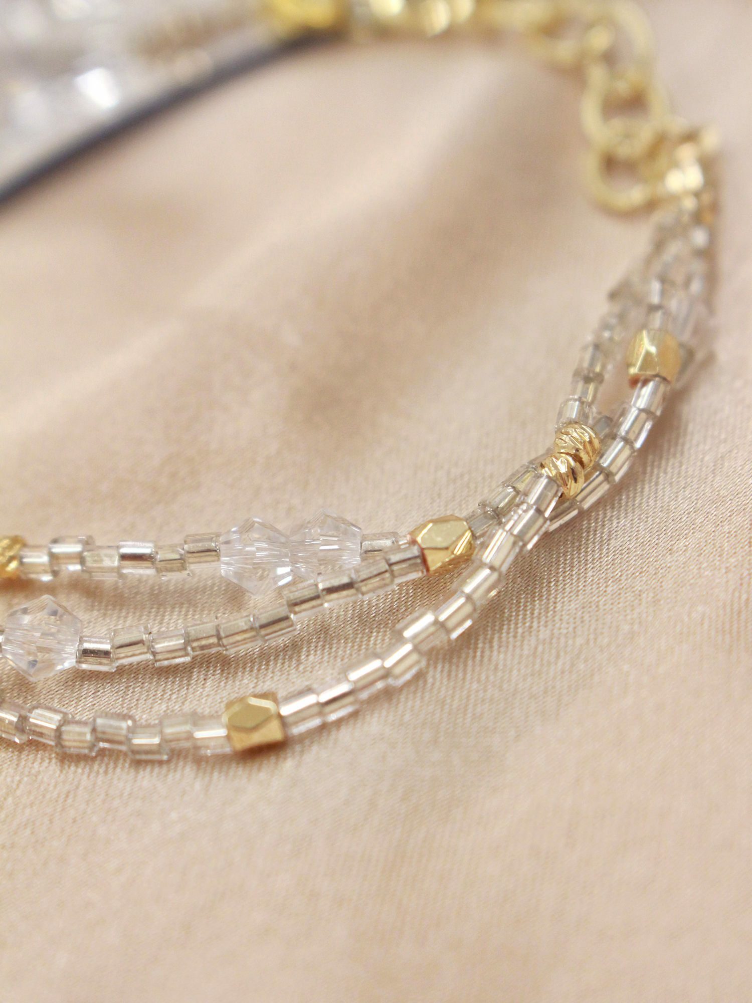 ▸ 素材:銅鍍14KGP、水晶珠、串珠、日本樹酯氣泡珠等複合材質