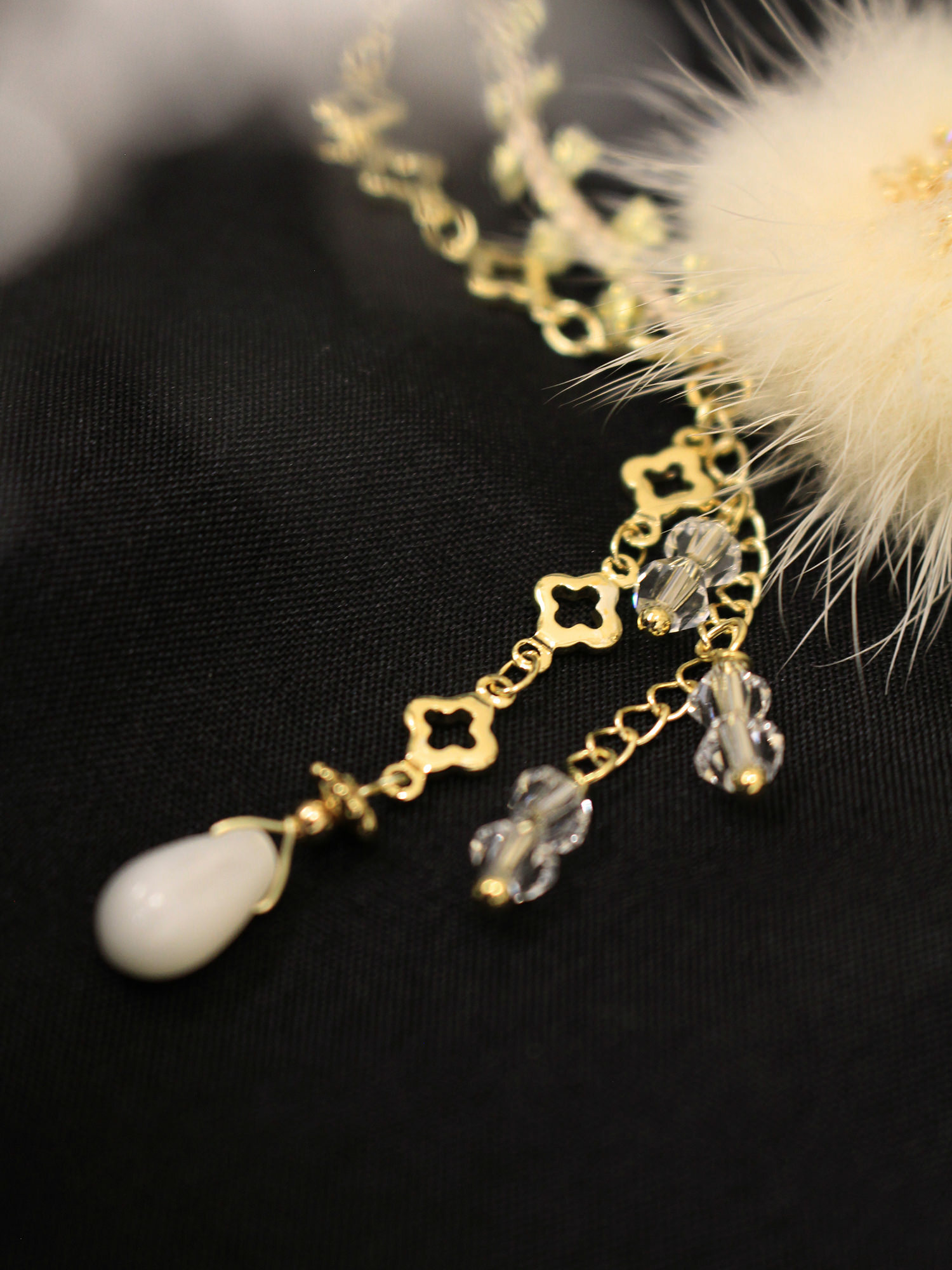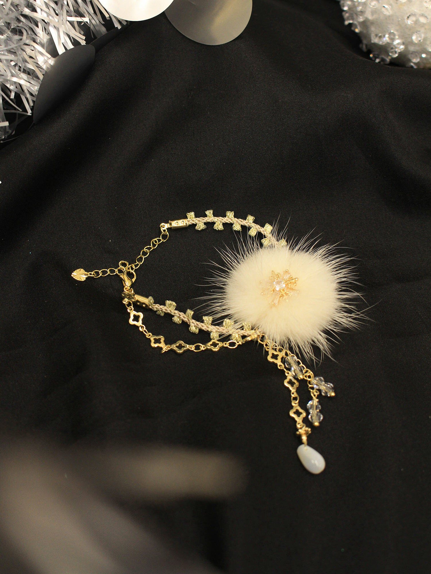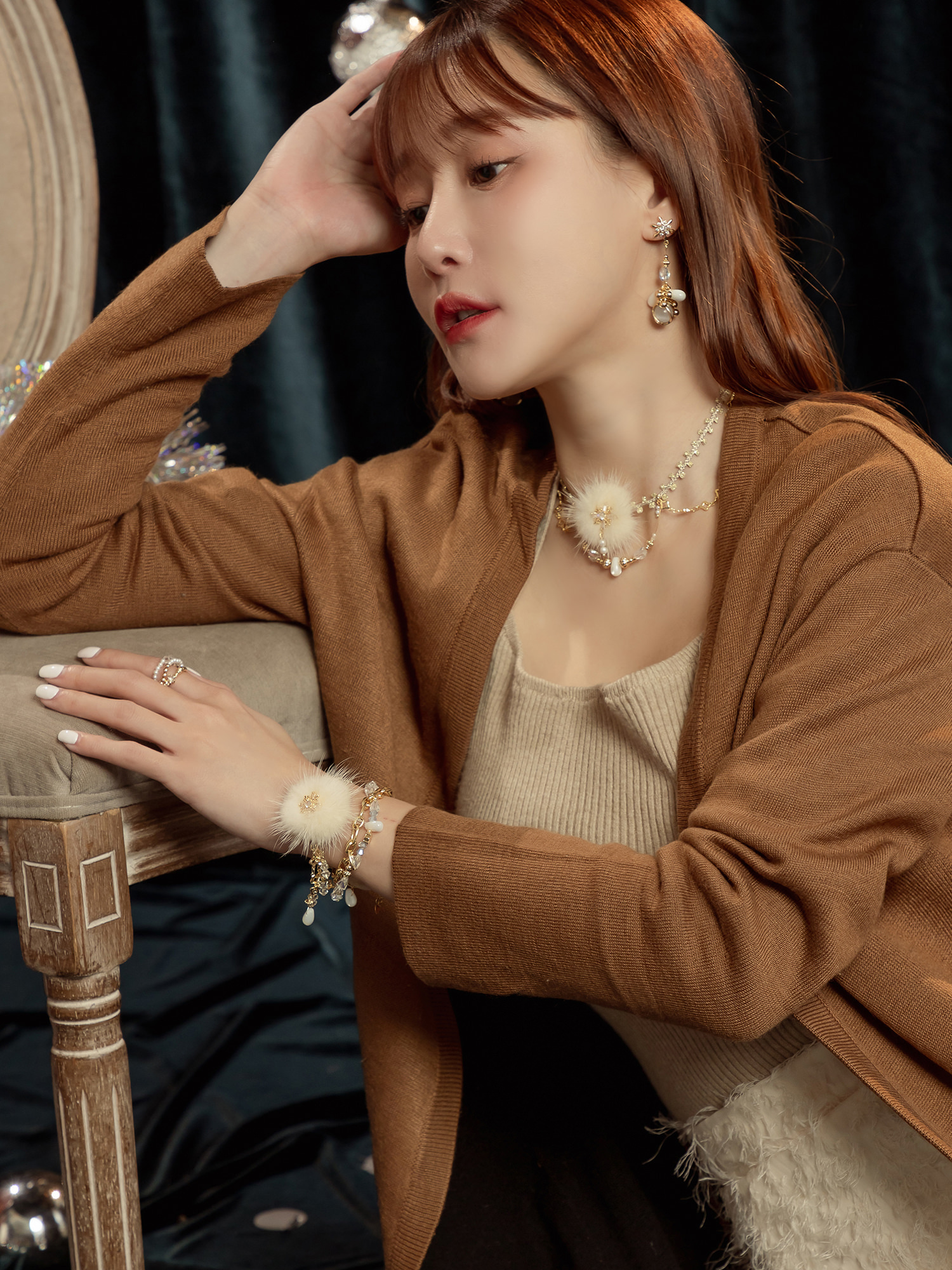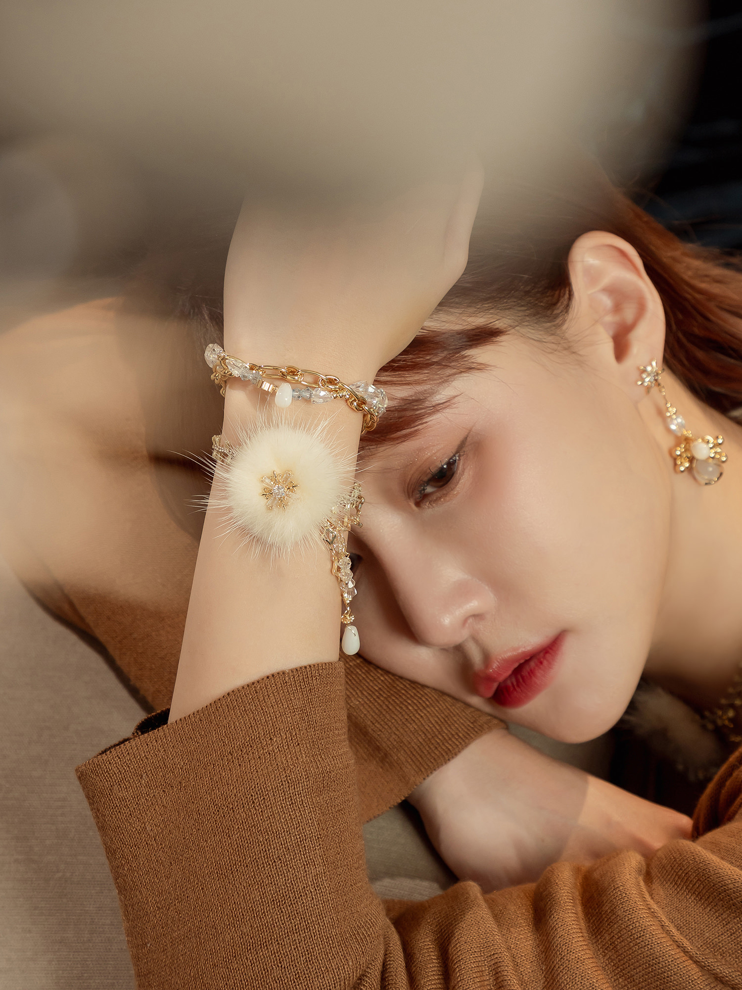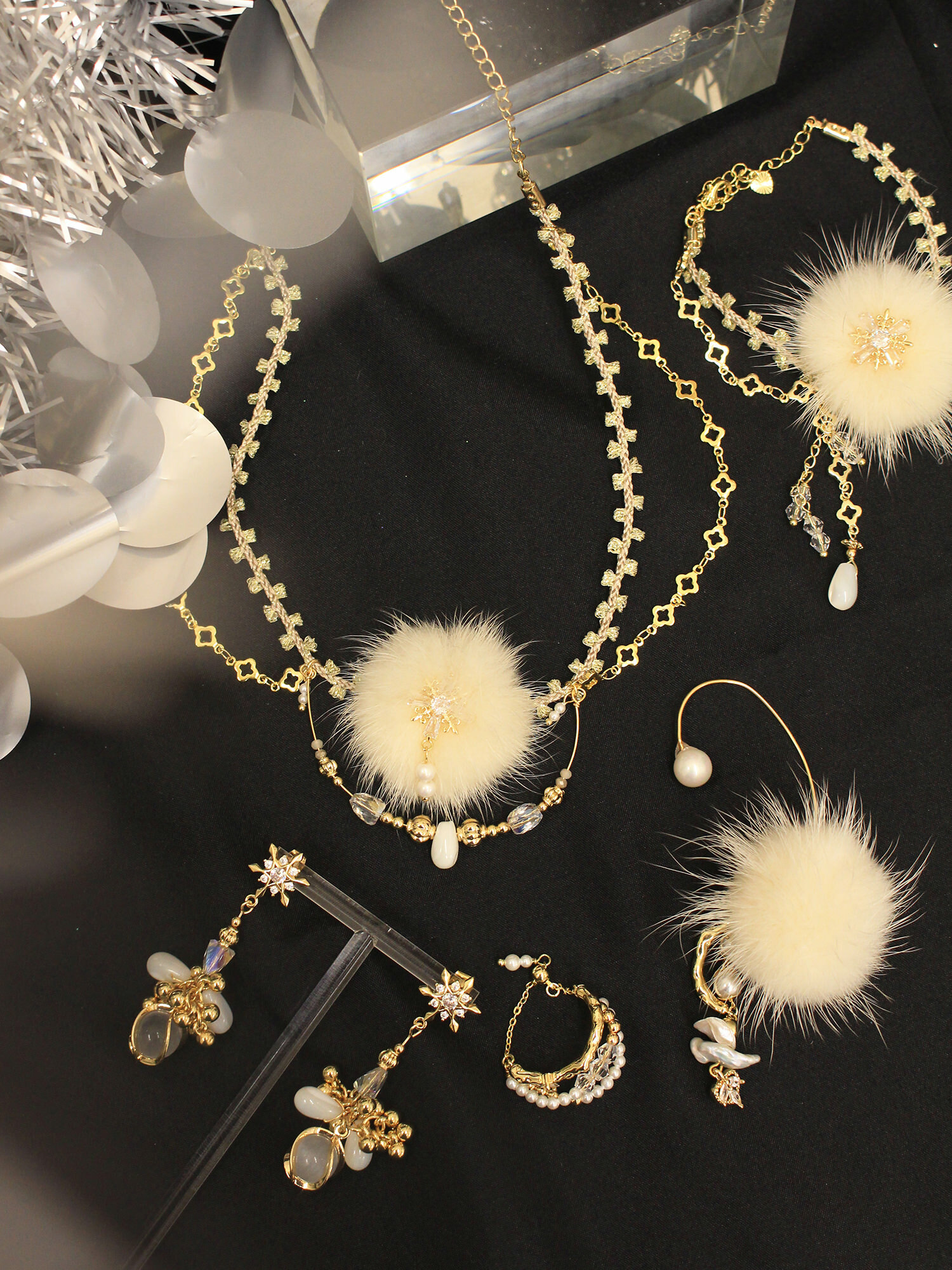 ▸ 素材:銅鍍14KGP 、天然貝殼、毛球、聚酯纖維、水晶珠、鋯石等複合材質
