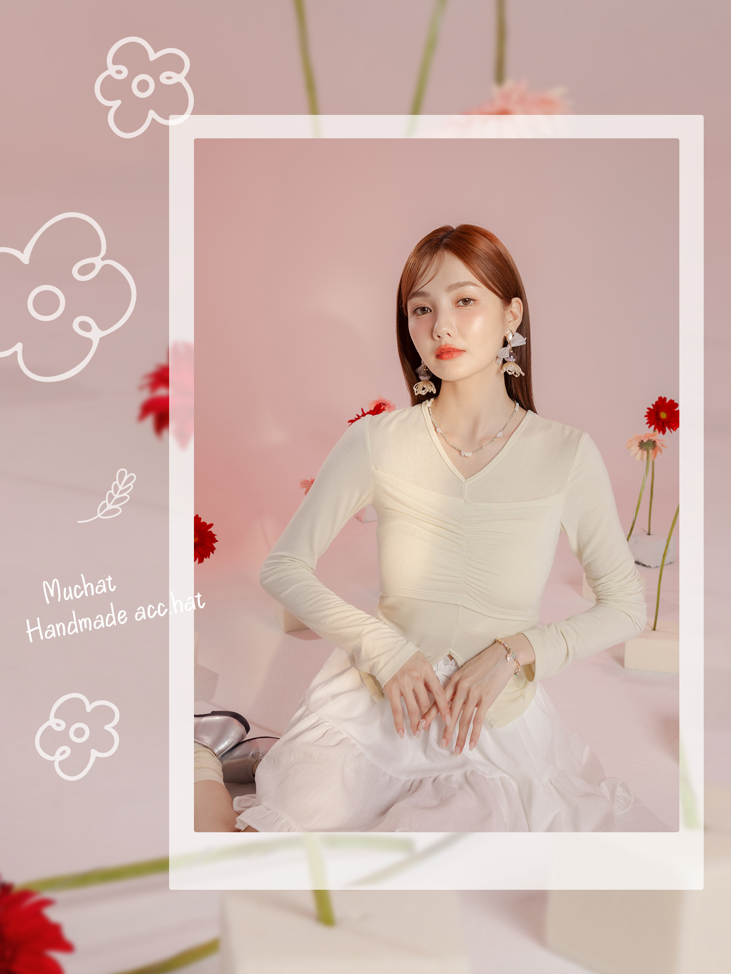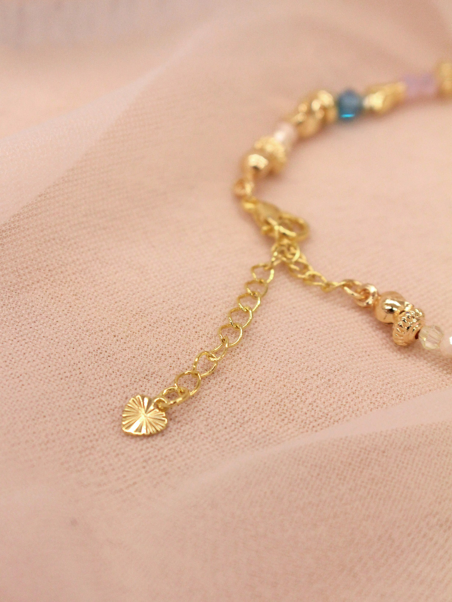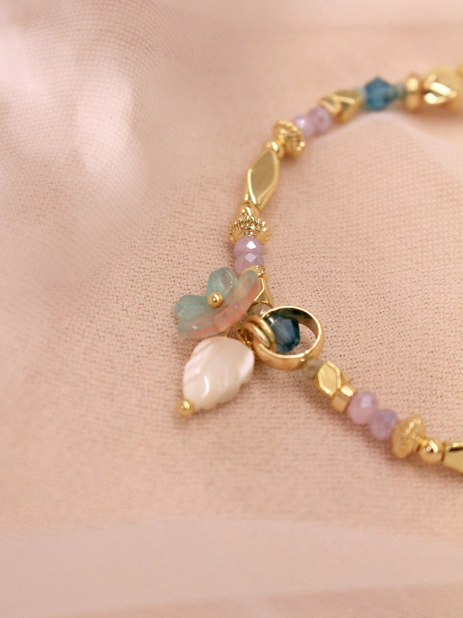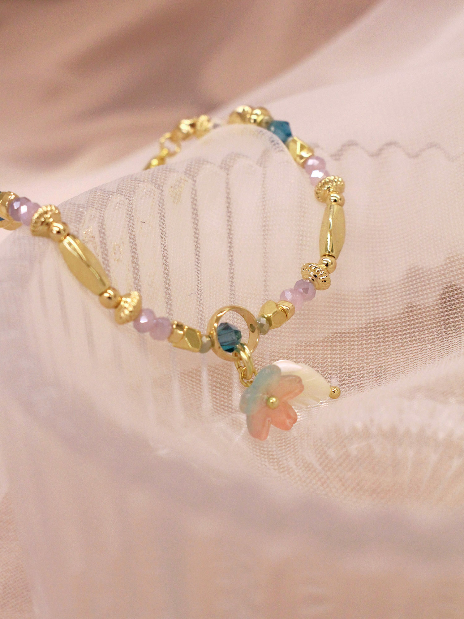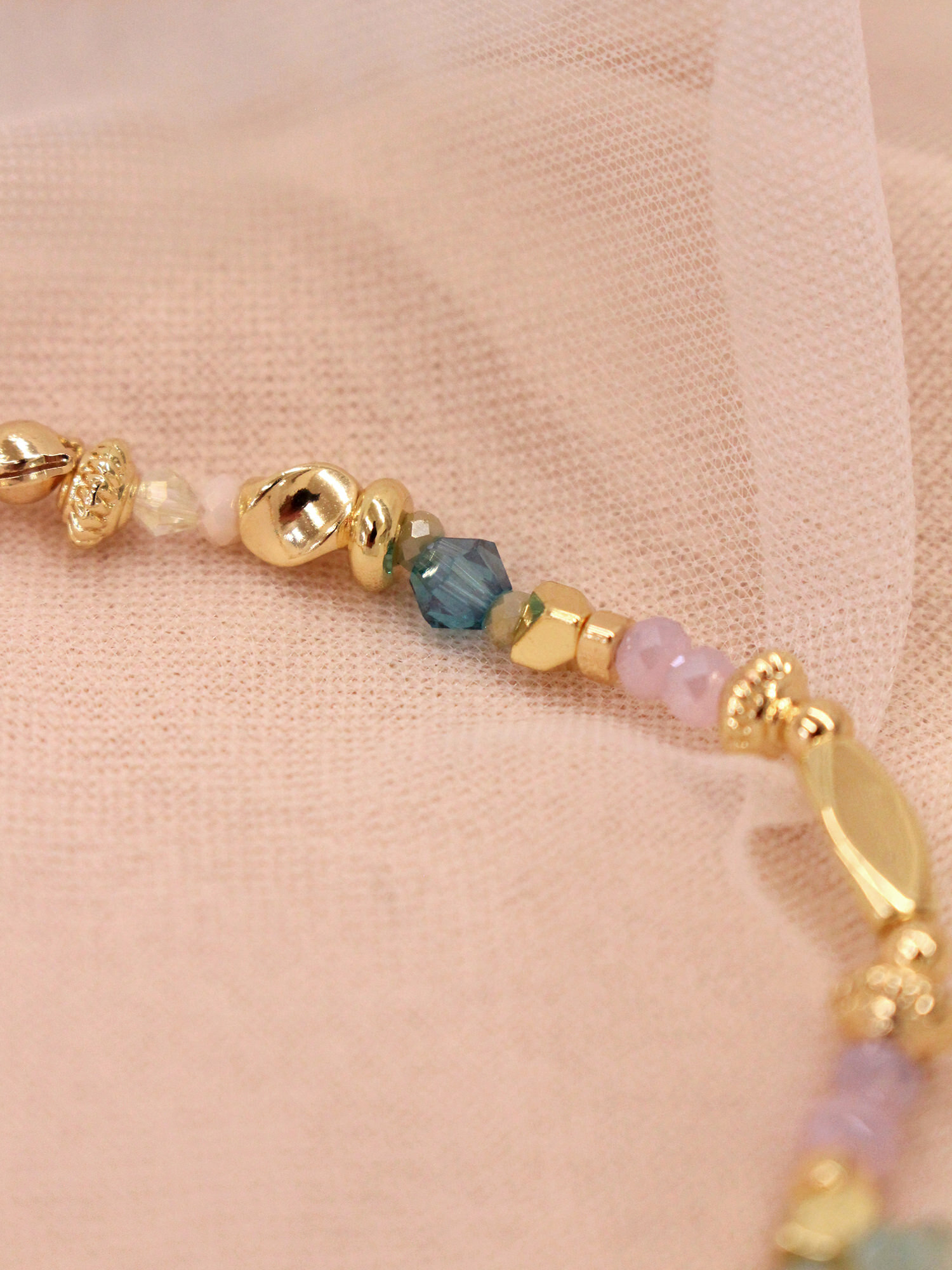 ▸ 素材:銅鍍14KGP、天然貝殼片、樹酯、水晶珠、串珠等複合材質