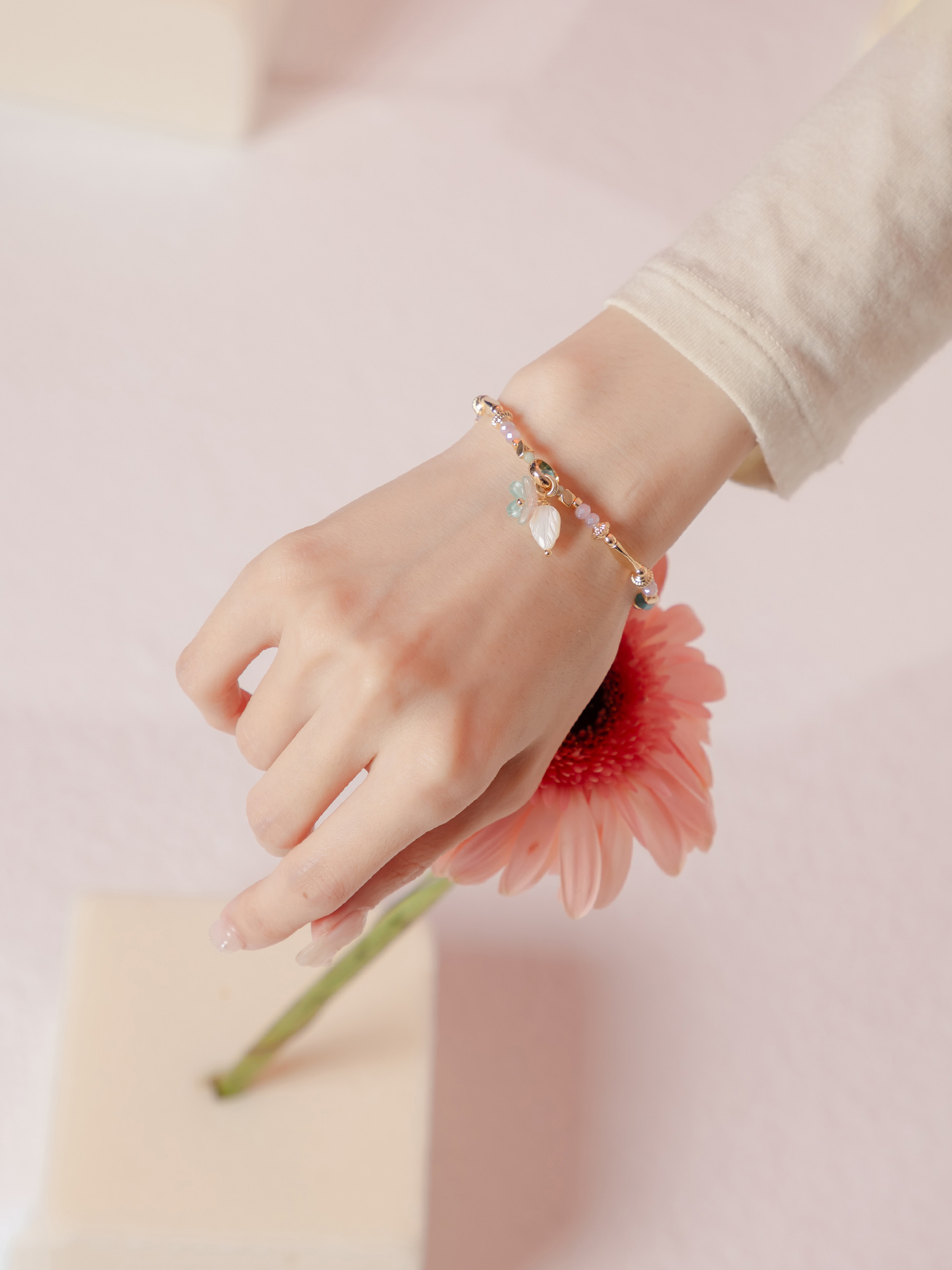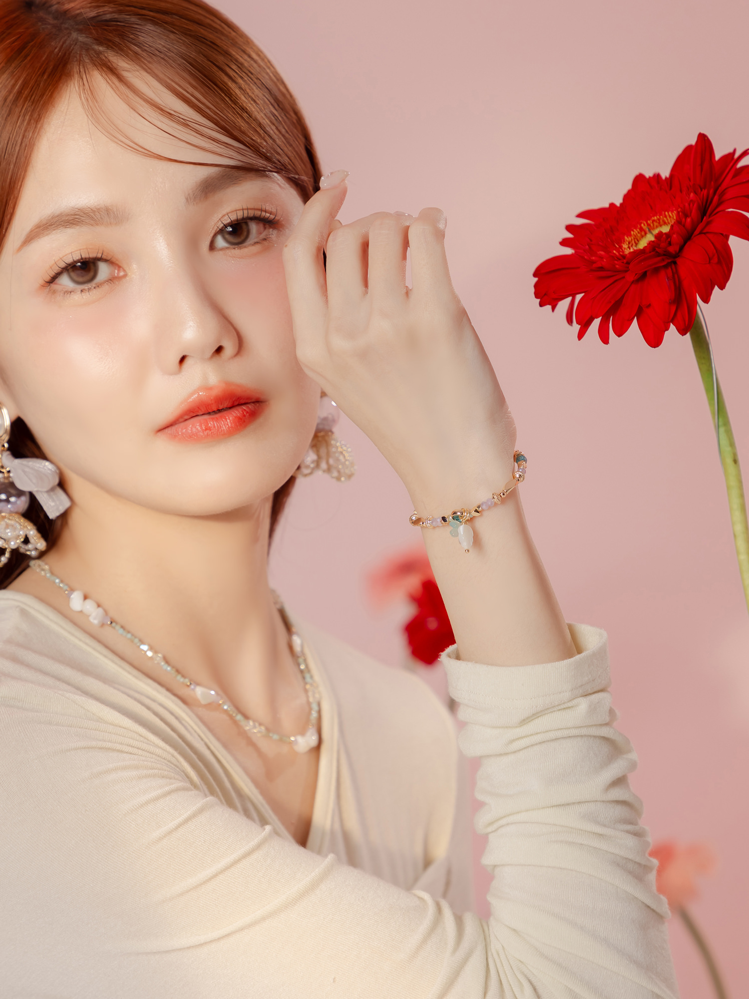 ▸ 水晶、貝殼、天然珍珠為天然材料,混色與花紋每款或有差異,鍍金屬不均、斑點、刮痕與凹洞為正常,非瑕疵。