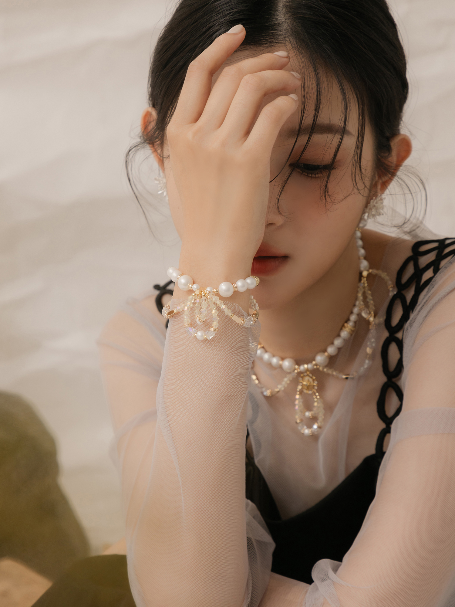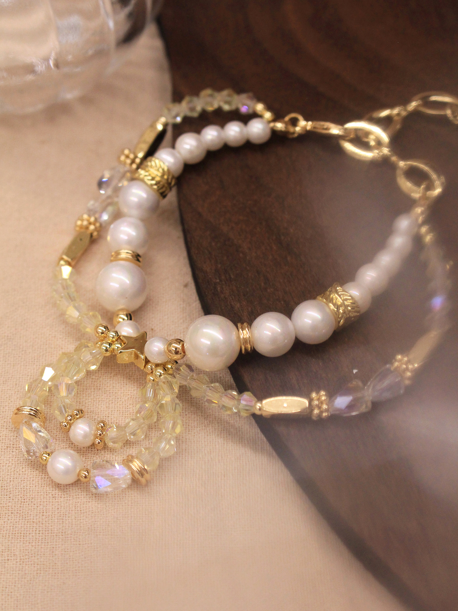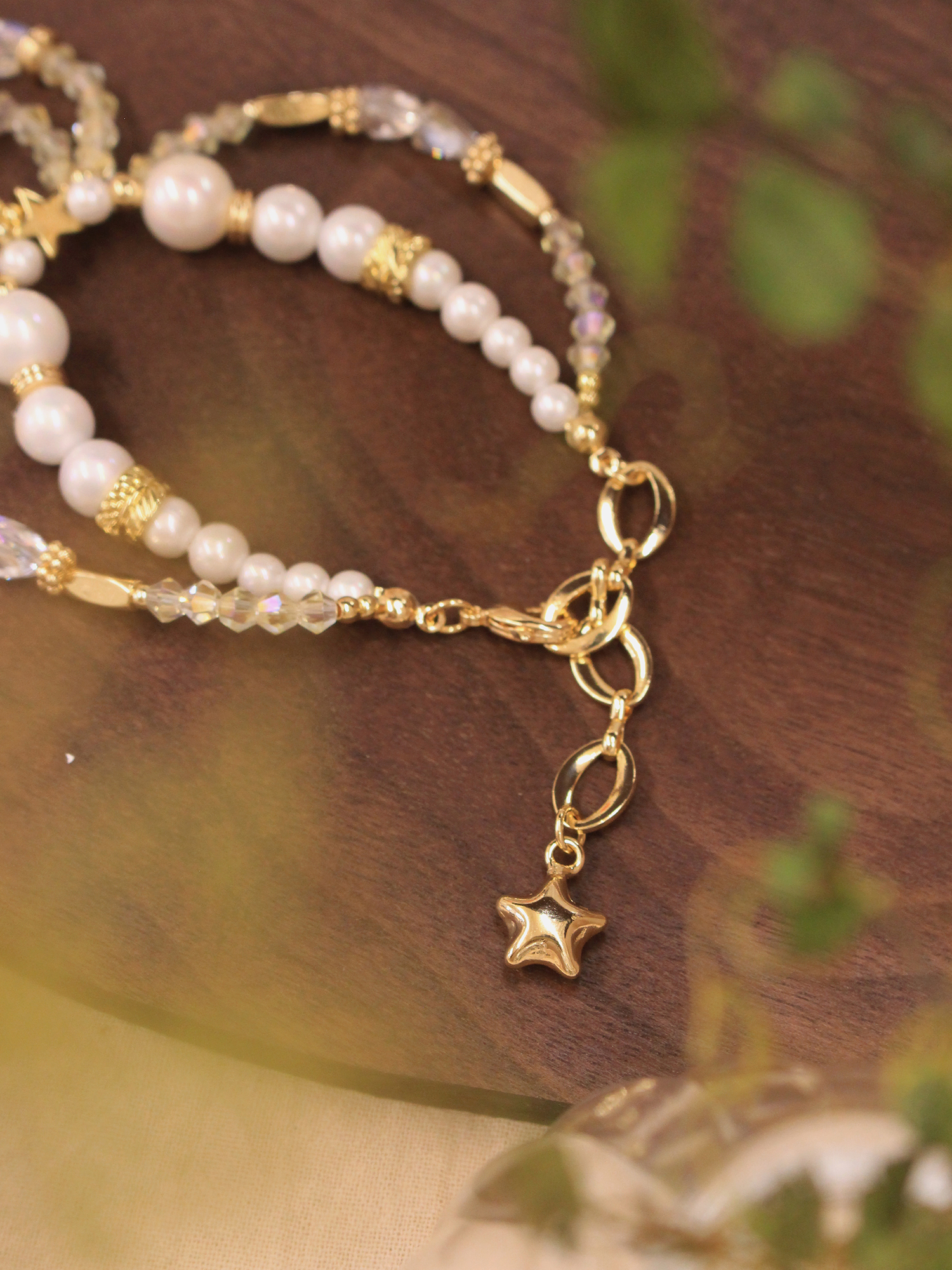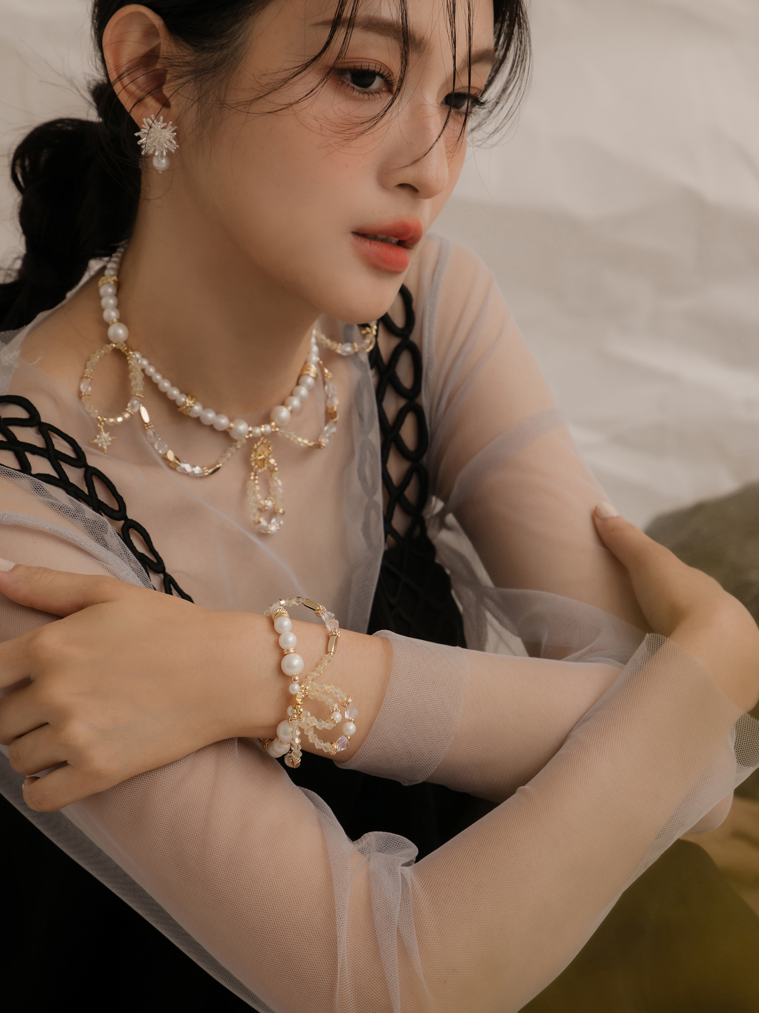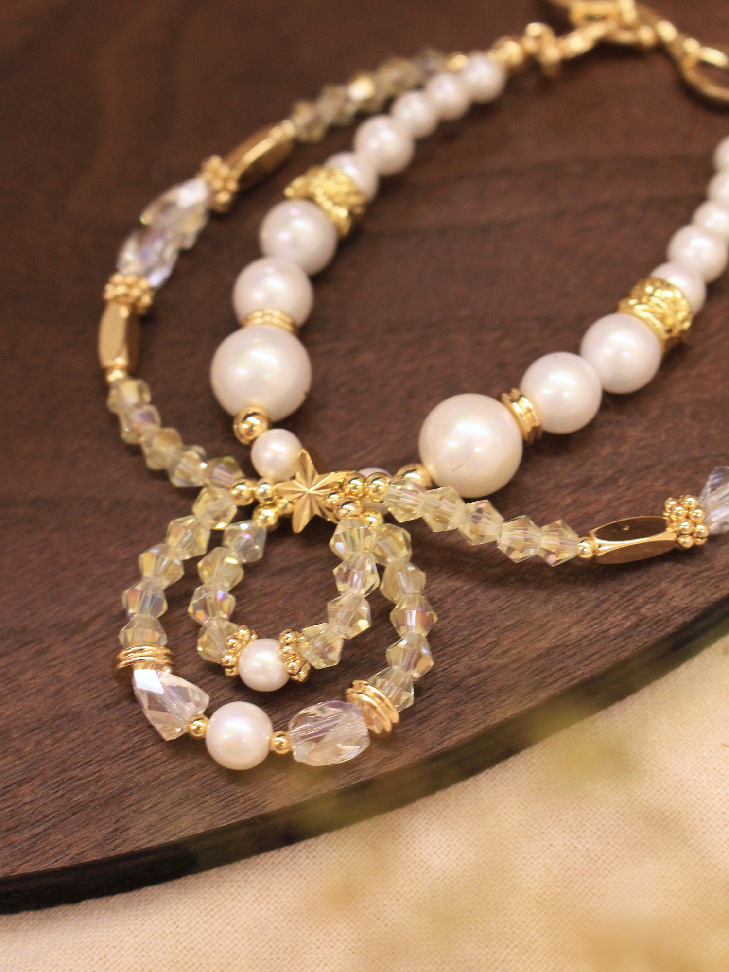 ▸ 素材:銅鍍14KGP、仿珠、水晶珠等複合材質