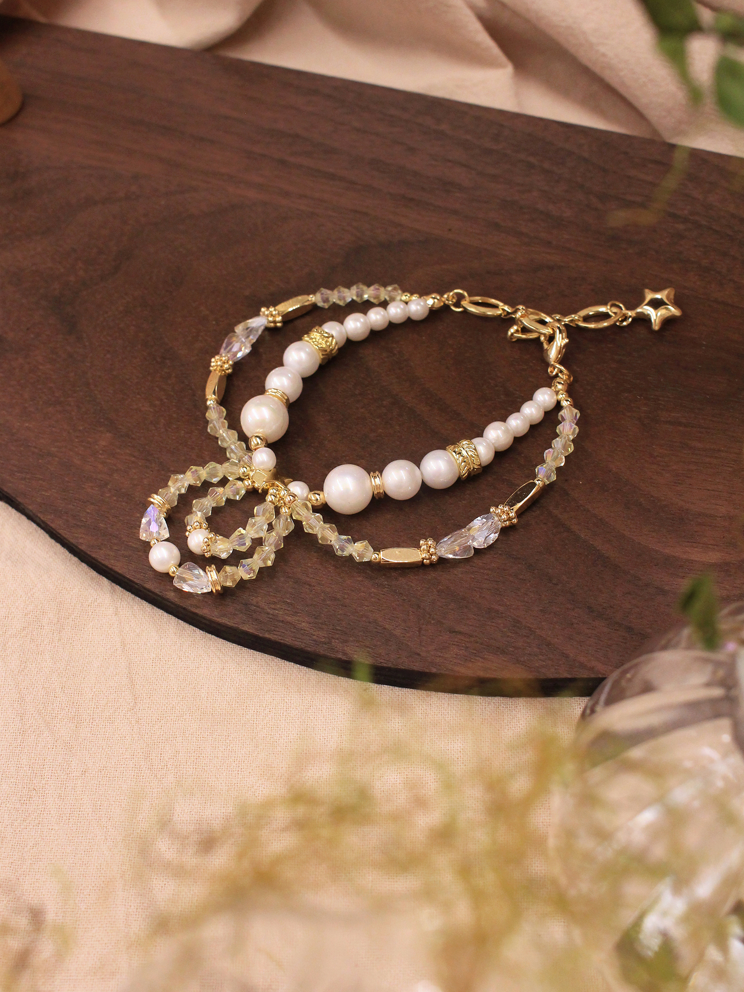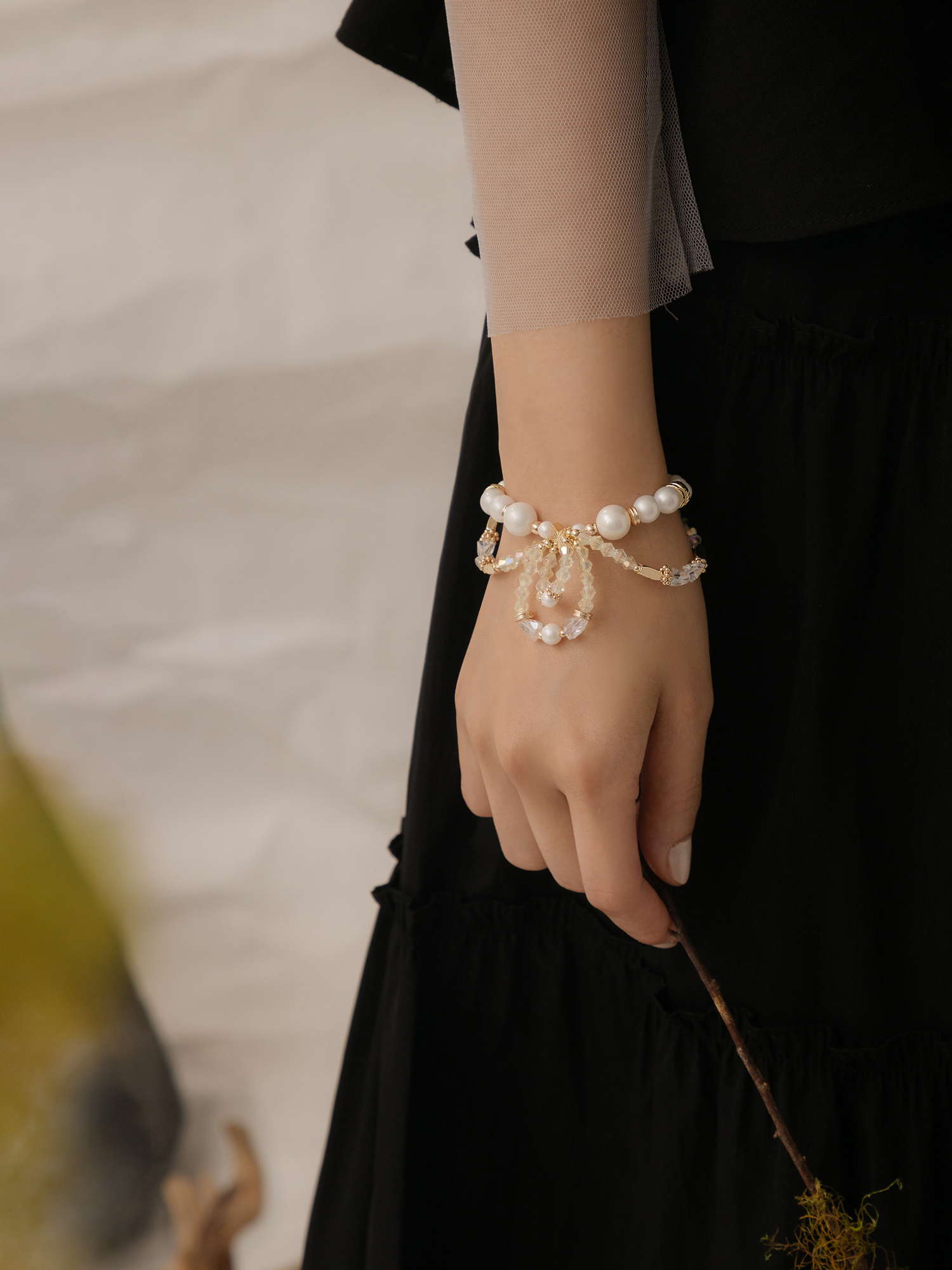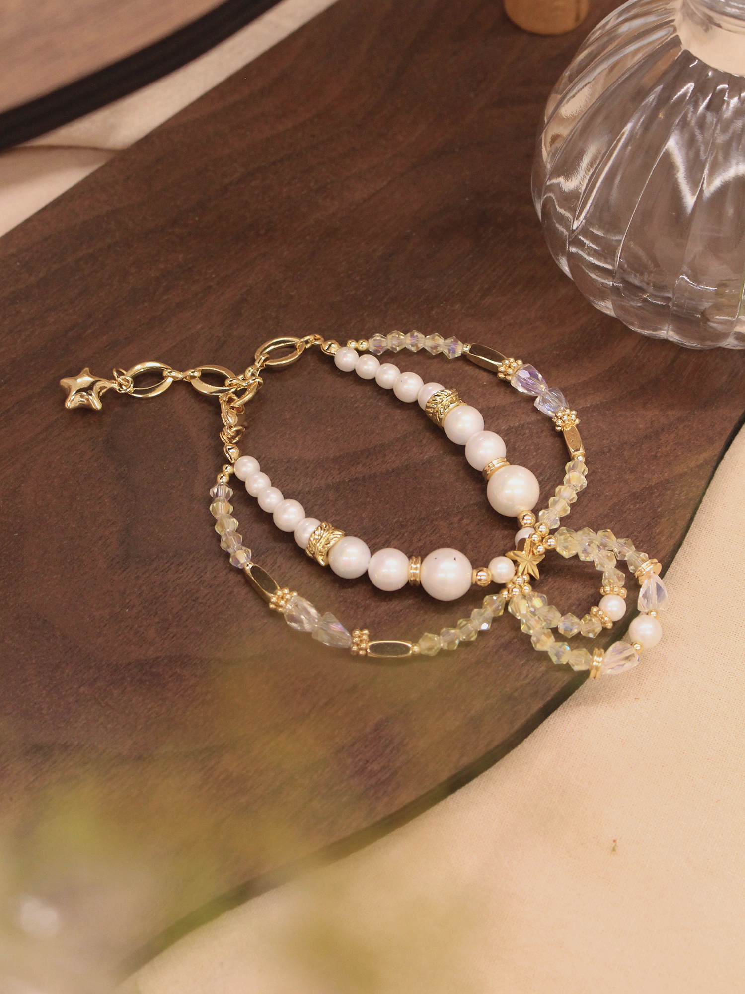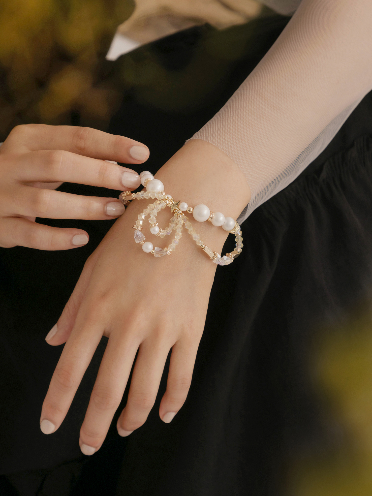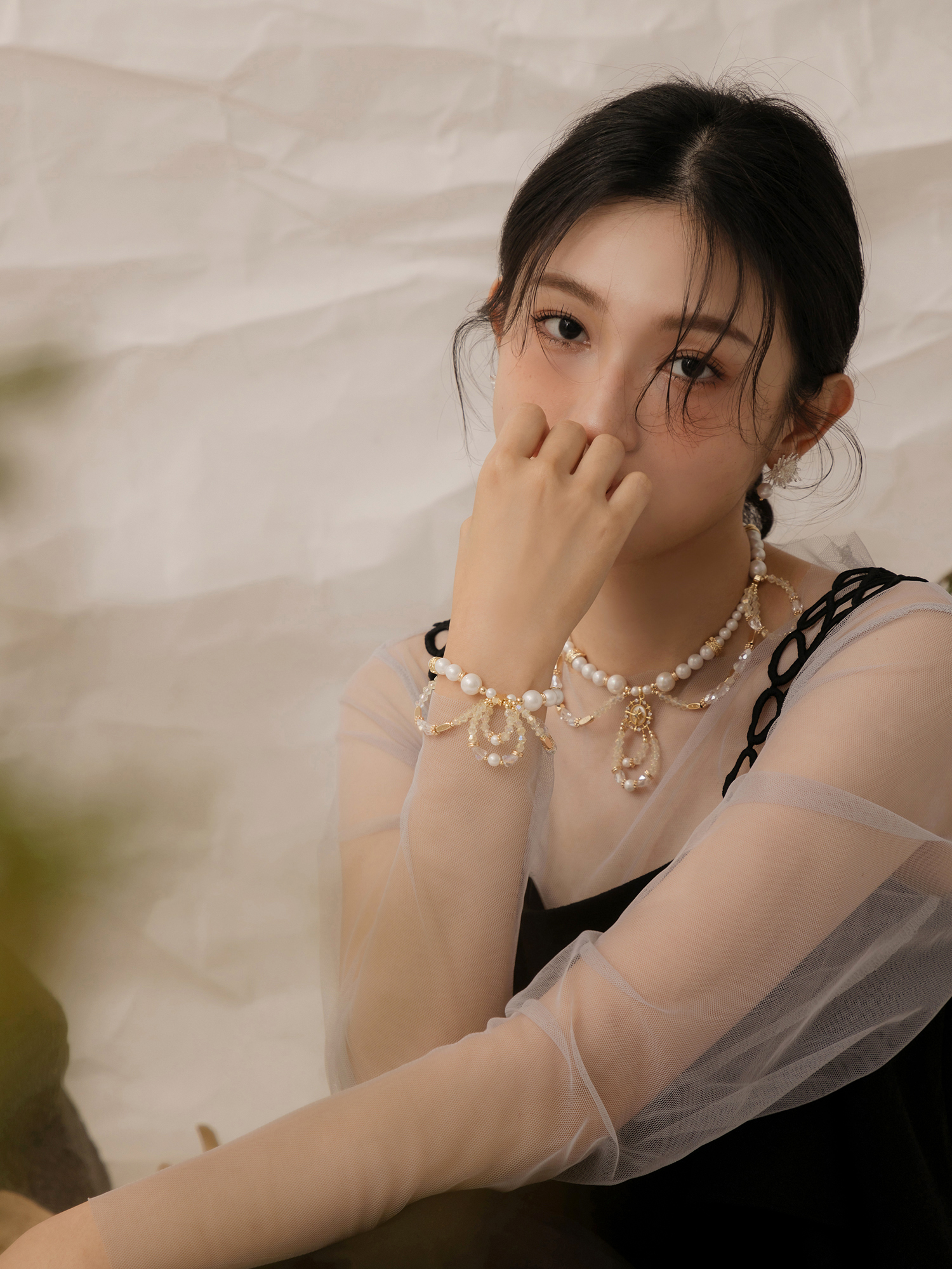 ▸ 素材:銅鍍14KGP、仿珠、水晶珠等複合材質