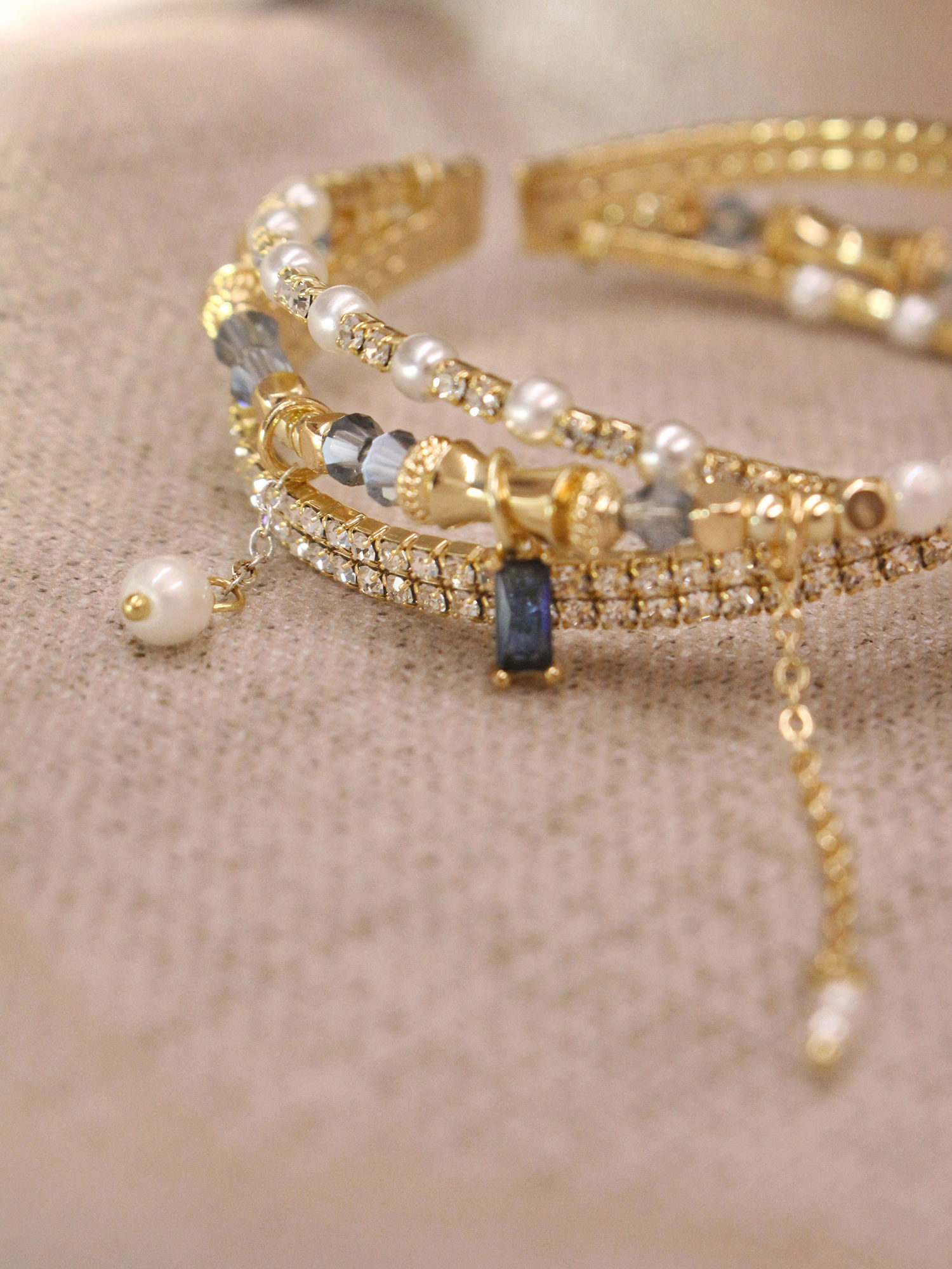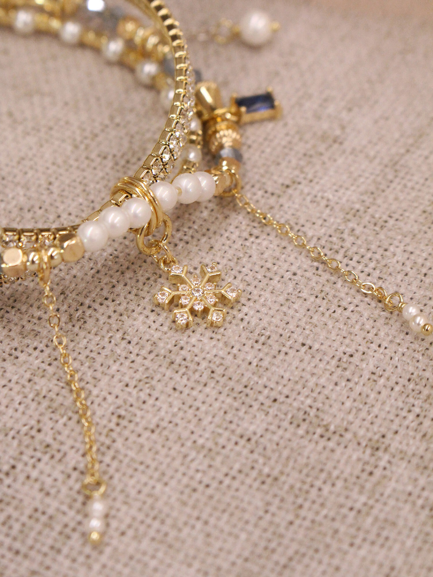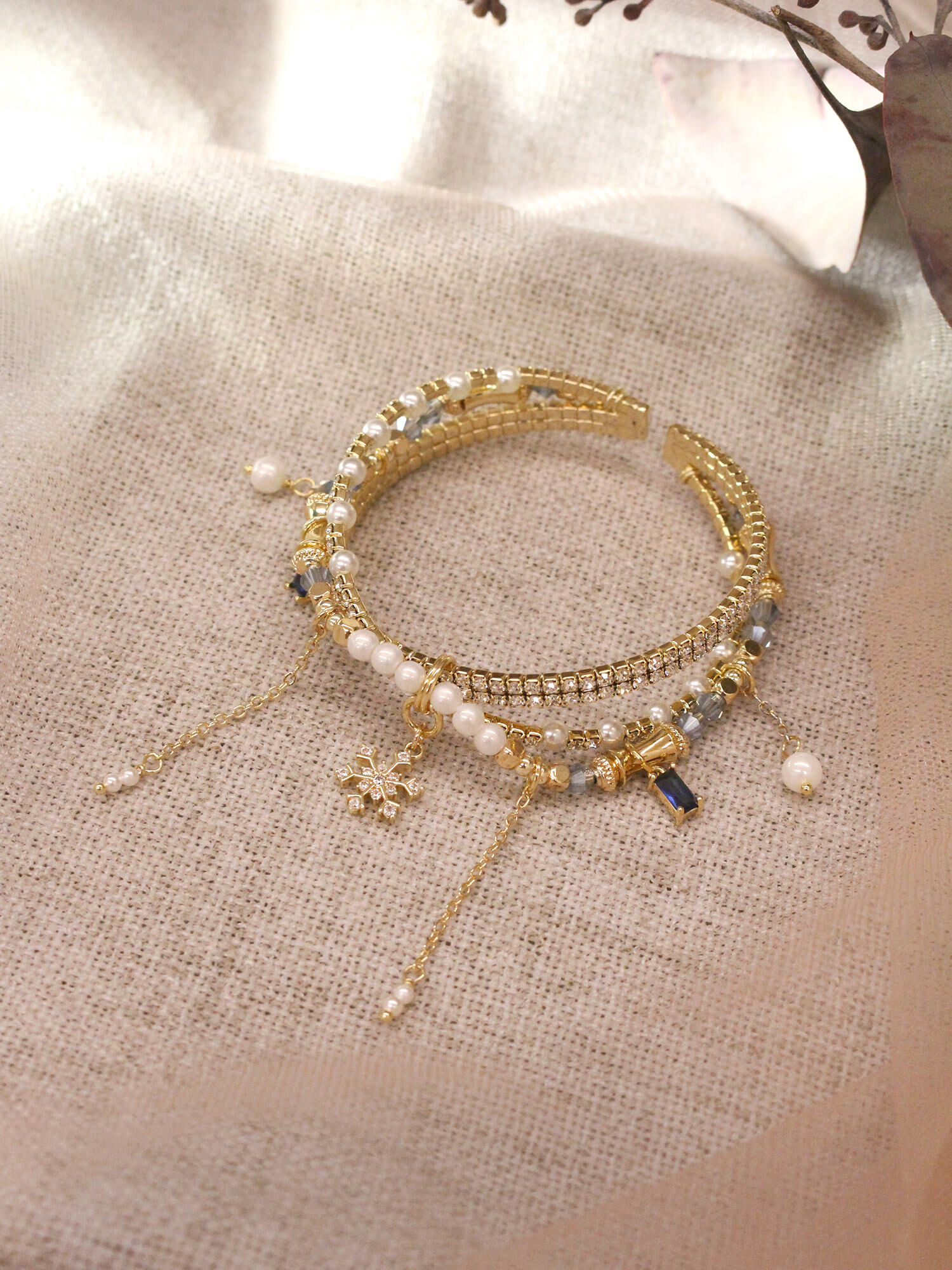 ▸ 素材:銅鍍14KGP、仿珠、鋯石、水晶珠、水晶等複合材質