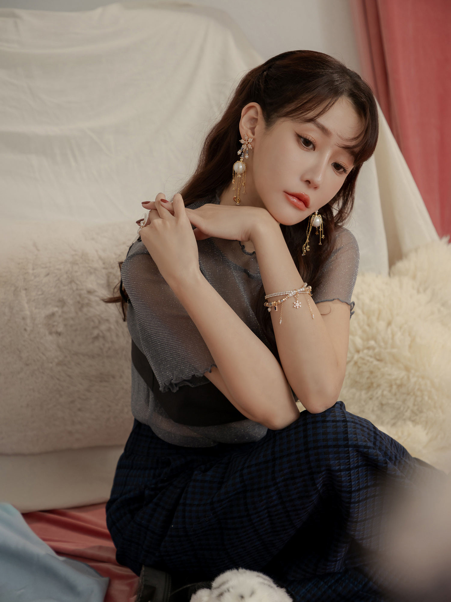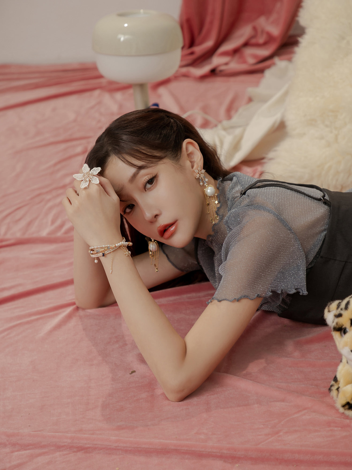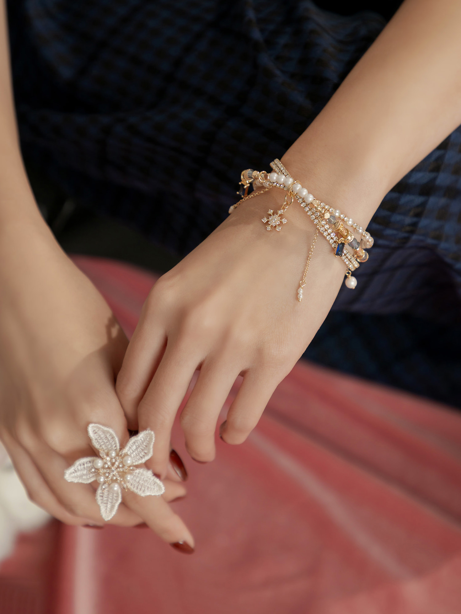 ▸ 素材:銅鍍14KGP、仿珠、鋯石、水晶珠、水晶等複合材質