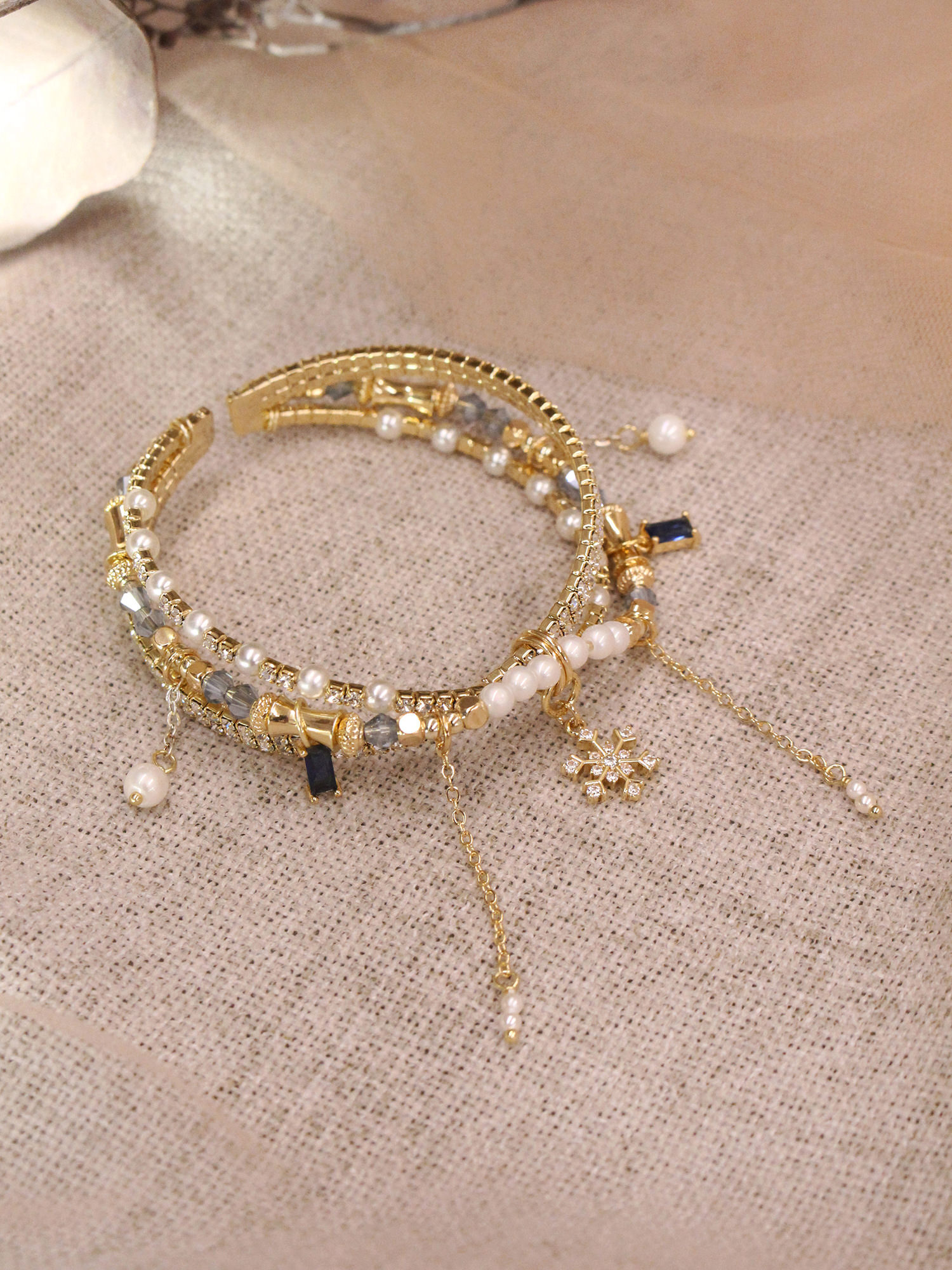 ▸ 水晶、貝殼、天然珍珠為天然材料,混色與花紋每款或有差異,鍍金屬不均、斑點、刮痕與凹洞為正常,非瑕疵。