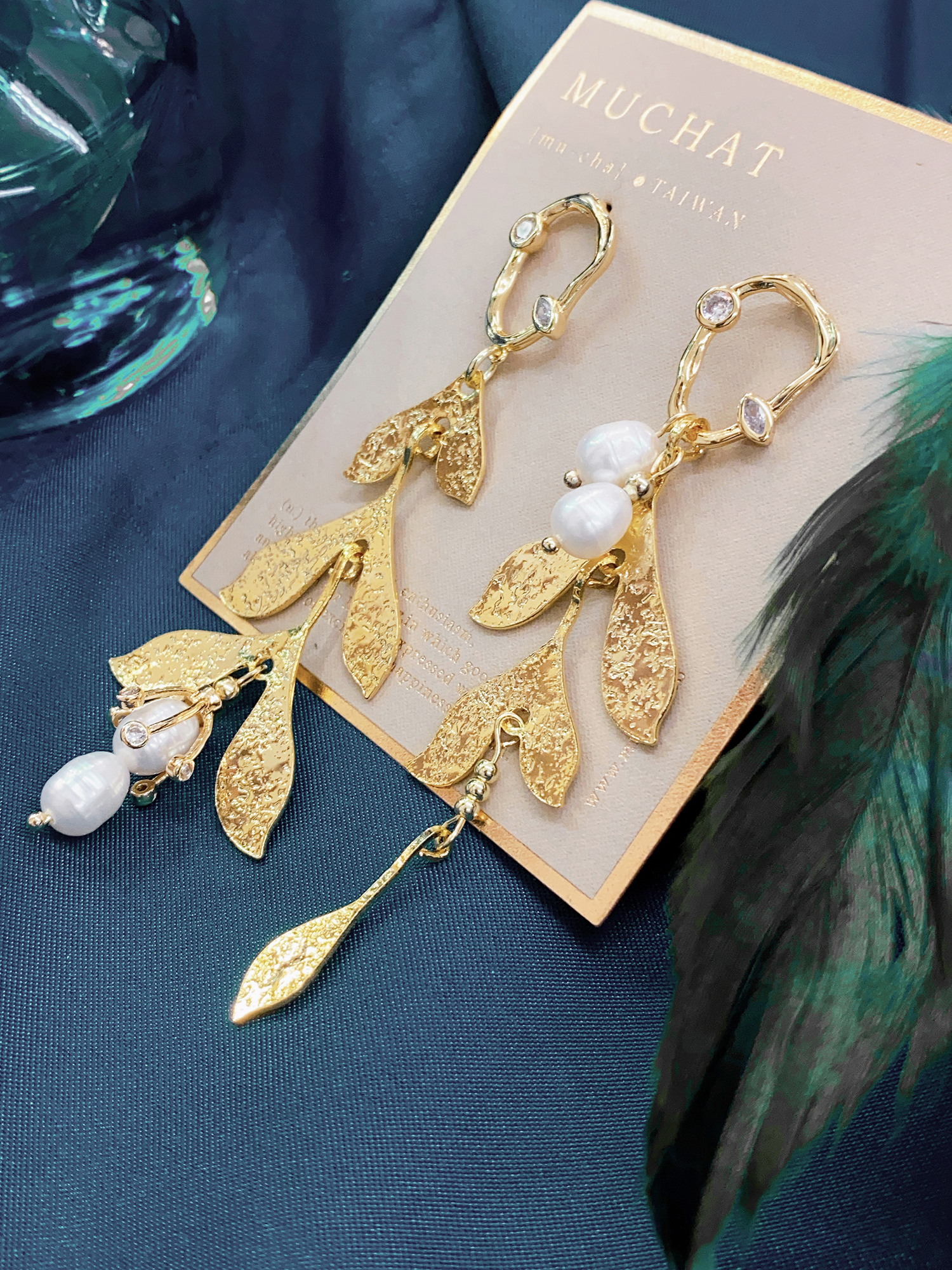 ▸ 素材:複合材質(銅鍍14+18KGP)、鋯石、天然珍珠