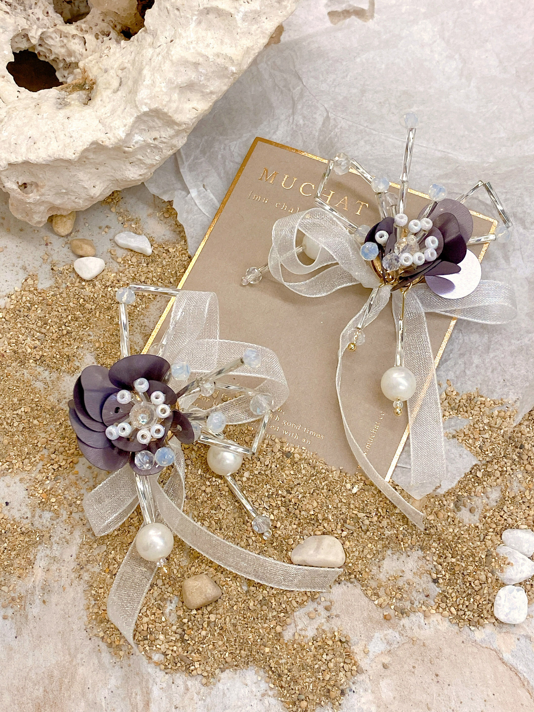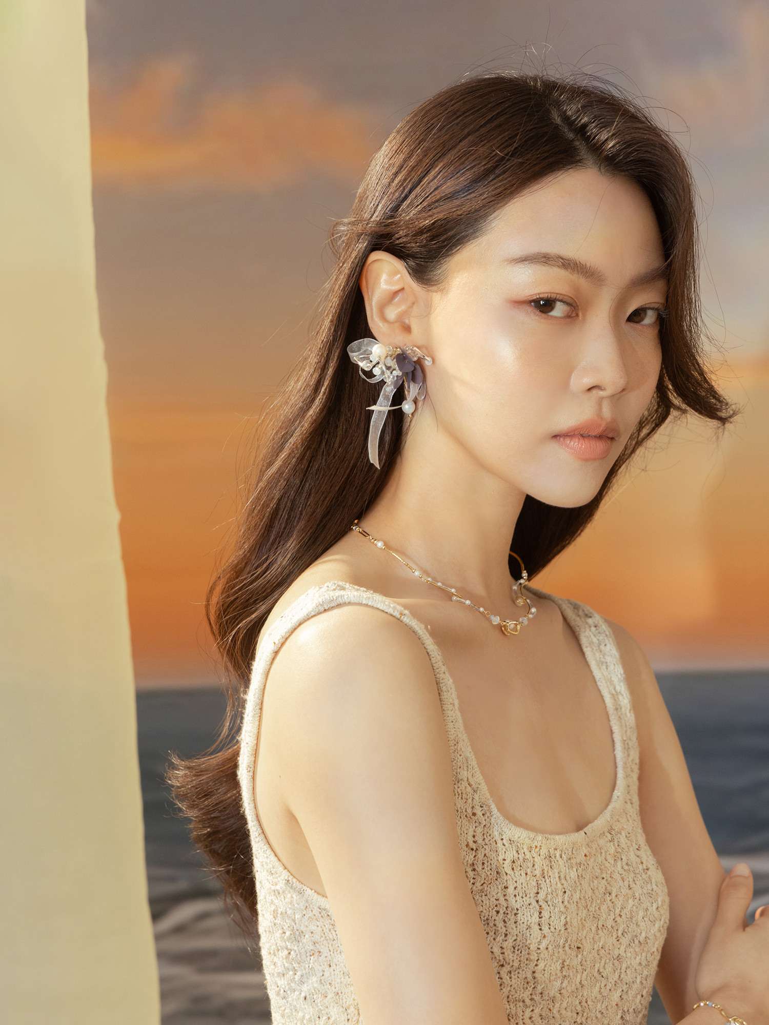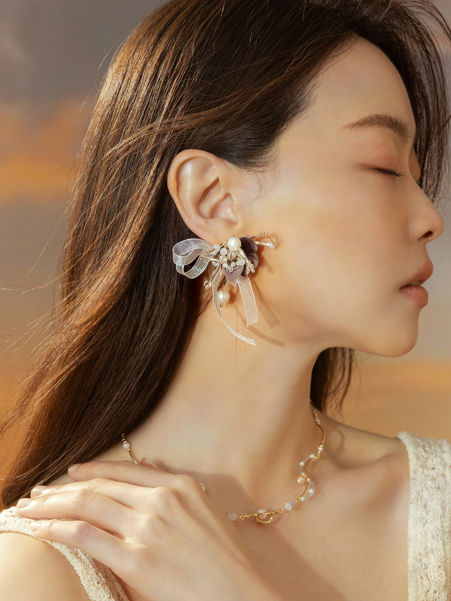 來一口聖代。(2way)MUCHAT手作14KG立體水晶珠花蝶結耳環