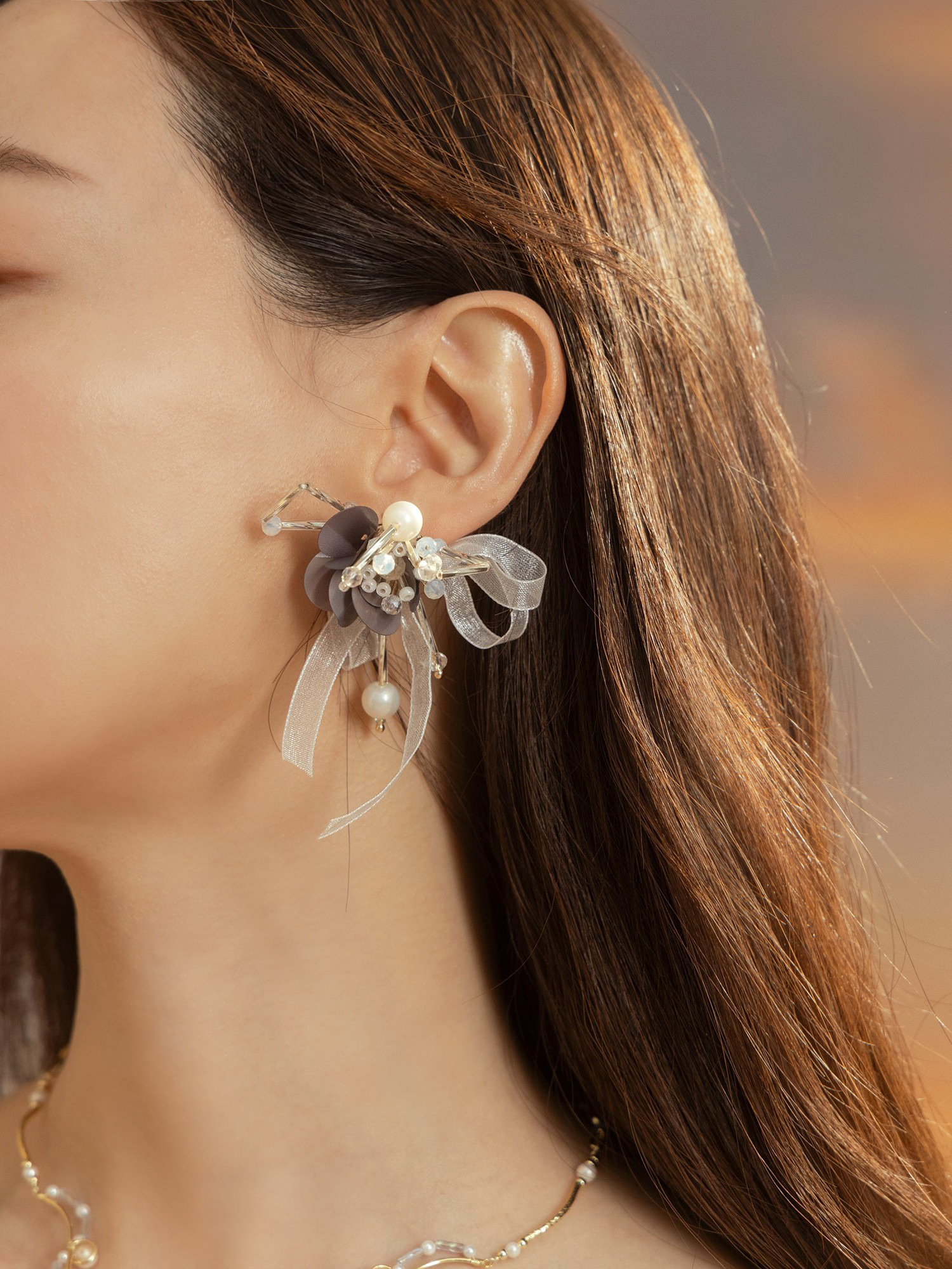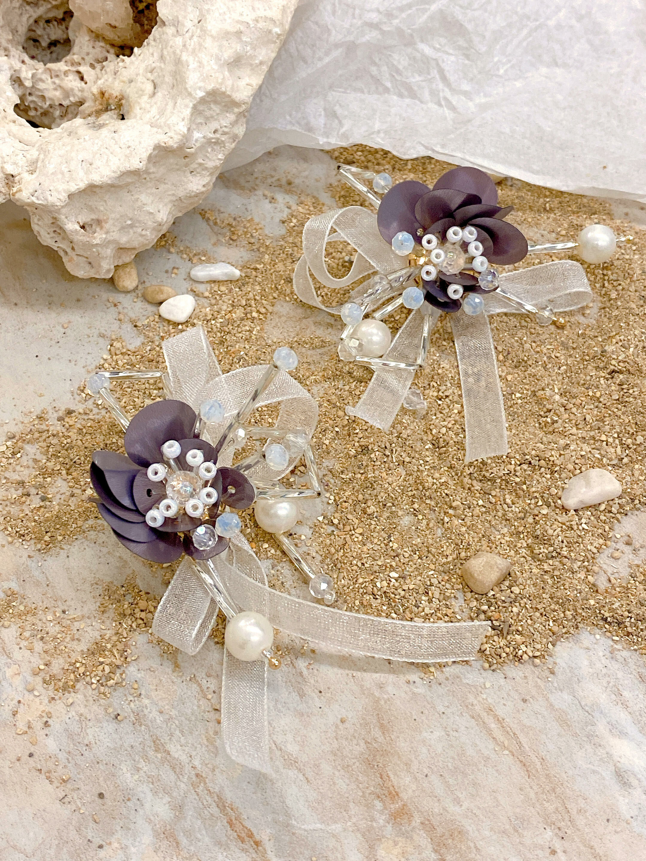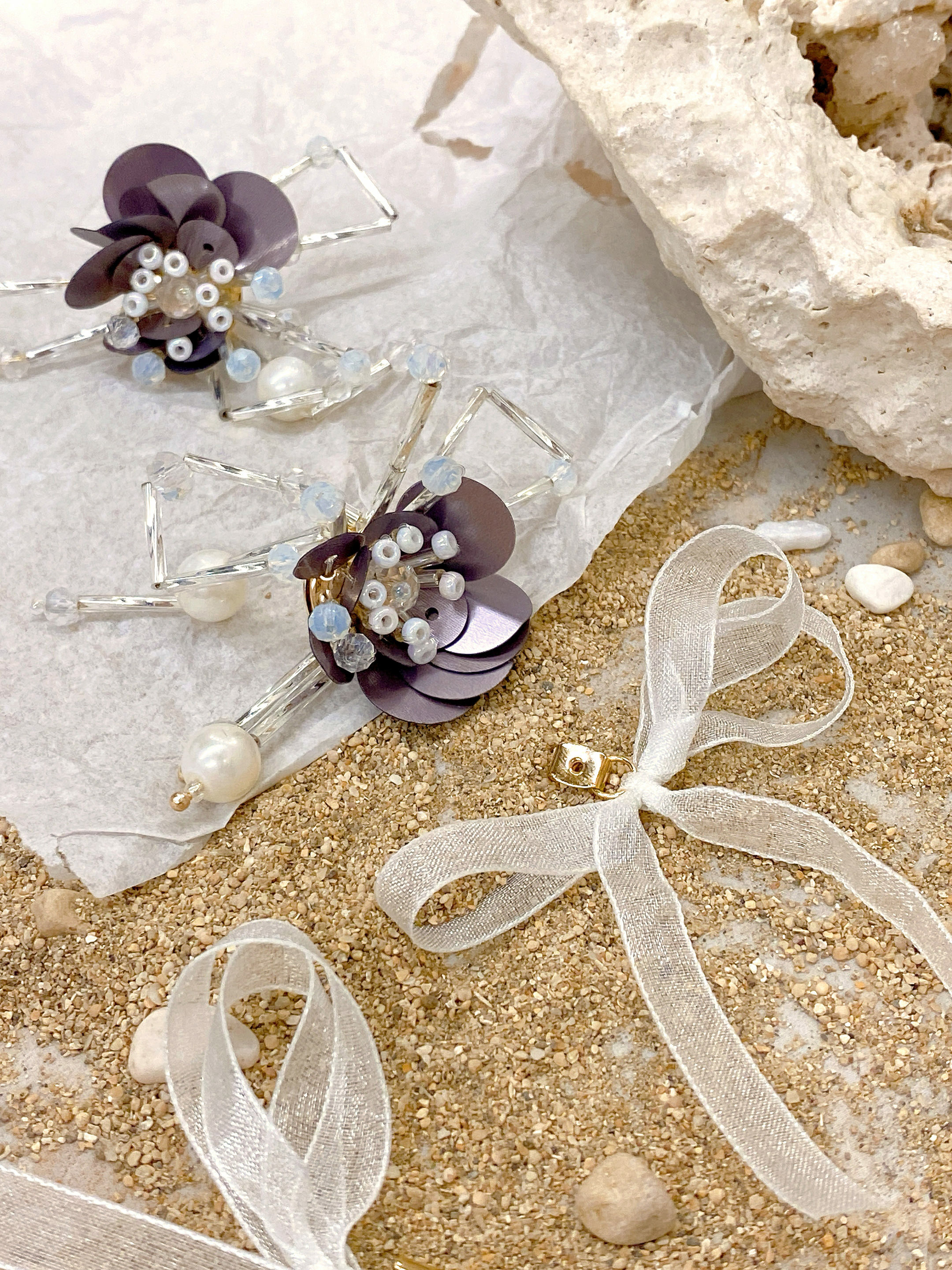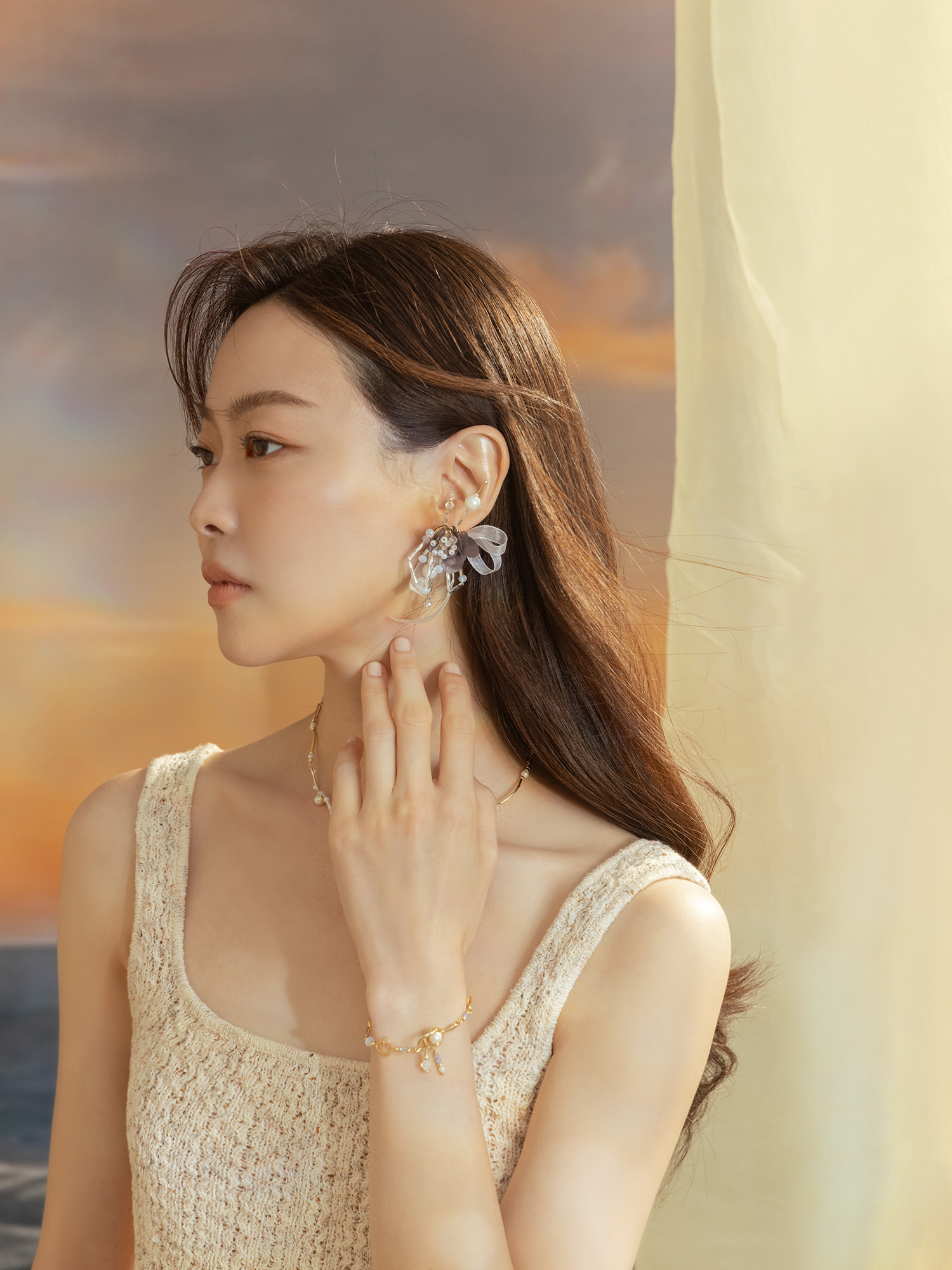 來一口聖代。(2way)MUCHAT手作14KG立體水晶珠花蝶結耳環