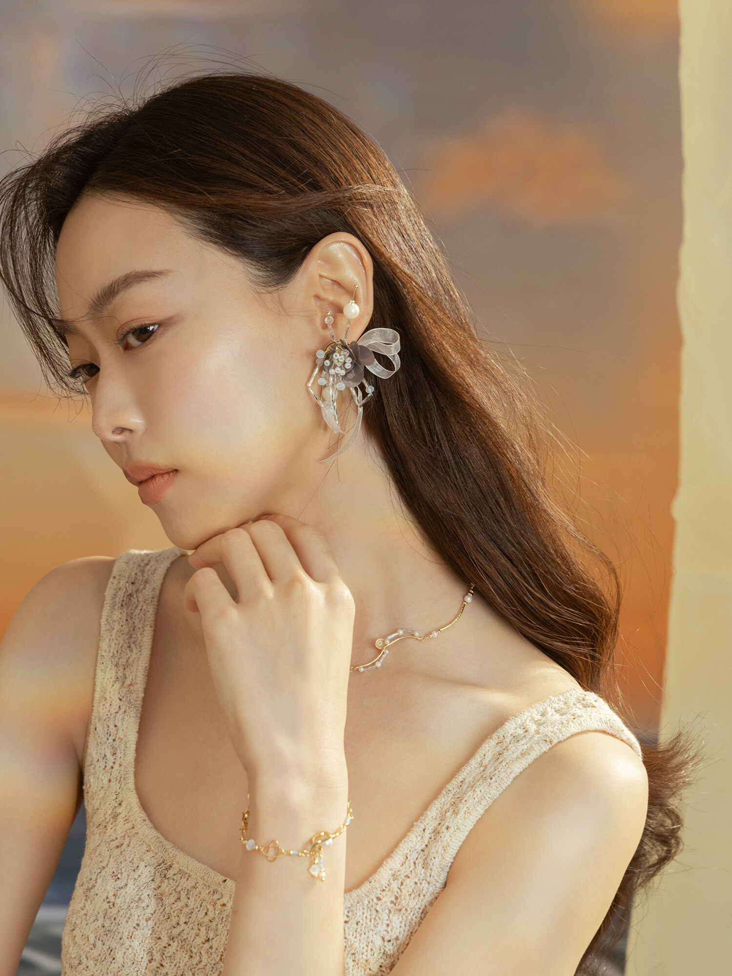 ▸ 水晶、貝殼、天然珍珠為天然材料,混色與花紋每款或有差異,鍍金屬不均、斑點、刮痕與凹洞為正常,非瑕疵。