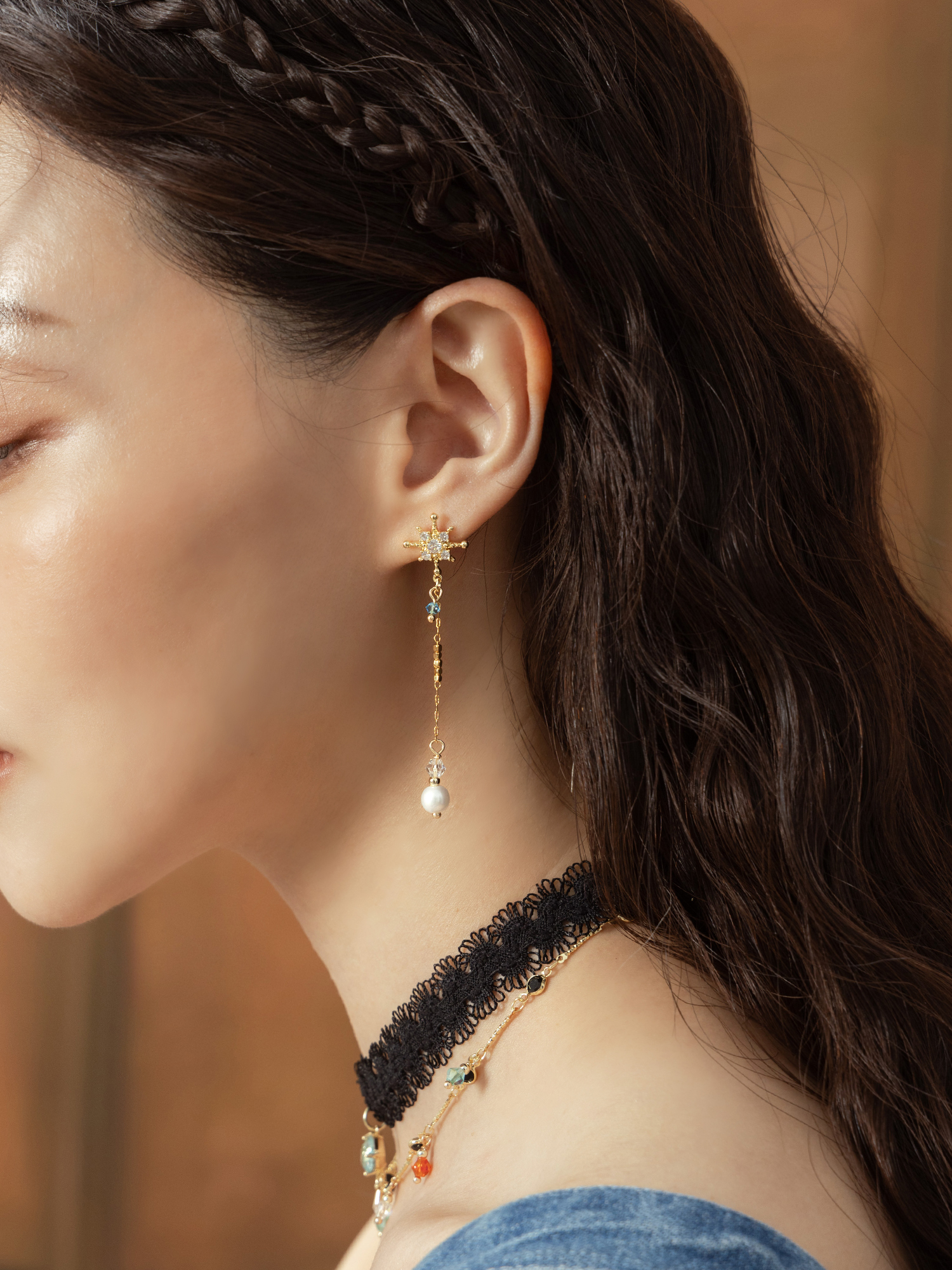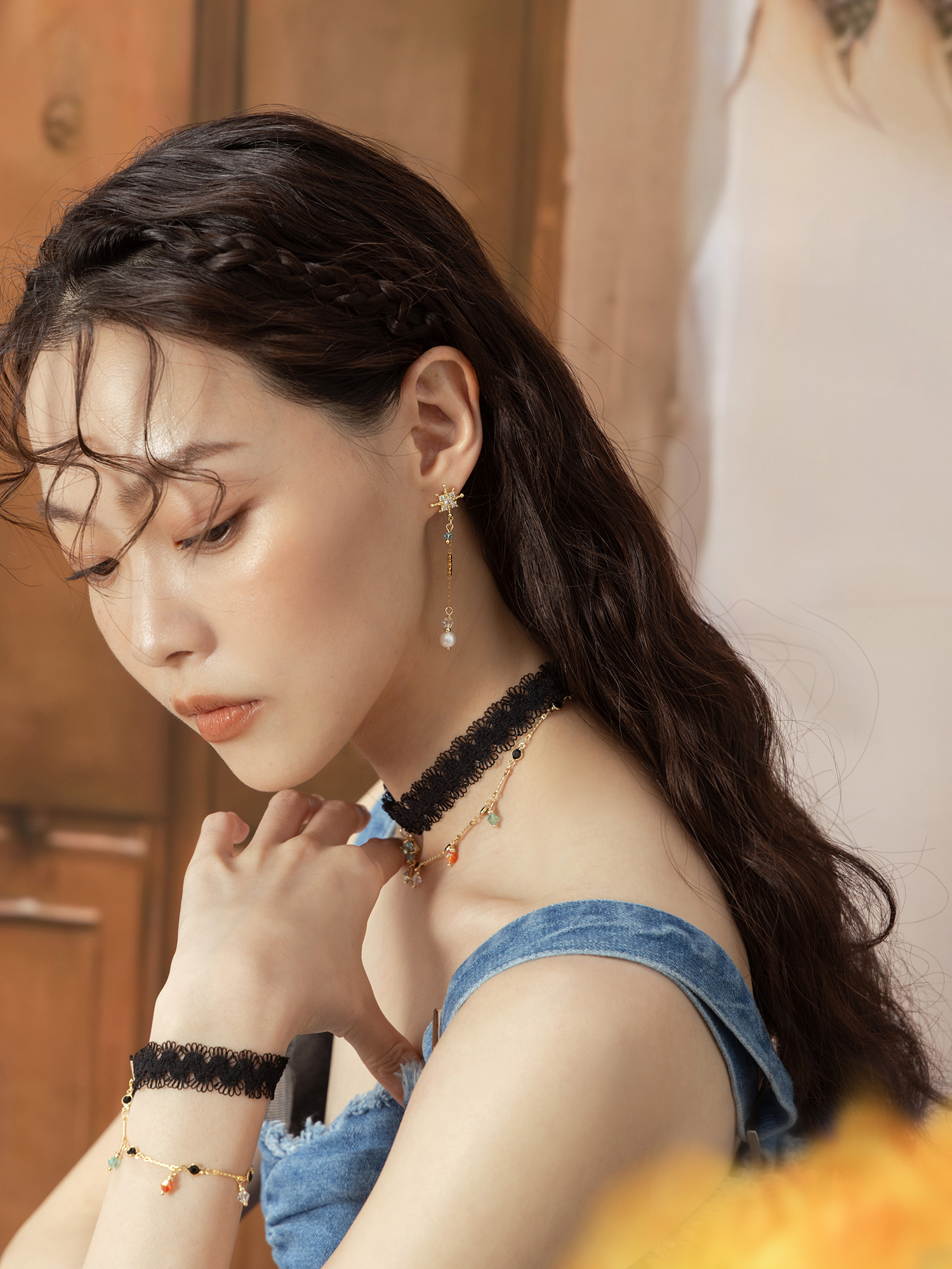 ▸ 素材:銅鍍14KGP 、鋯石、施華洛水晶珠、仿珠、水晶珠等複合材質