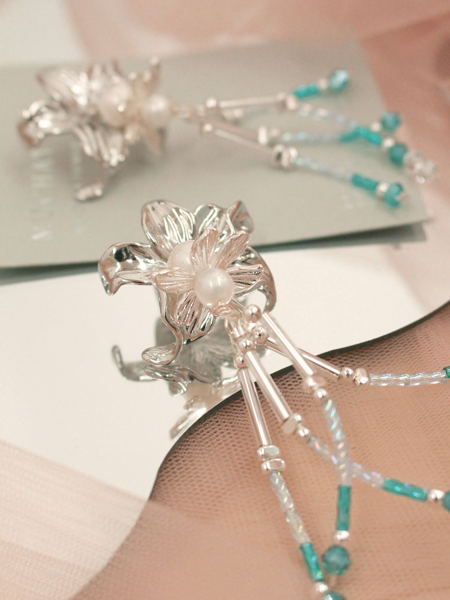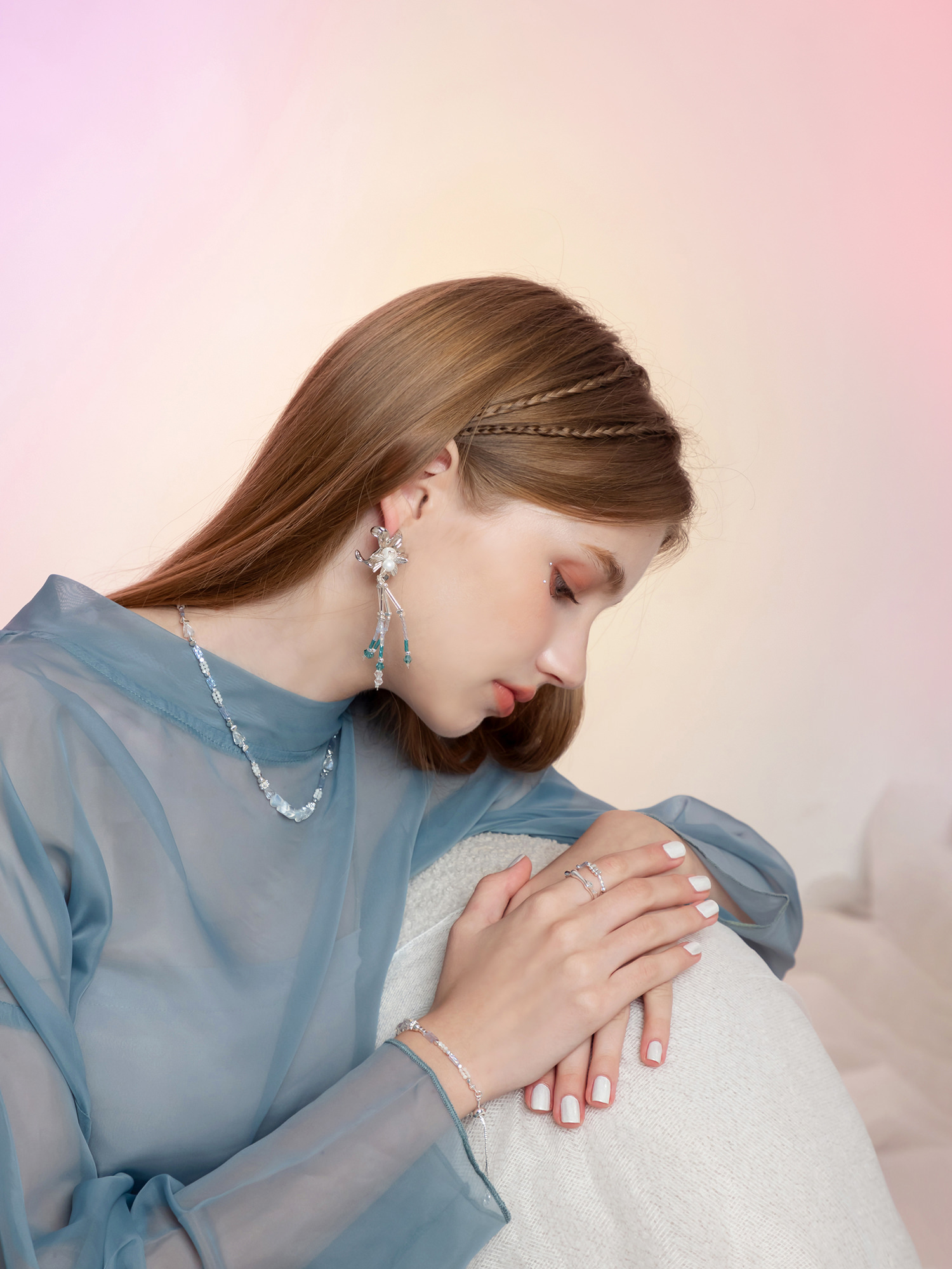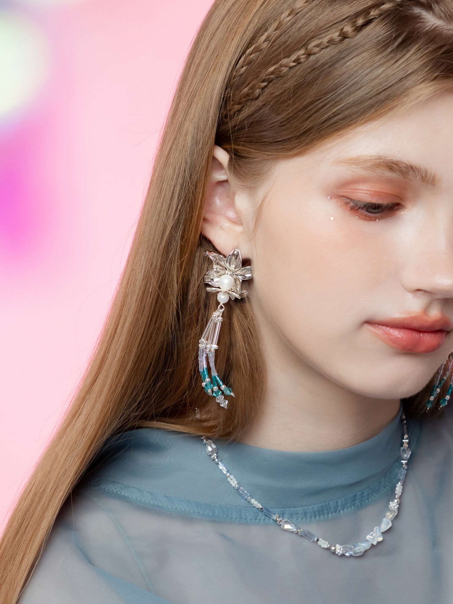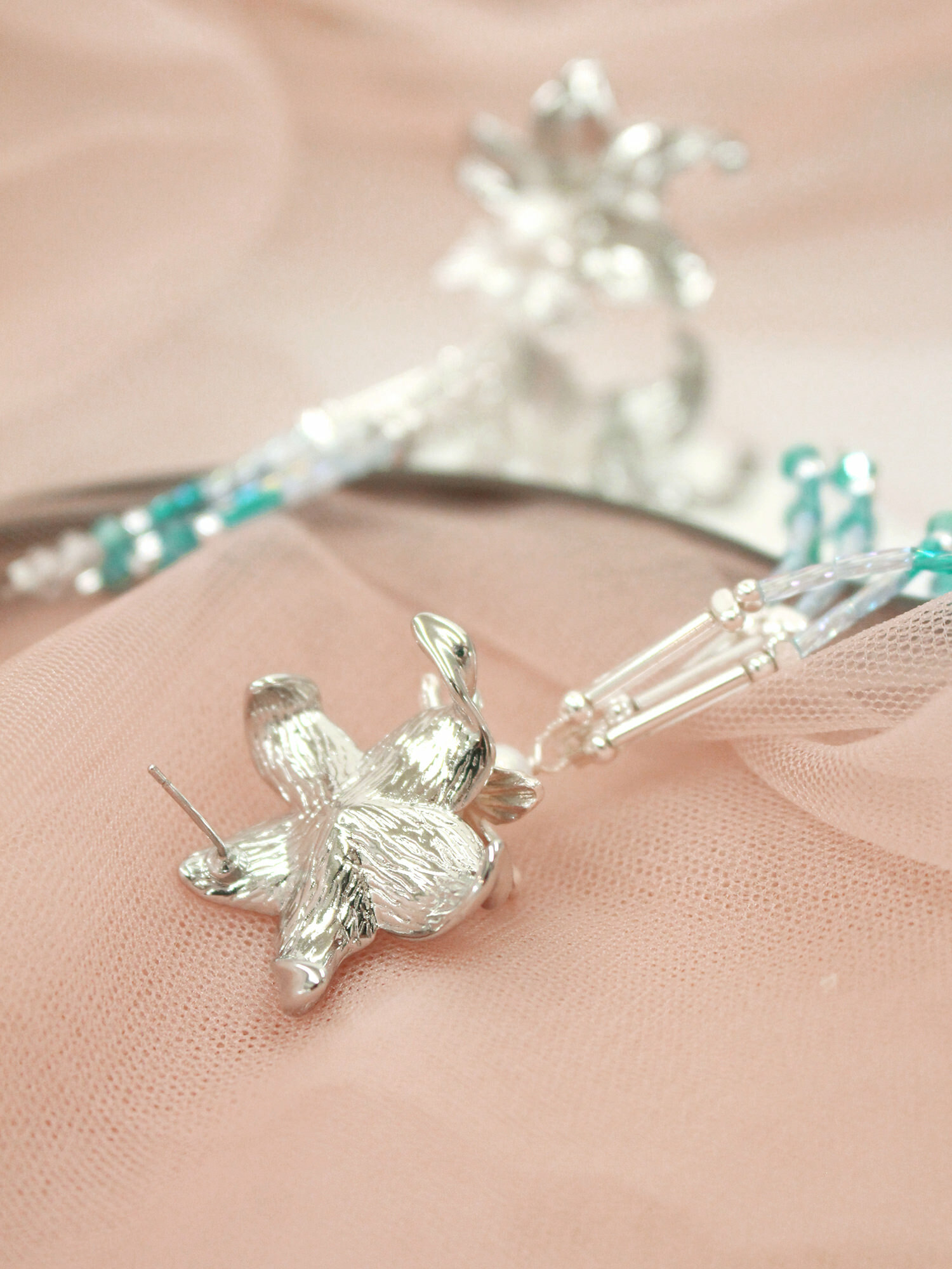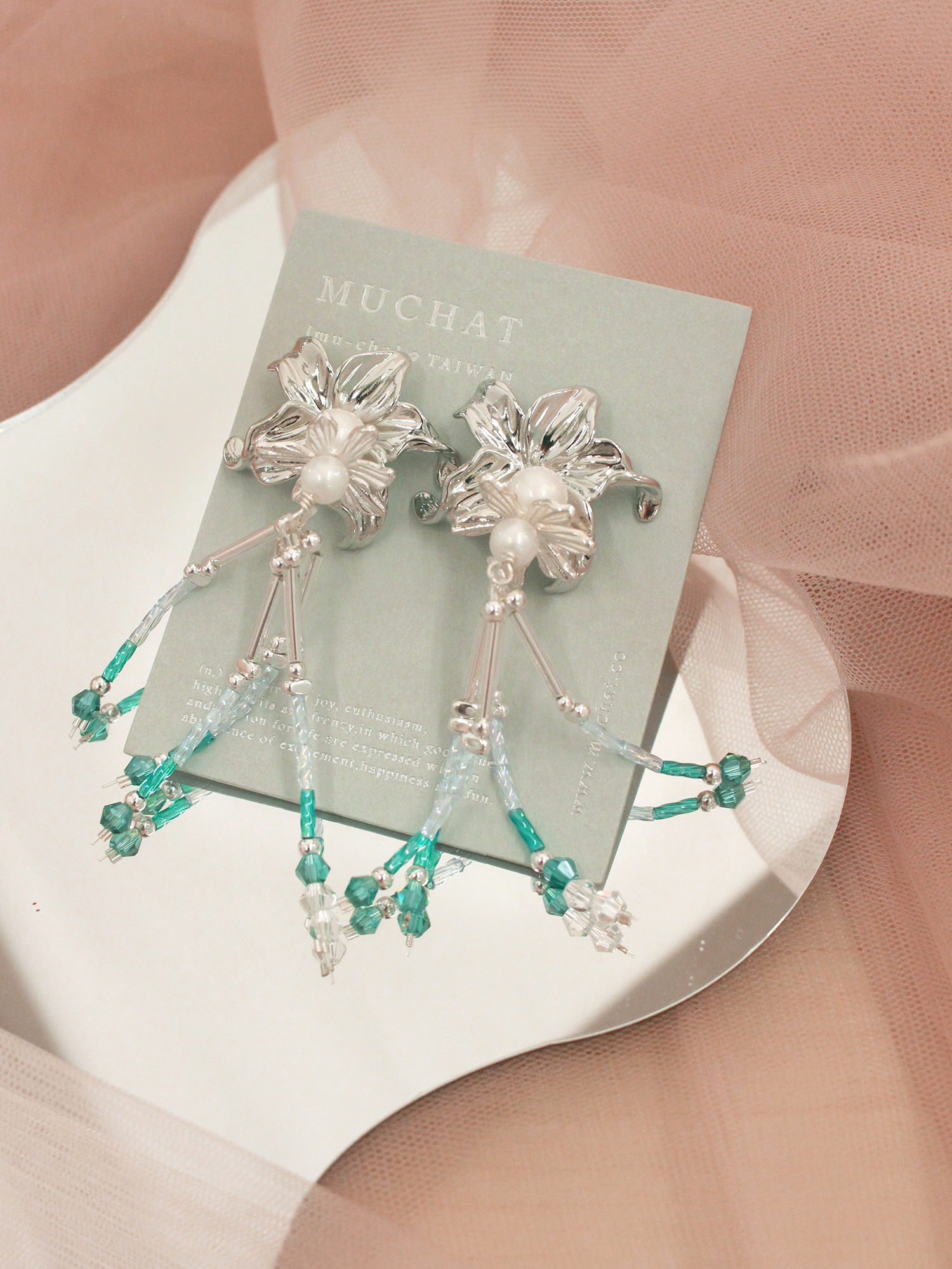 天空之鏡。MUCHAT手作花朵水晶流蘇純銀針耳環