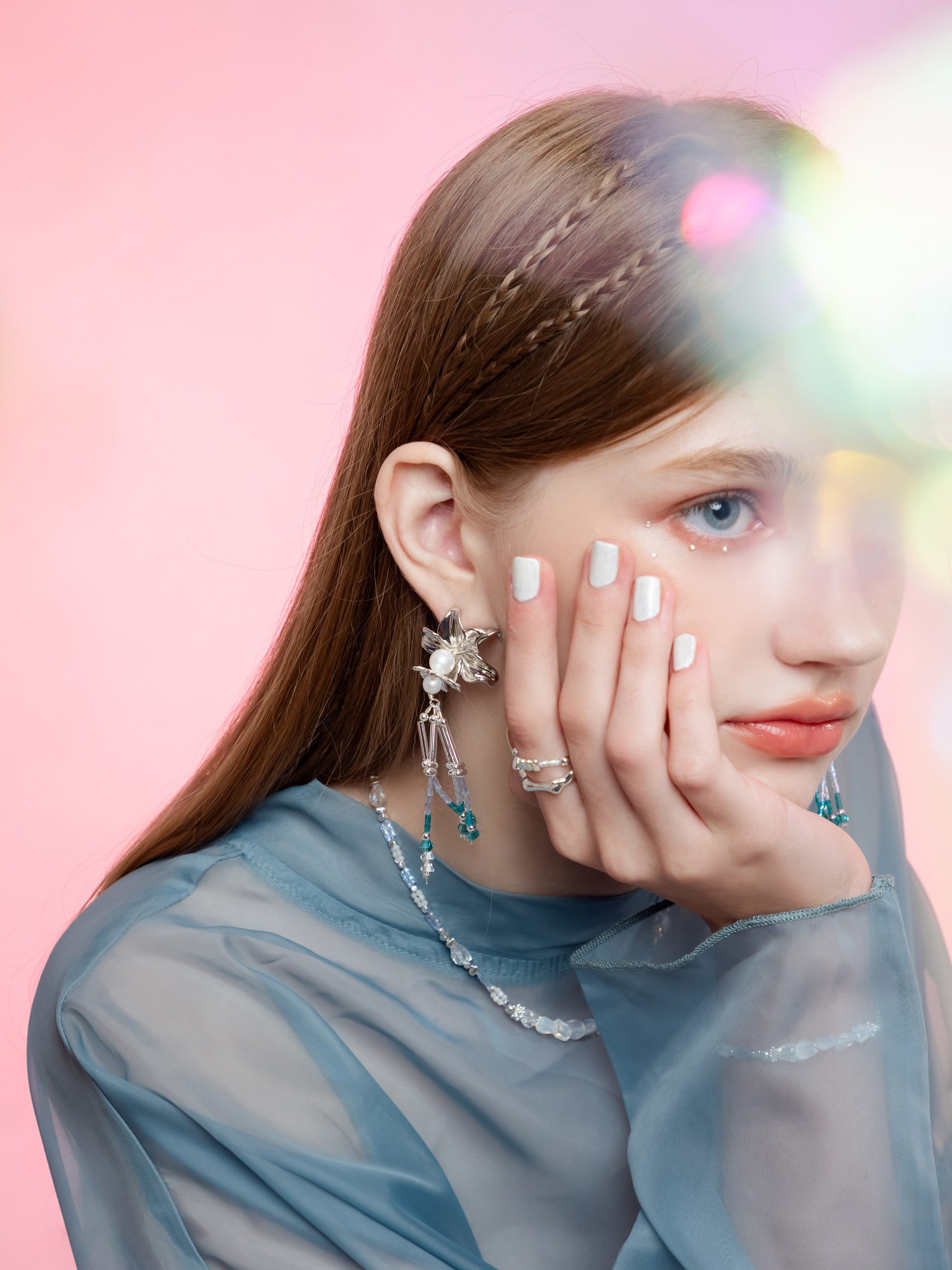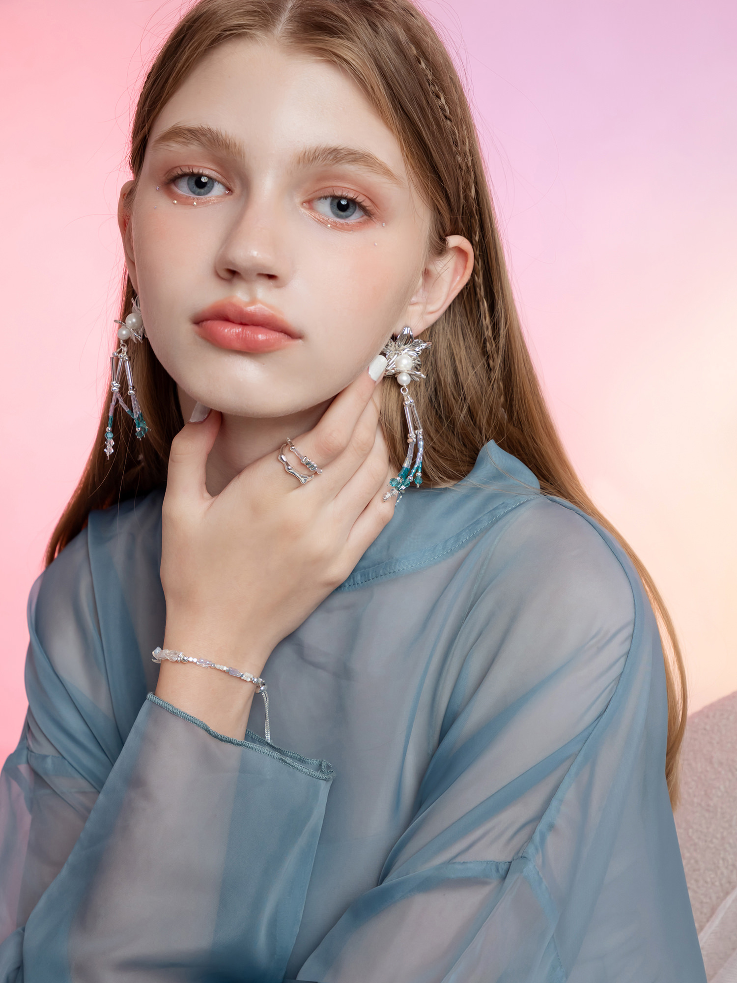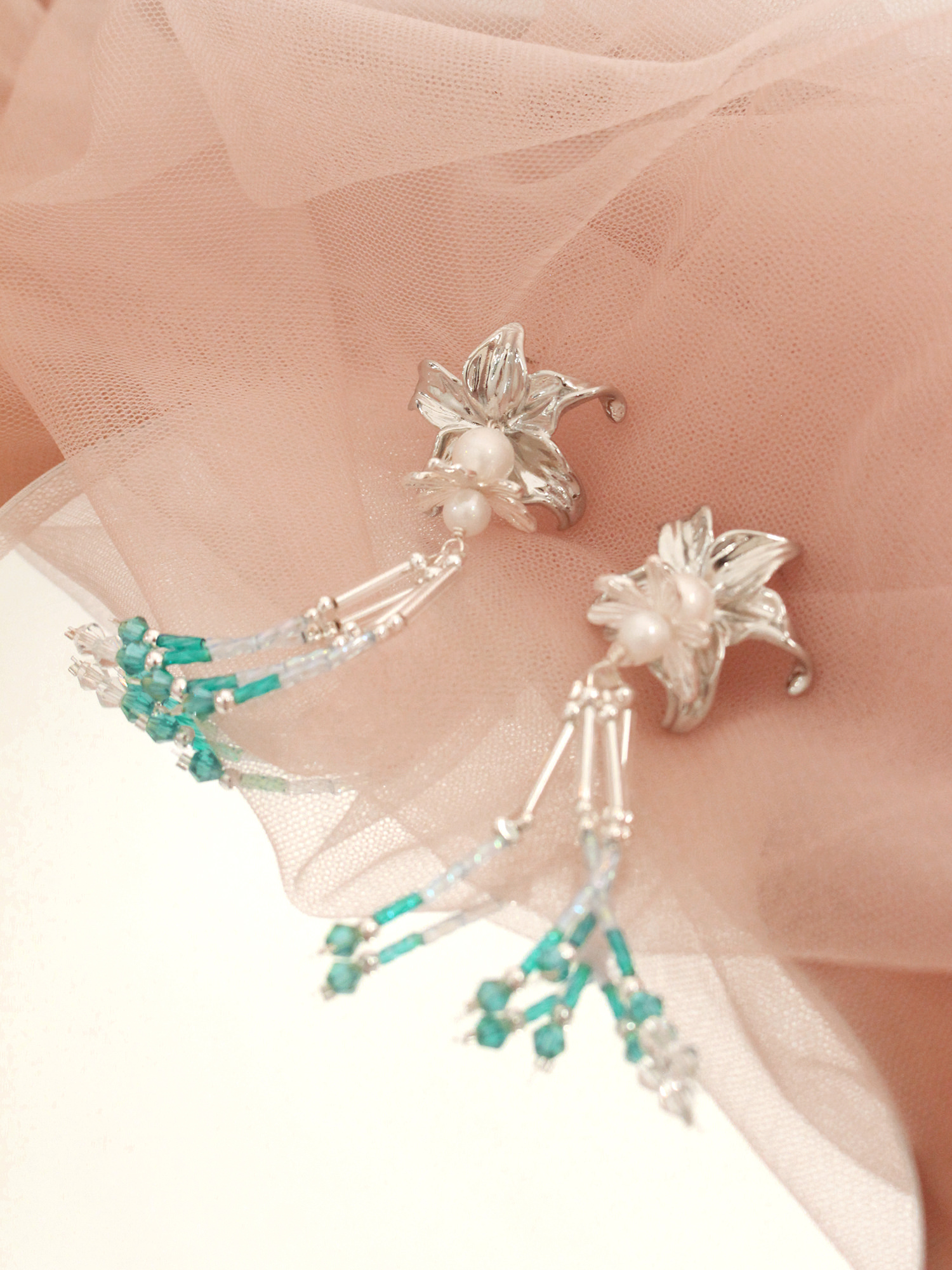 ▸ 素材:銅鍍白銀、仿珠、水晶珠、串珠等複合材質