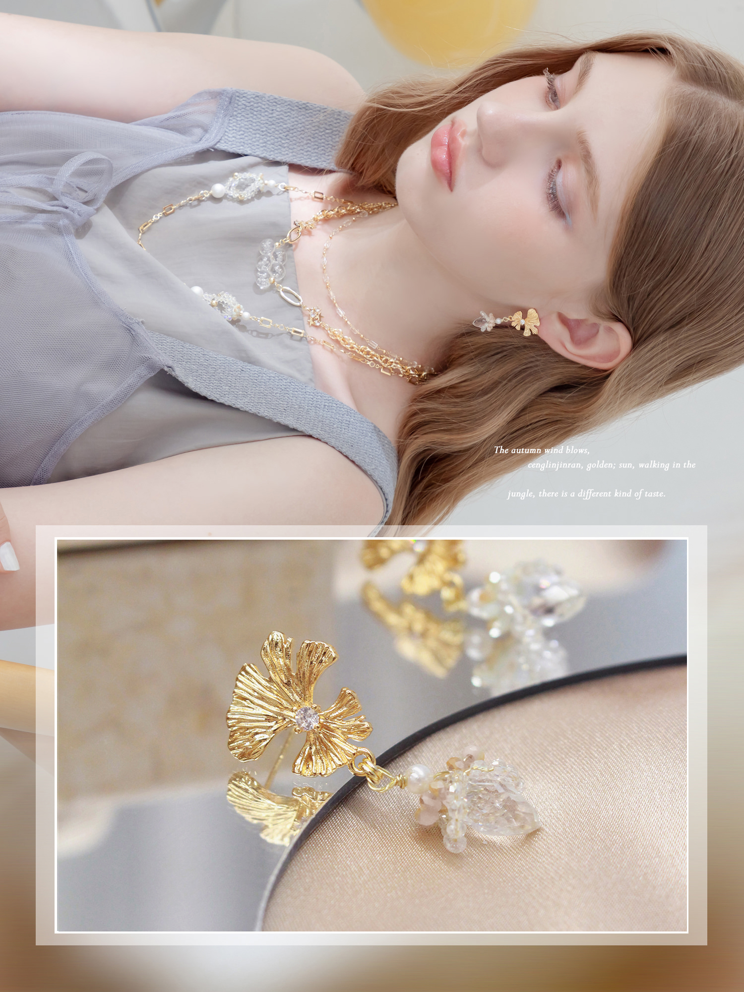 ▸ 素材:銅鍍14KGP、水晶、仿珠、串珠等複合材質