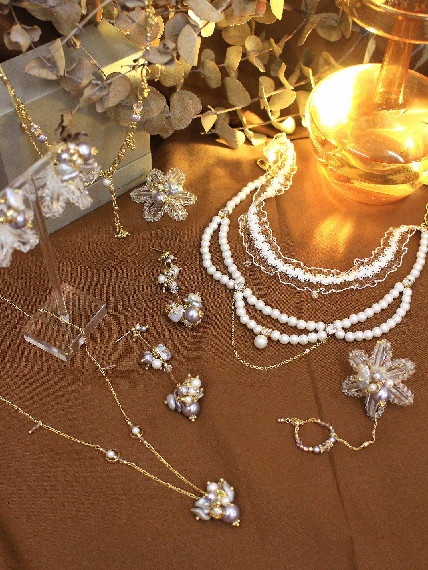 ▸ 素材:銅鍍14KGP、天然淡水珍珠、施華洛珍珠、仿珠、水晶珠等複合材質