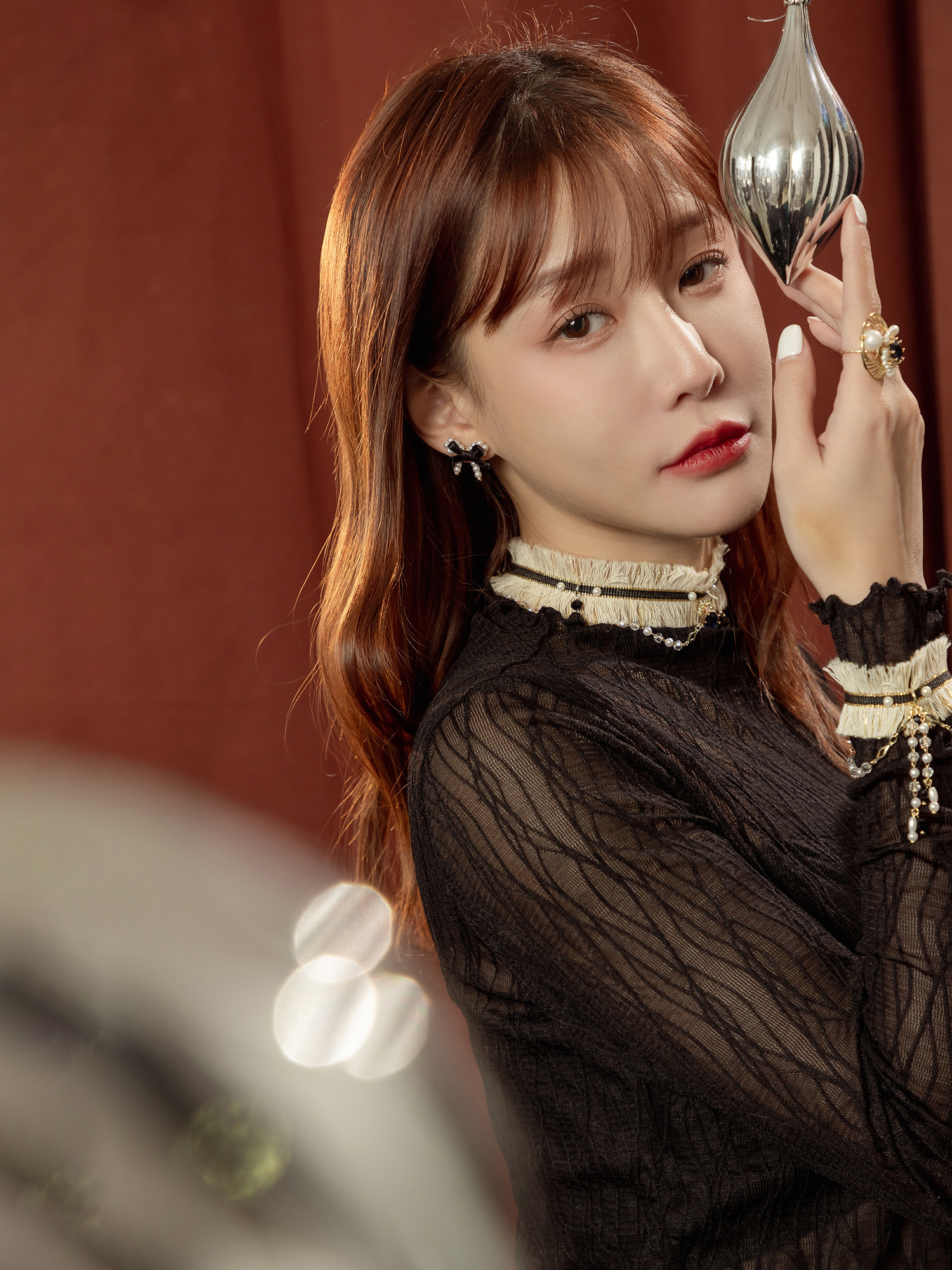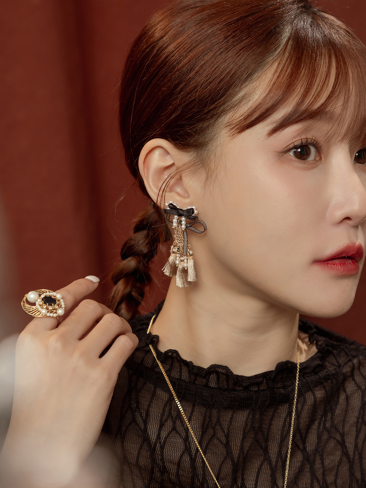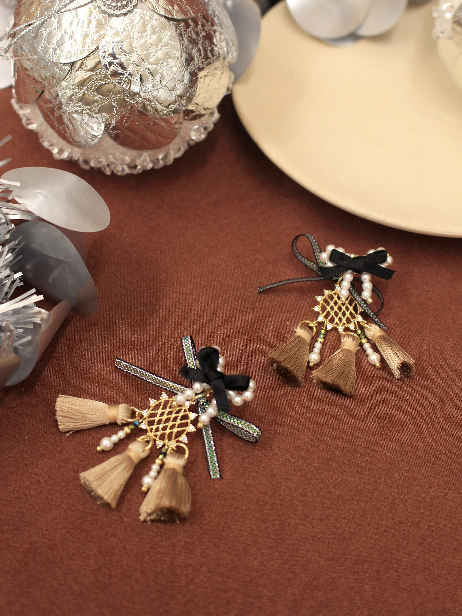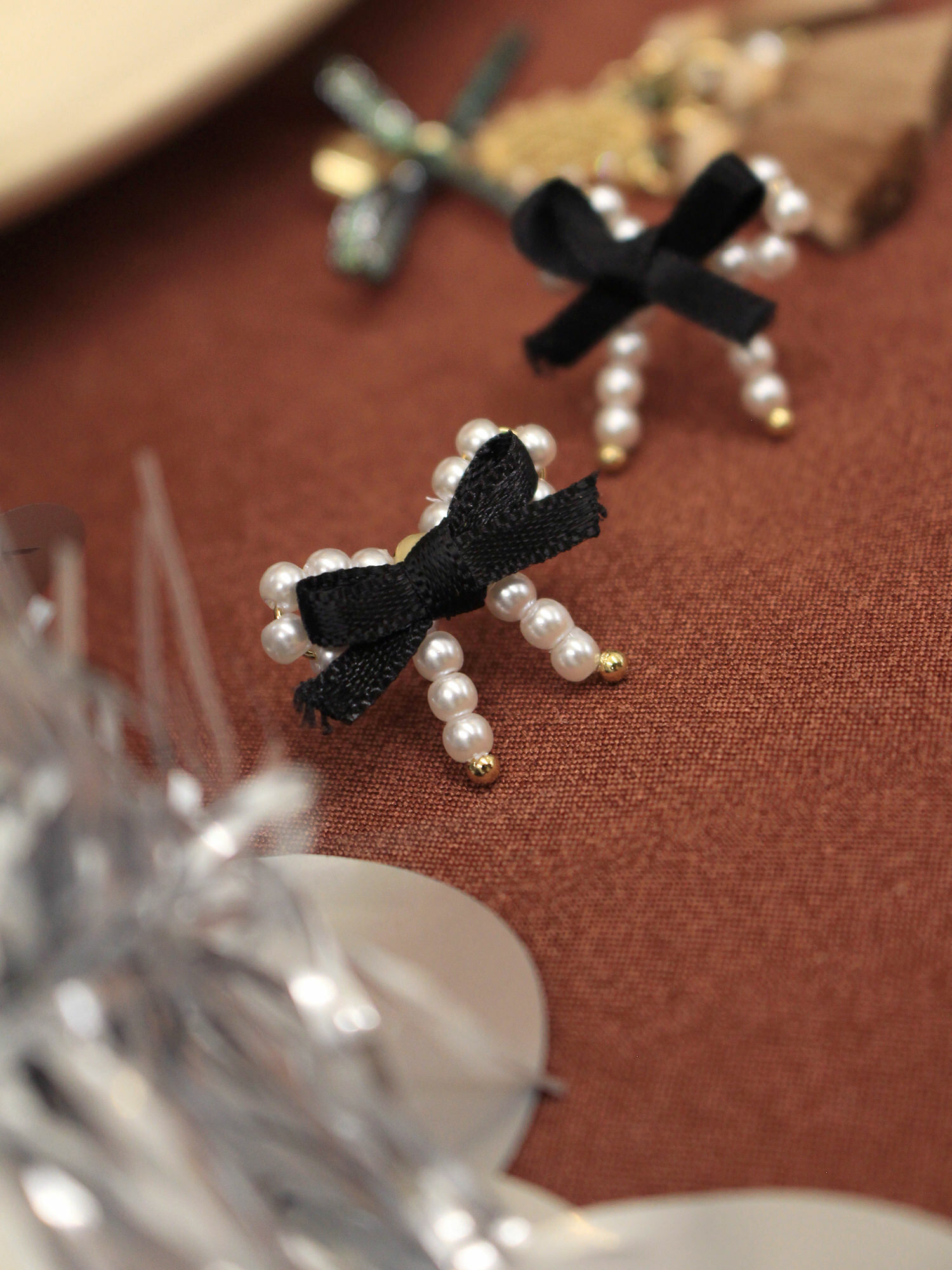 ▸ 素材:銅鍍14KGP、聚酯纖維、仿珠、鋯石、緞帶等複合材質