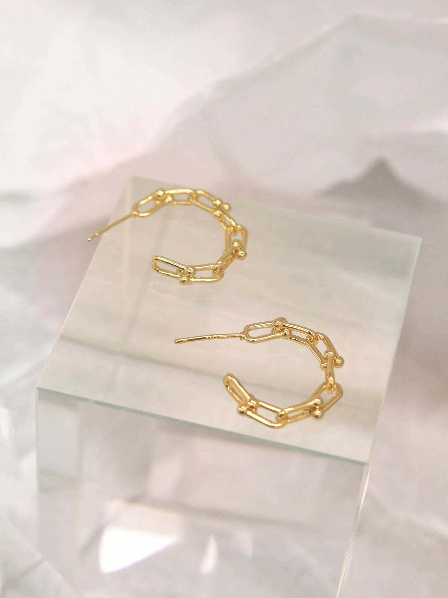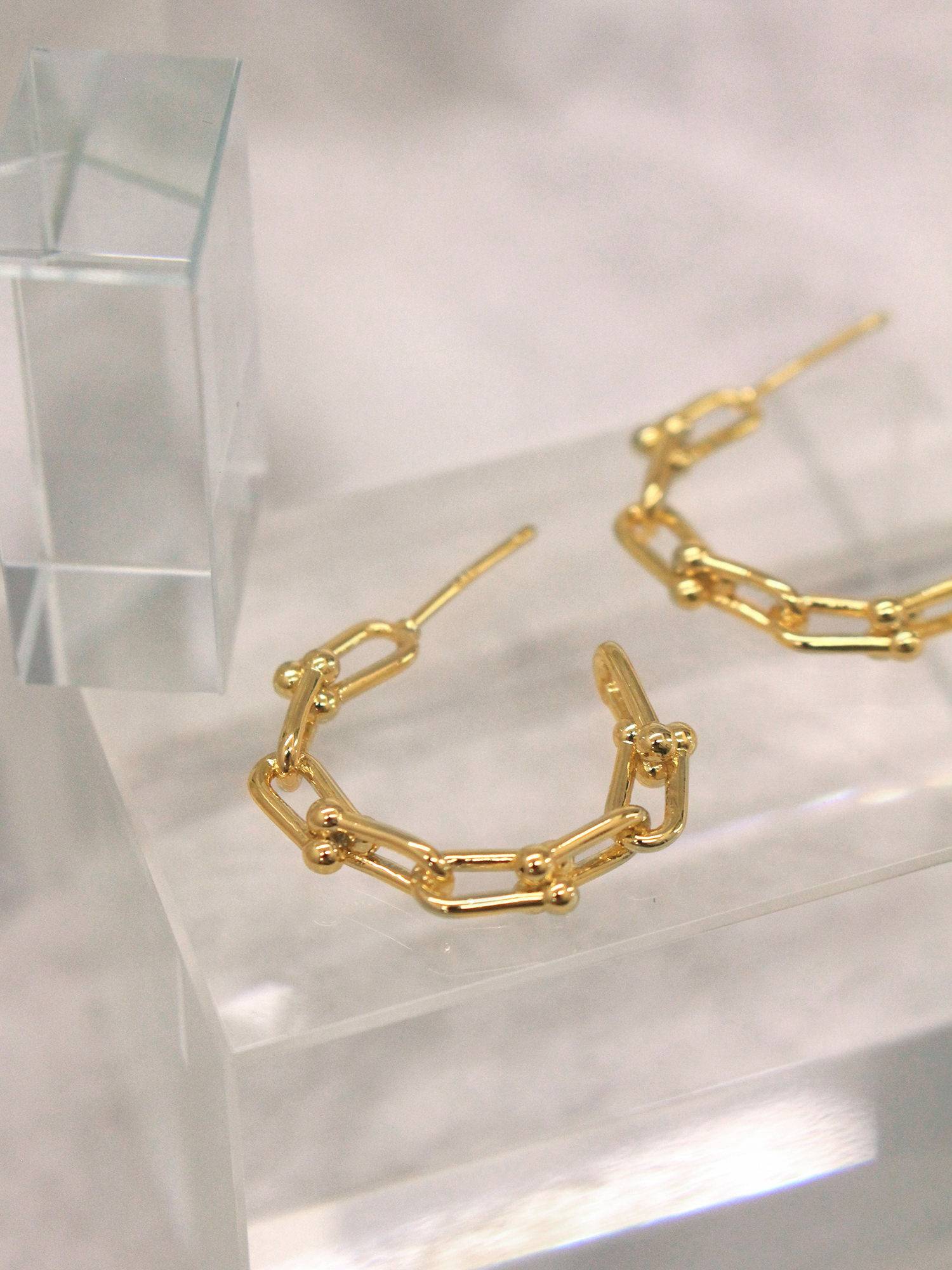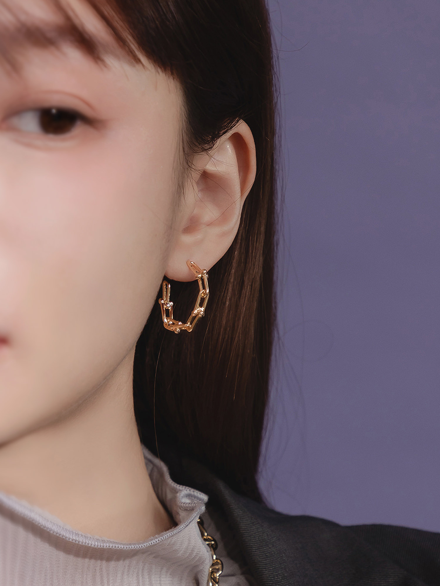 咖啡口味。14KGP幾何鏤空C圈耳環