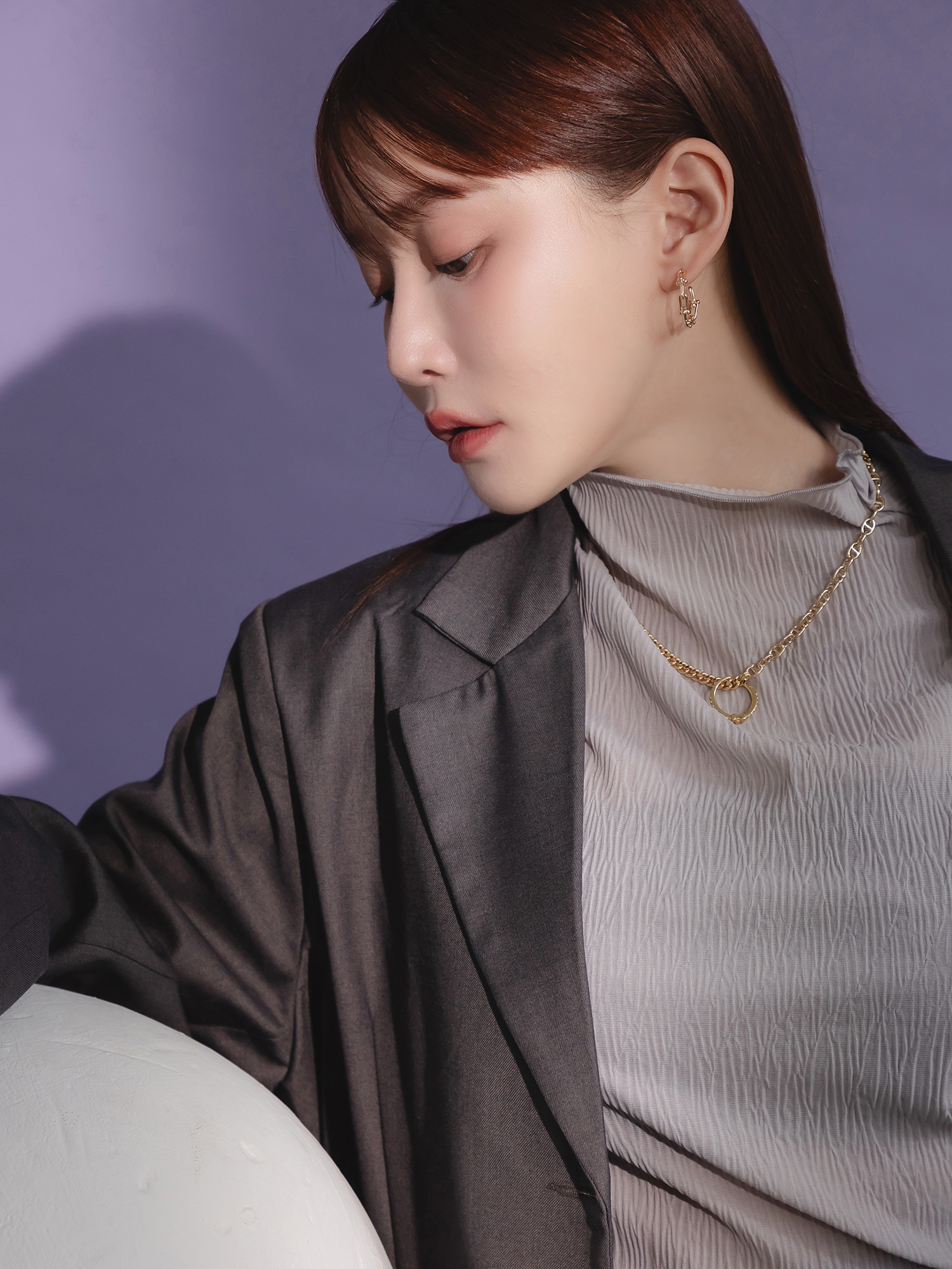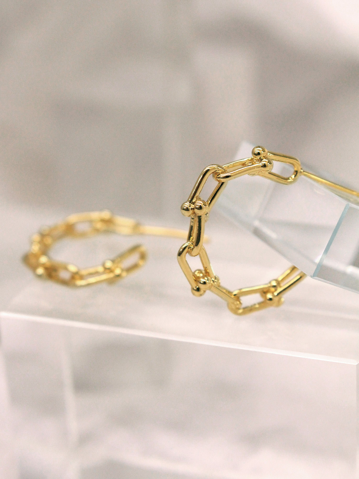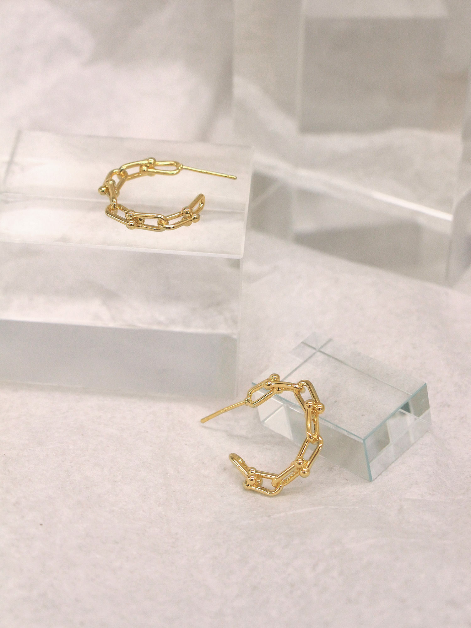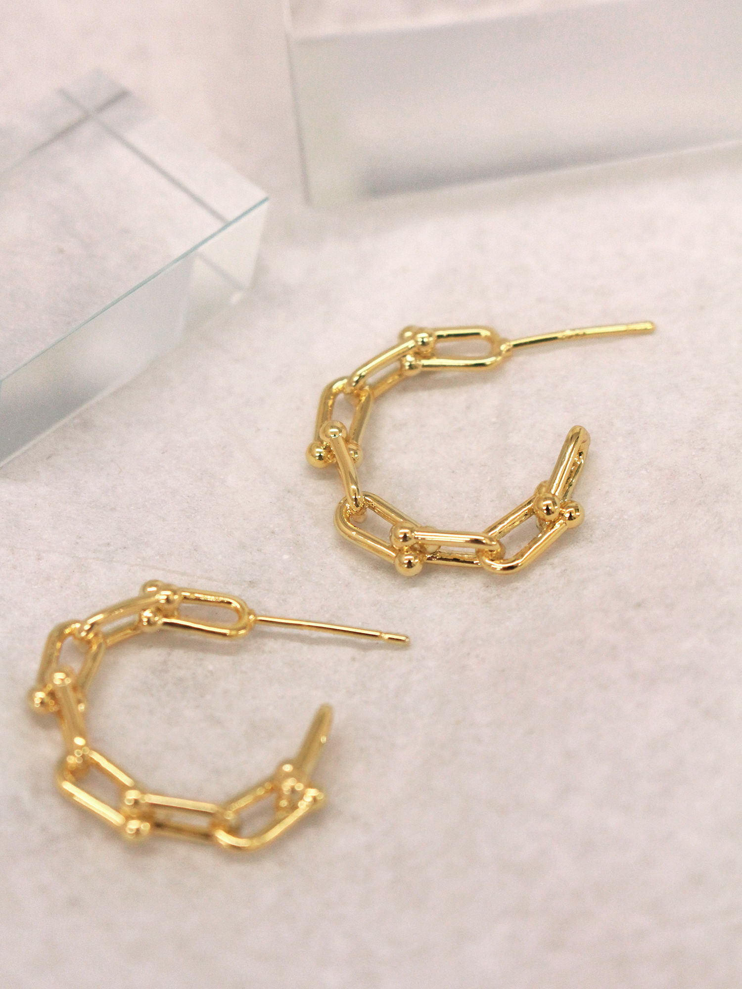 咖啡口味。14KGP幾何鏤空C圈耳環