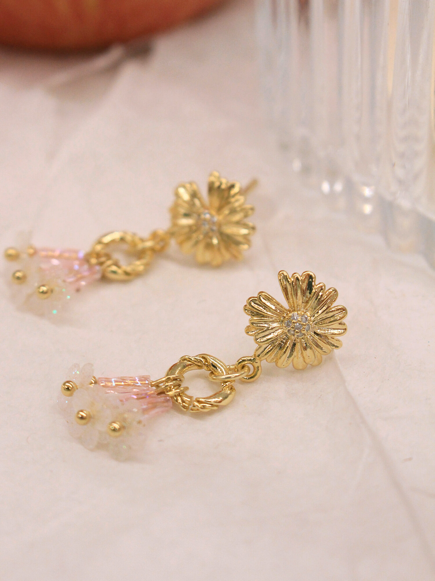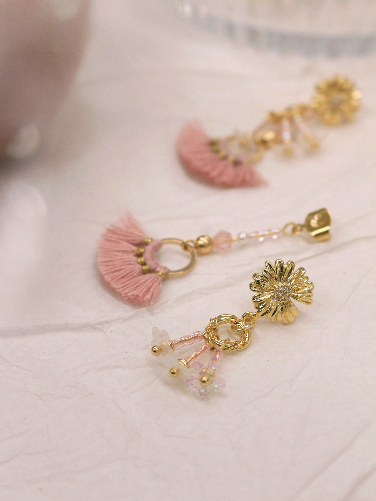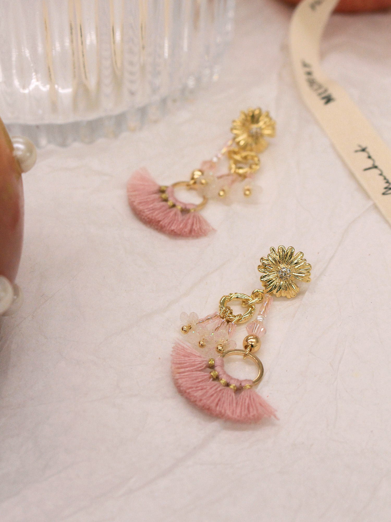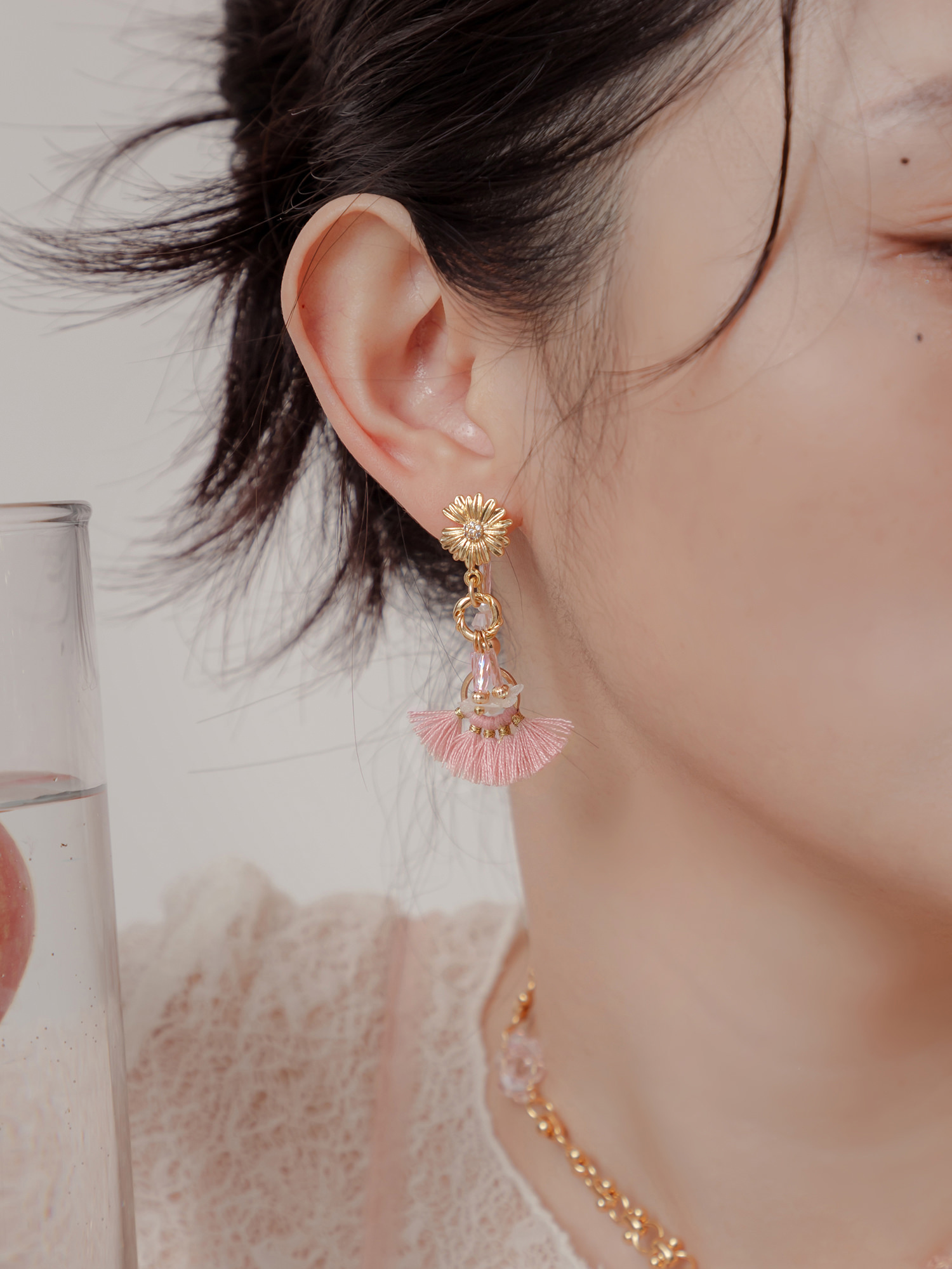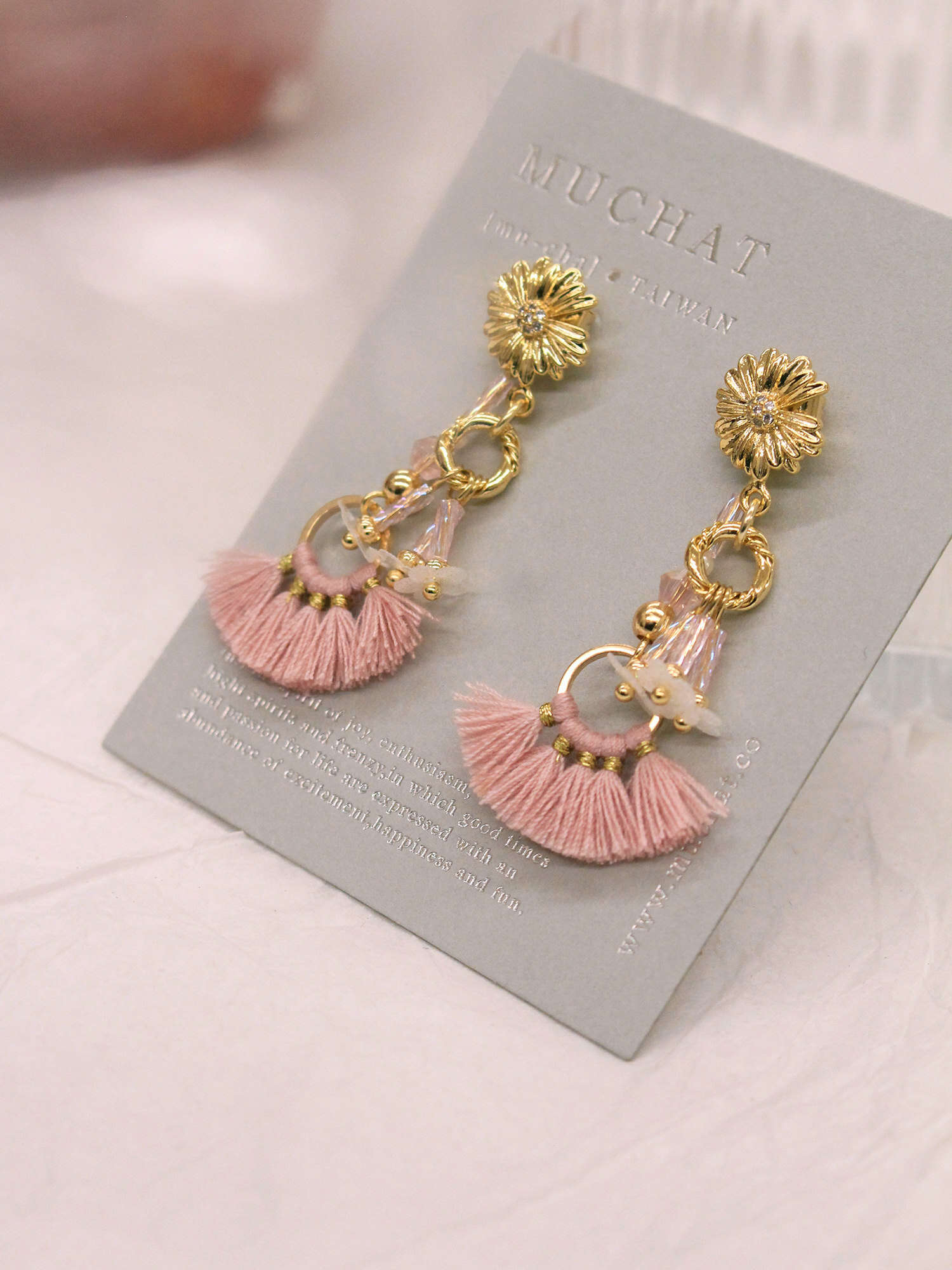賴床理由。(2way)MUCHAT手作14KGP雛菊流蘇純銀針耳環