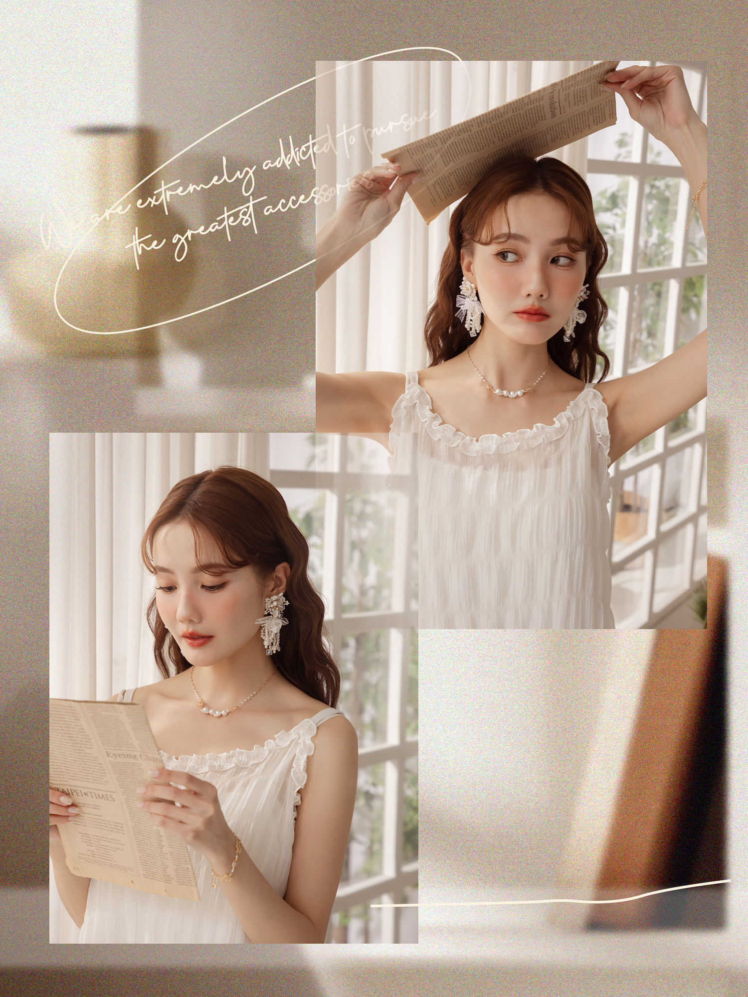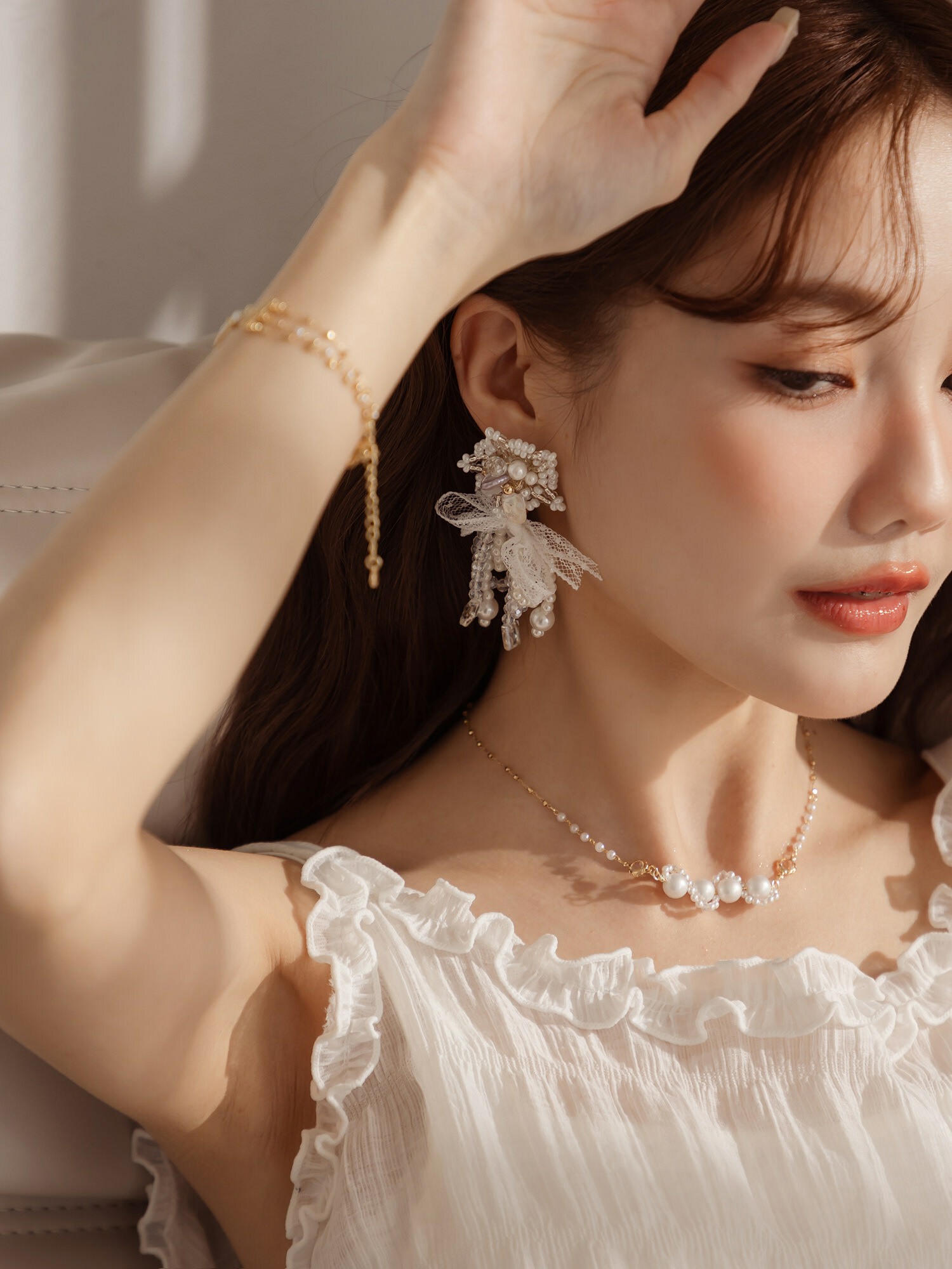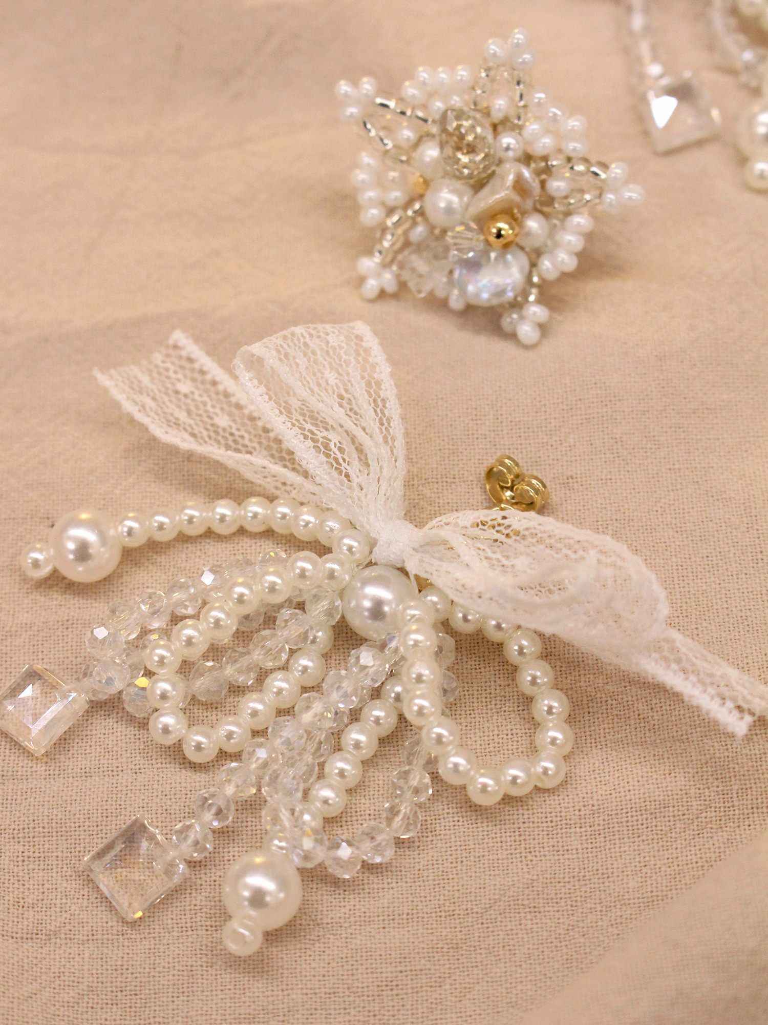 ▸ 素材:銅鍍14KGP、天然淡水珍珠、水晶、仿珠、串珠、聚酯纖維等複合材質