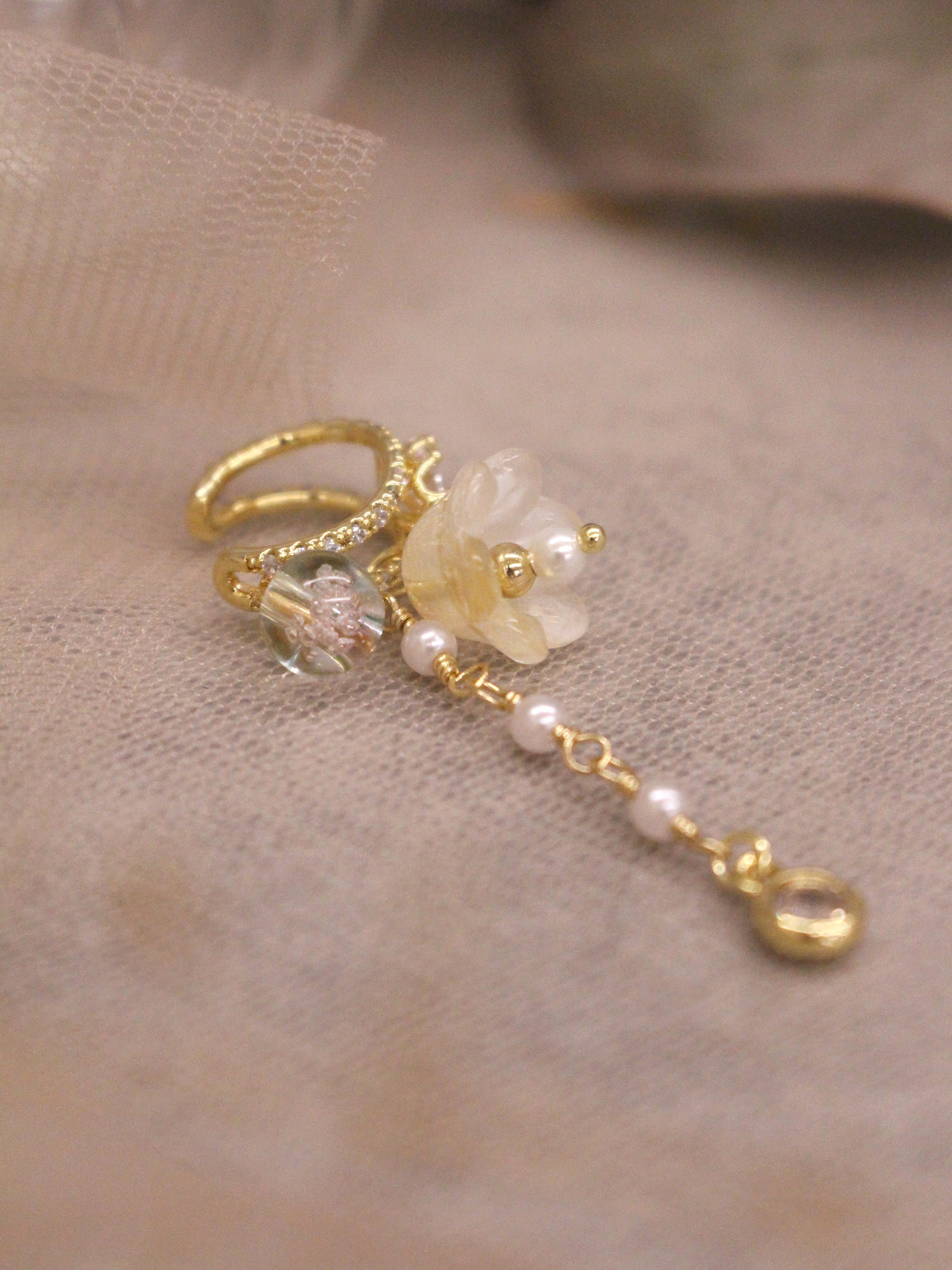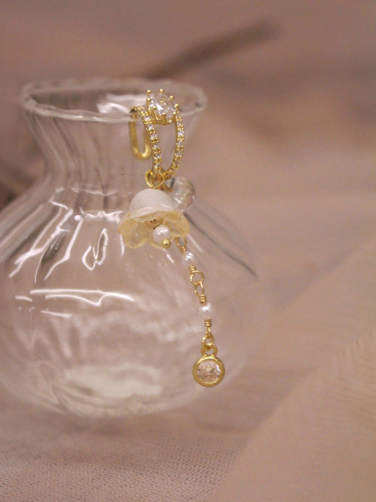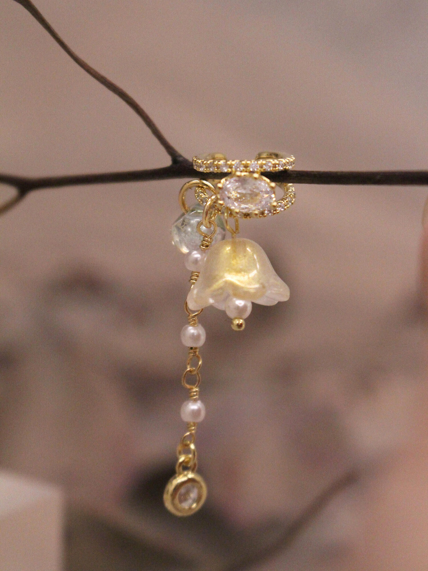 落葉微光。MUCHAT手作14KGP鋯石鈴蘭花耳骨夾 (單支)