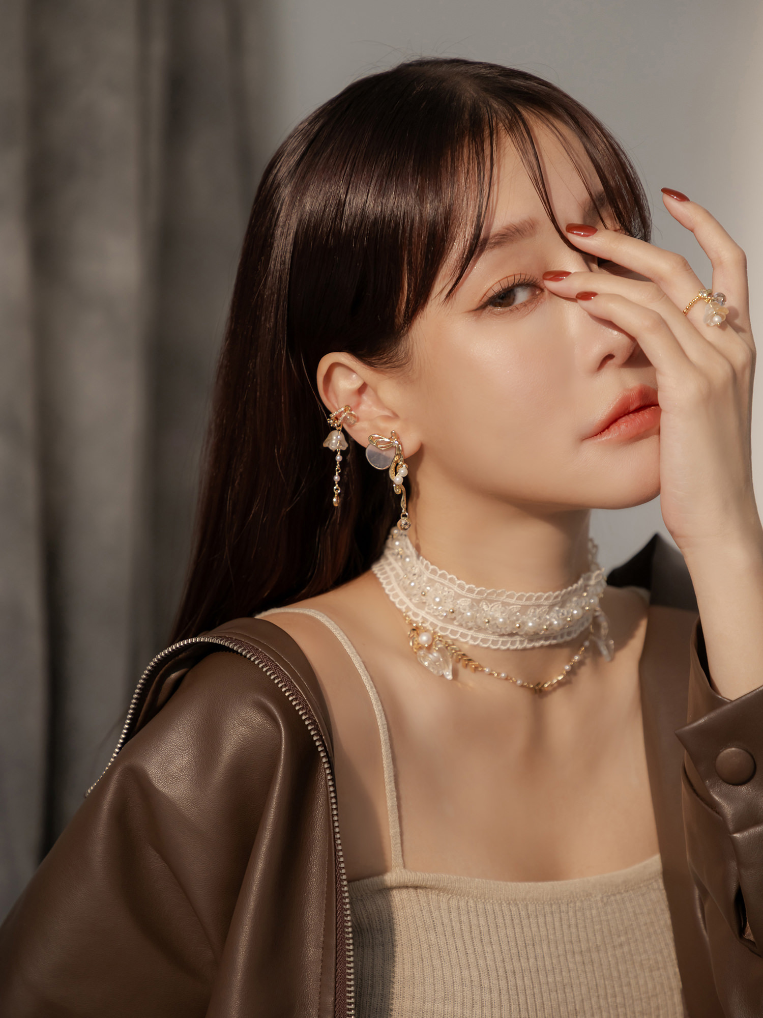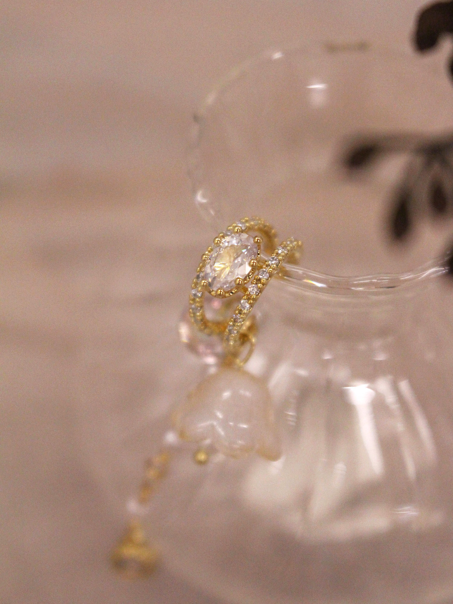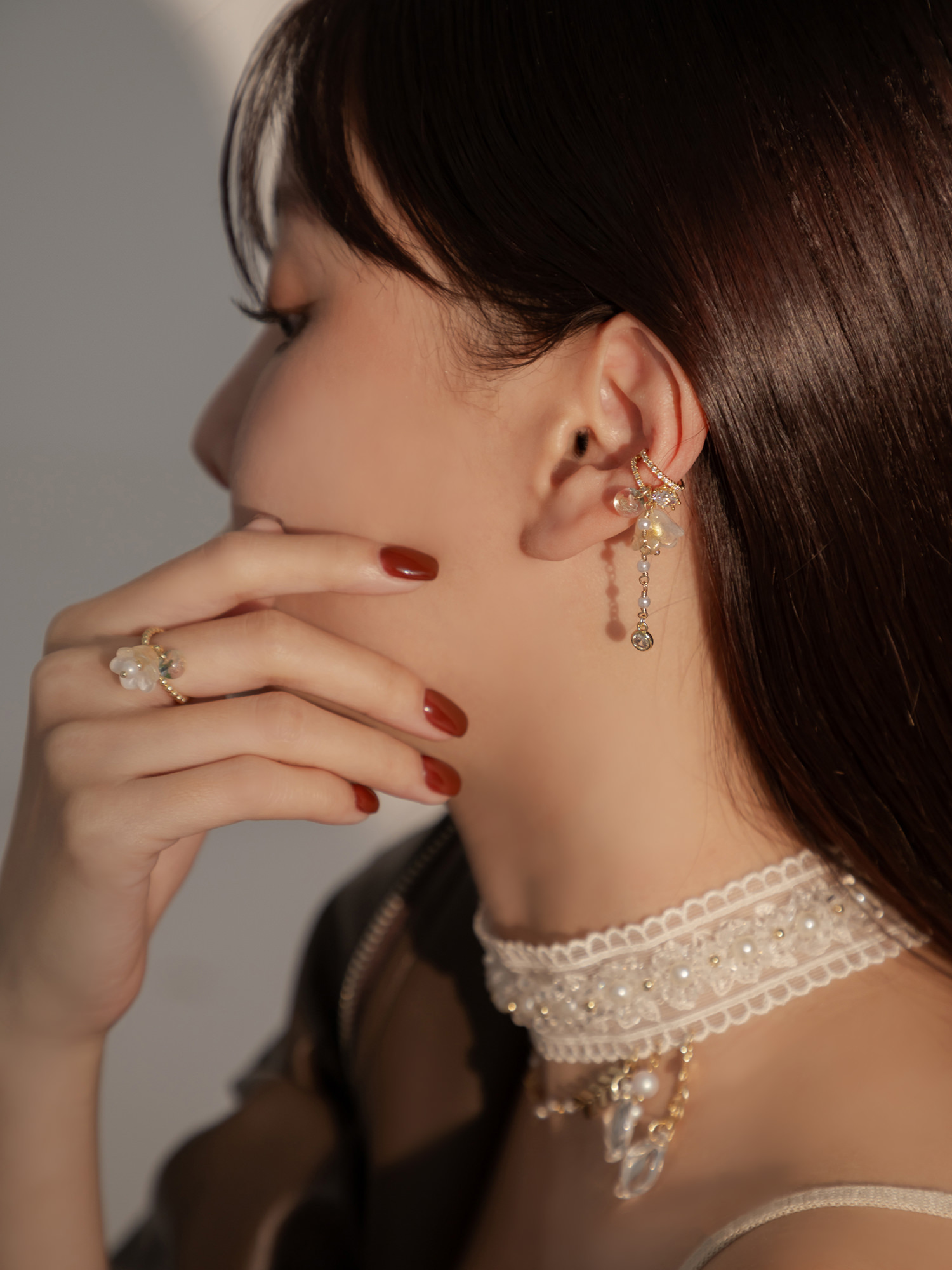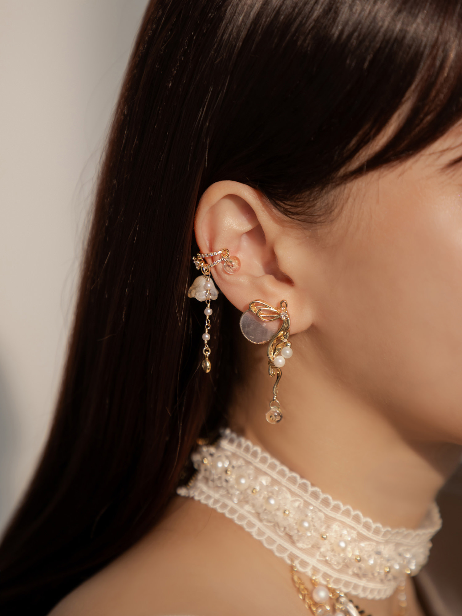 落葉微光。MUCHAT手作14KGP鋯石鈴蘭花耳骨夾 (單支)