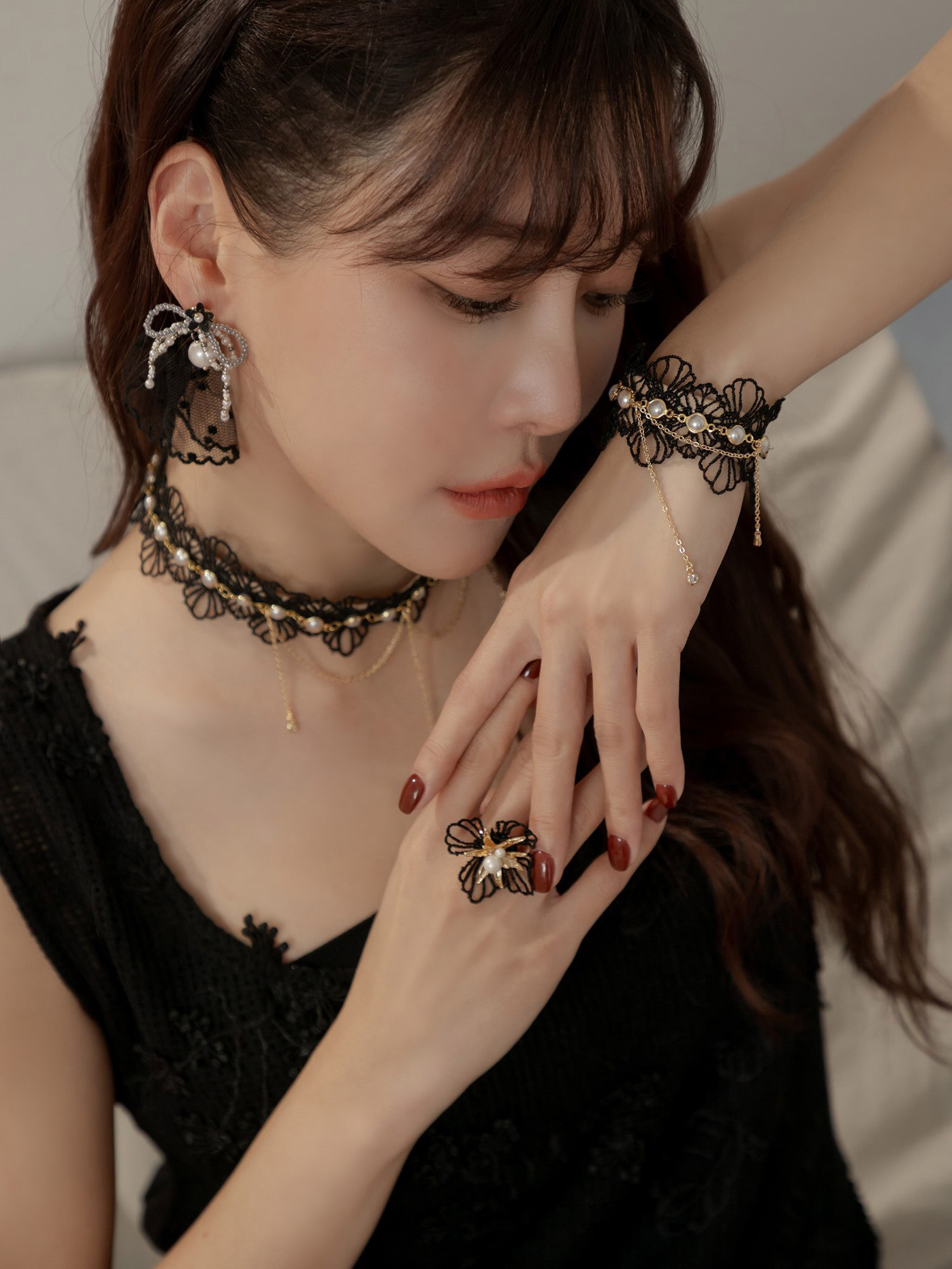 ▸ 素材:銅鍍14KGP、聚酯纖維、仿珠、串珠、亮片等複合材質