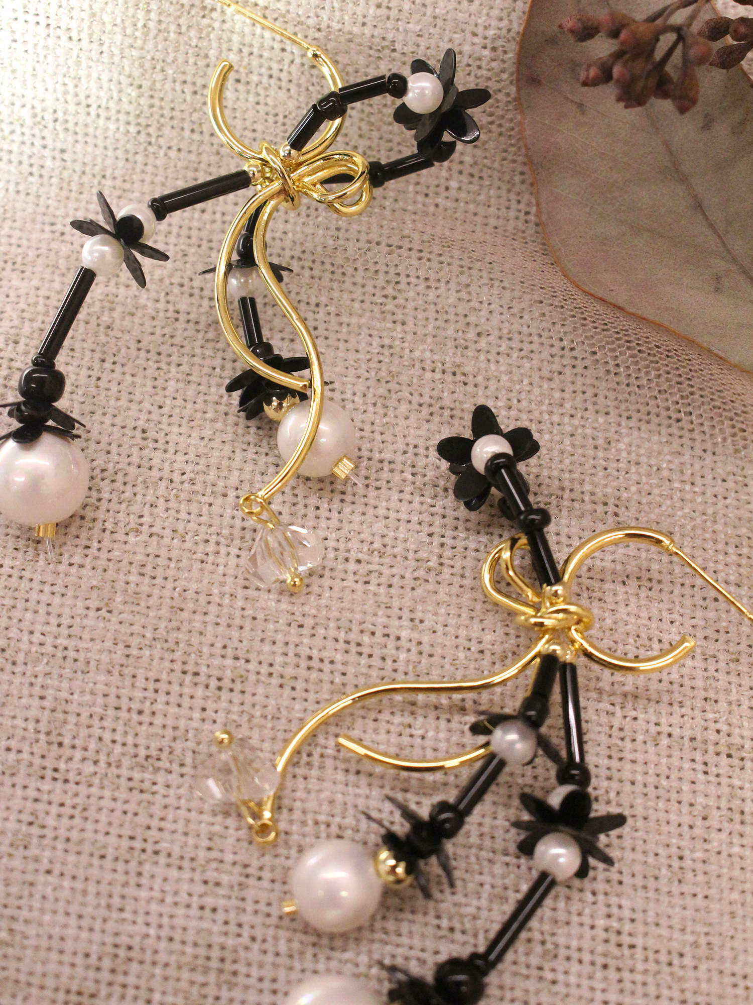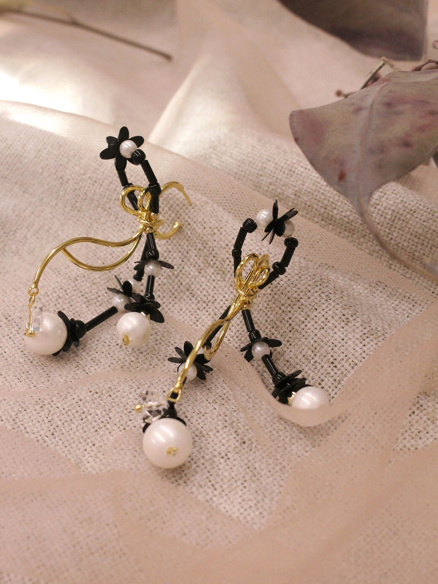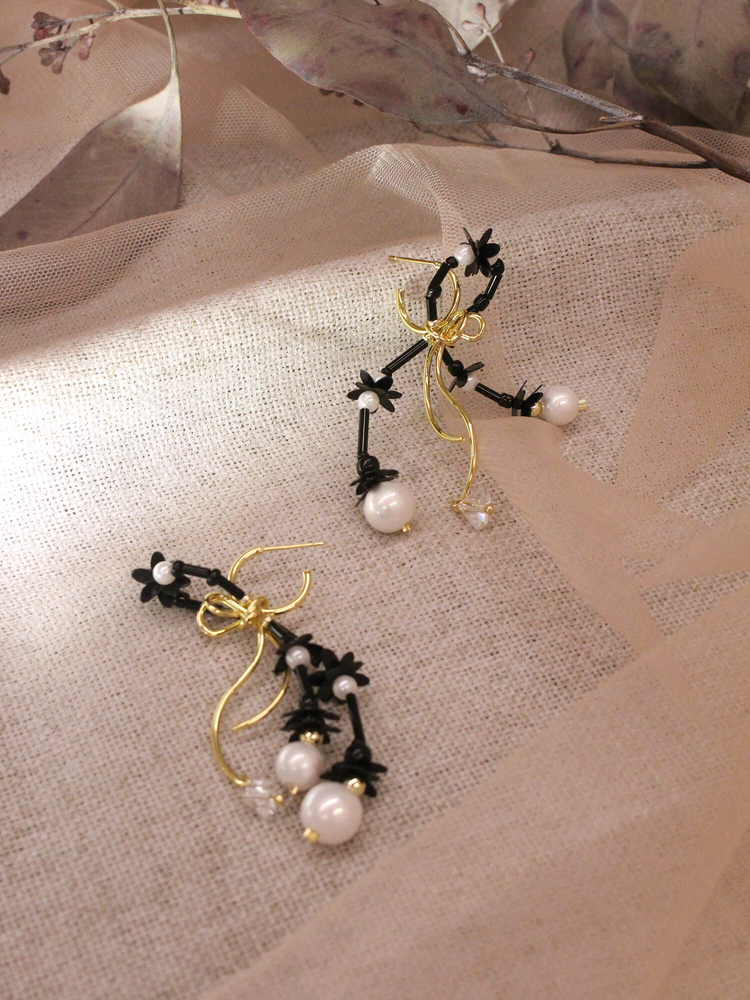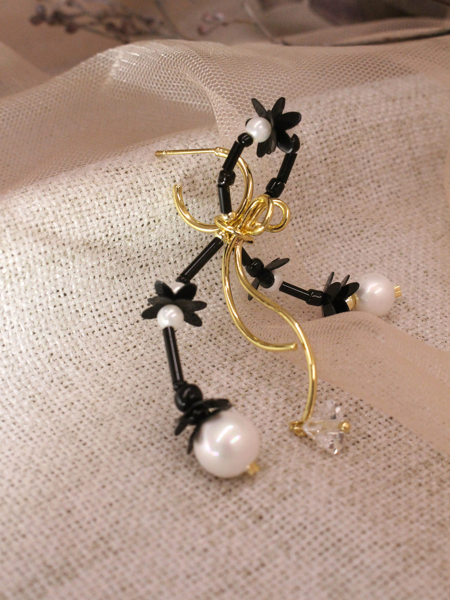 ▸ 素材:銅鍍14KGP、仿珠、串珠、亮片、三角水晶等複合材質