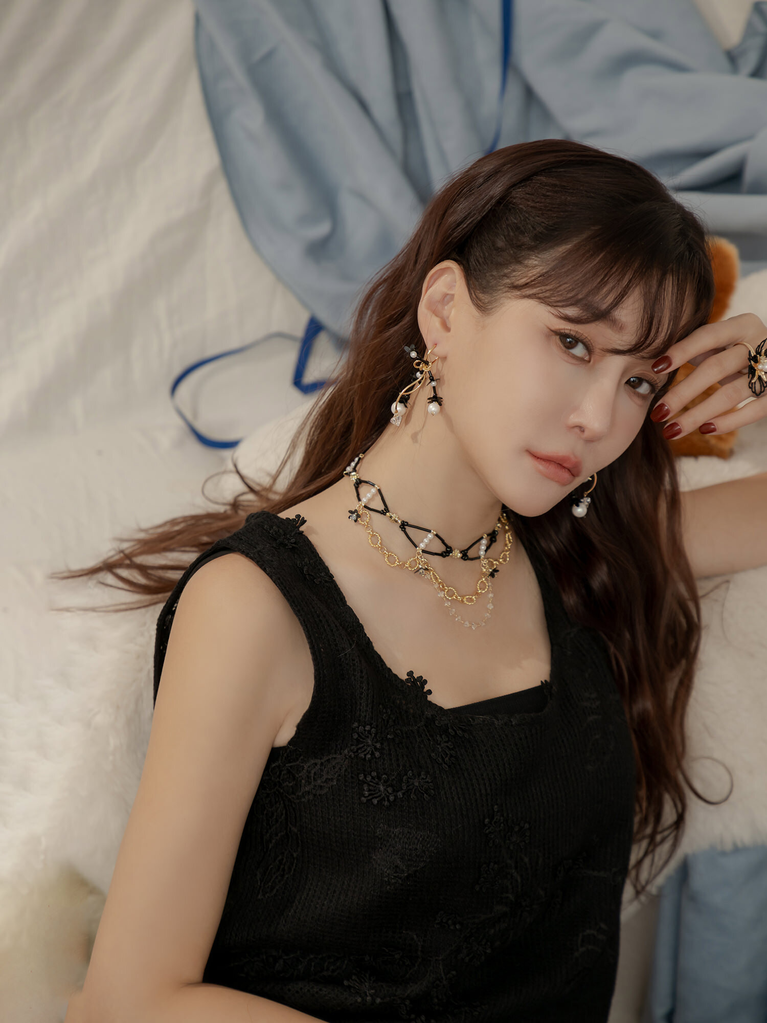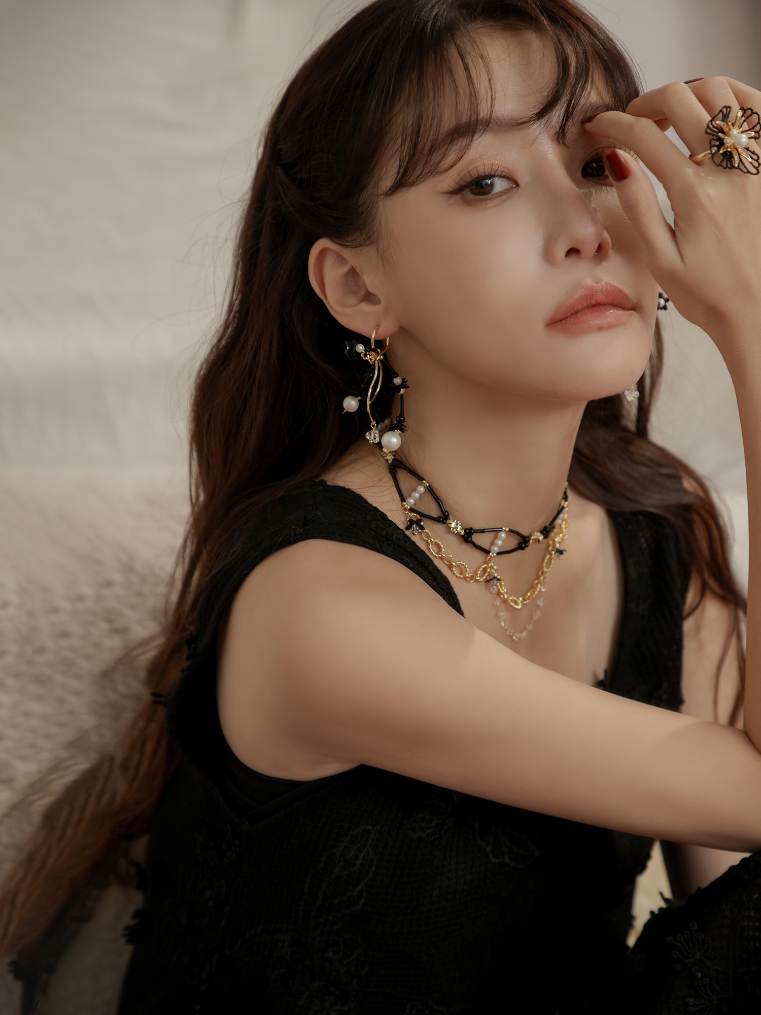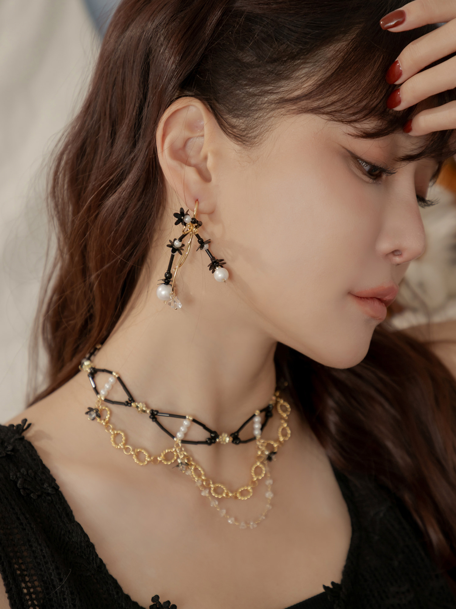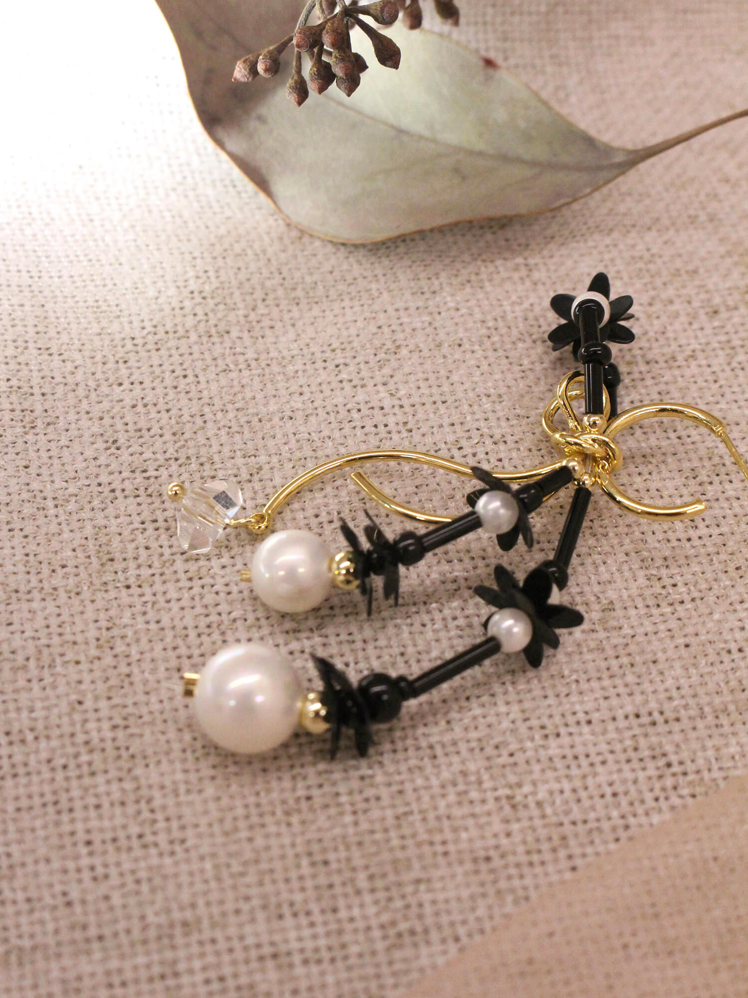 ▸ 素材:銅鍍14KGP、仿珠、串珠、亮片、三角水晶等複合材質
