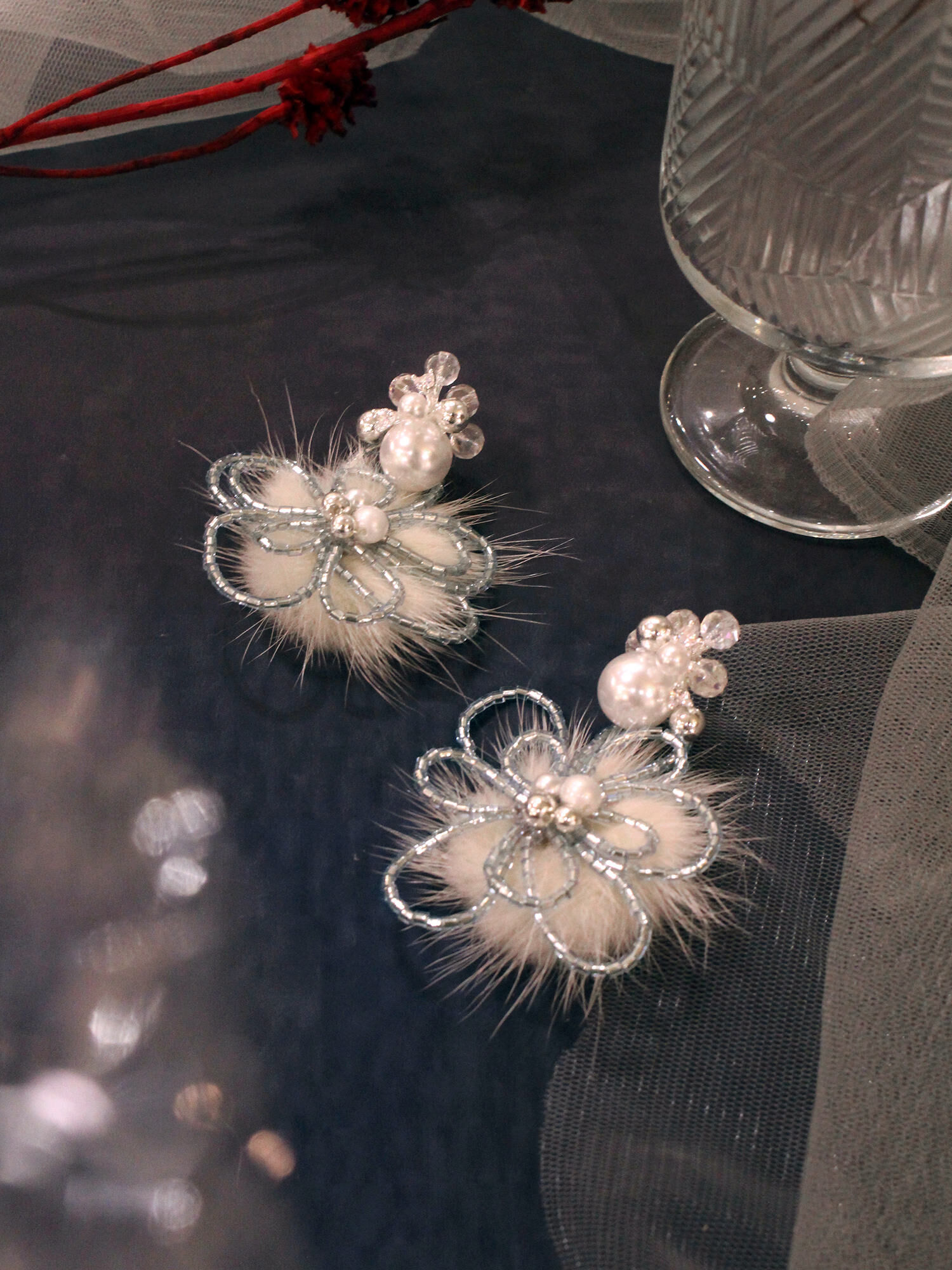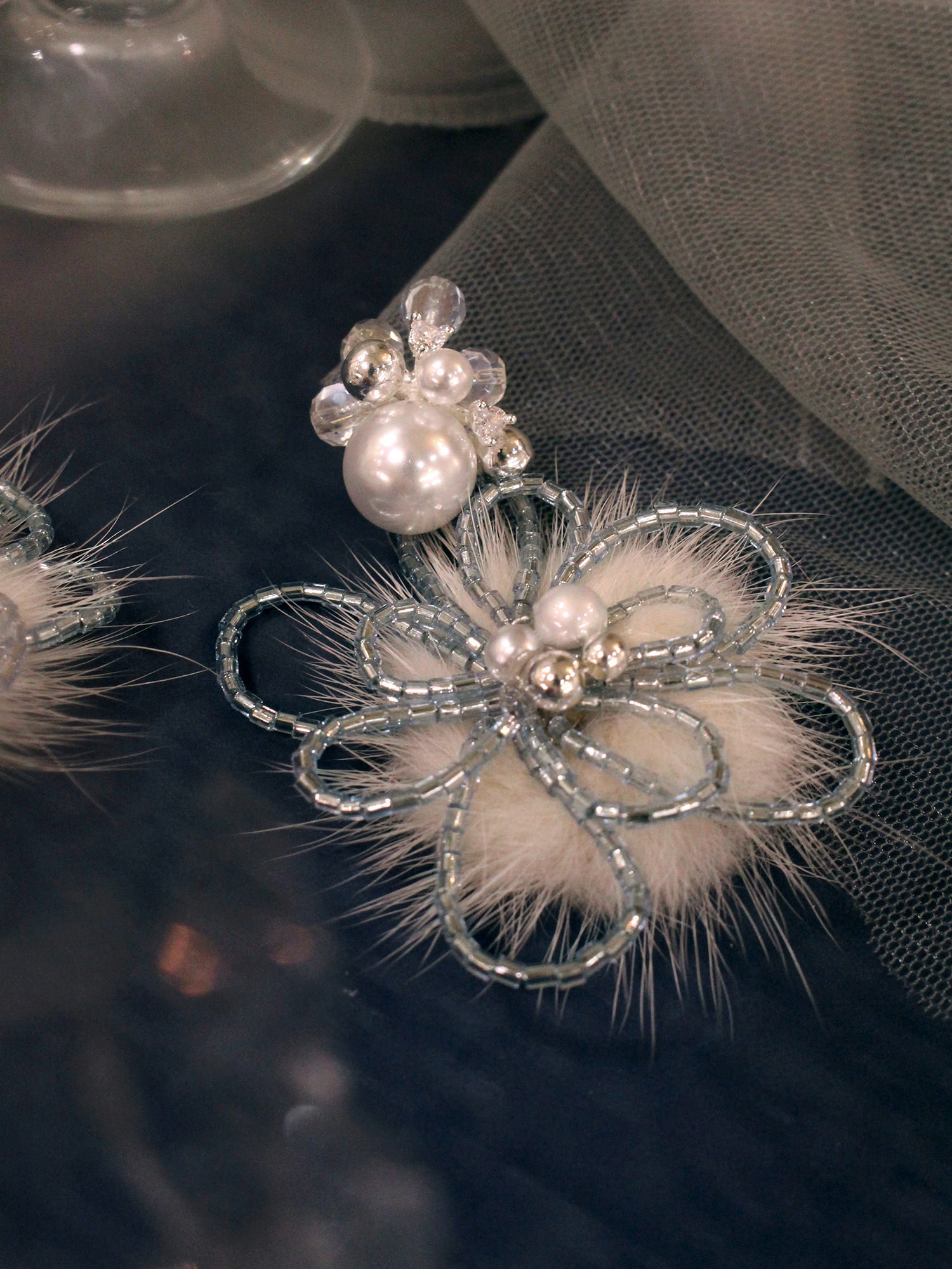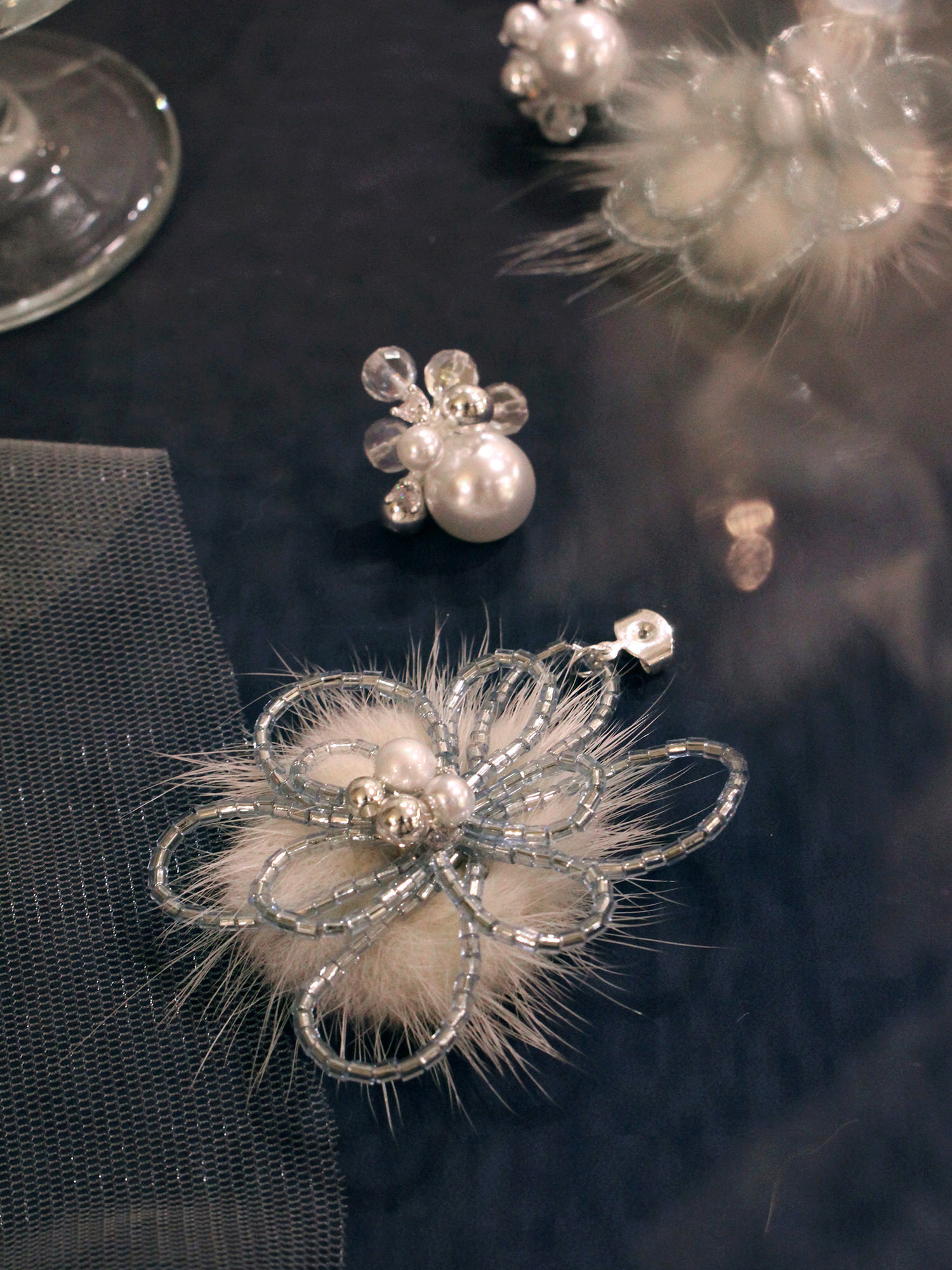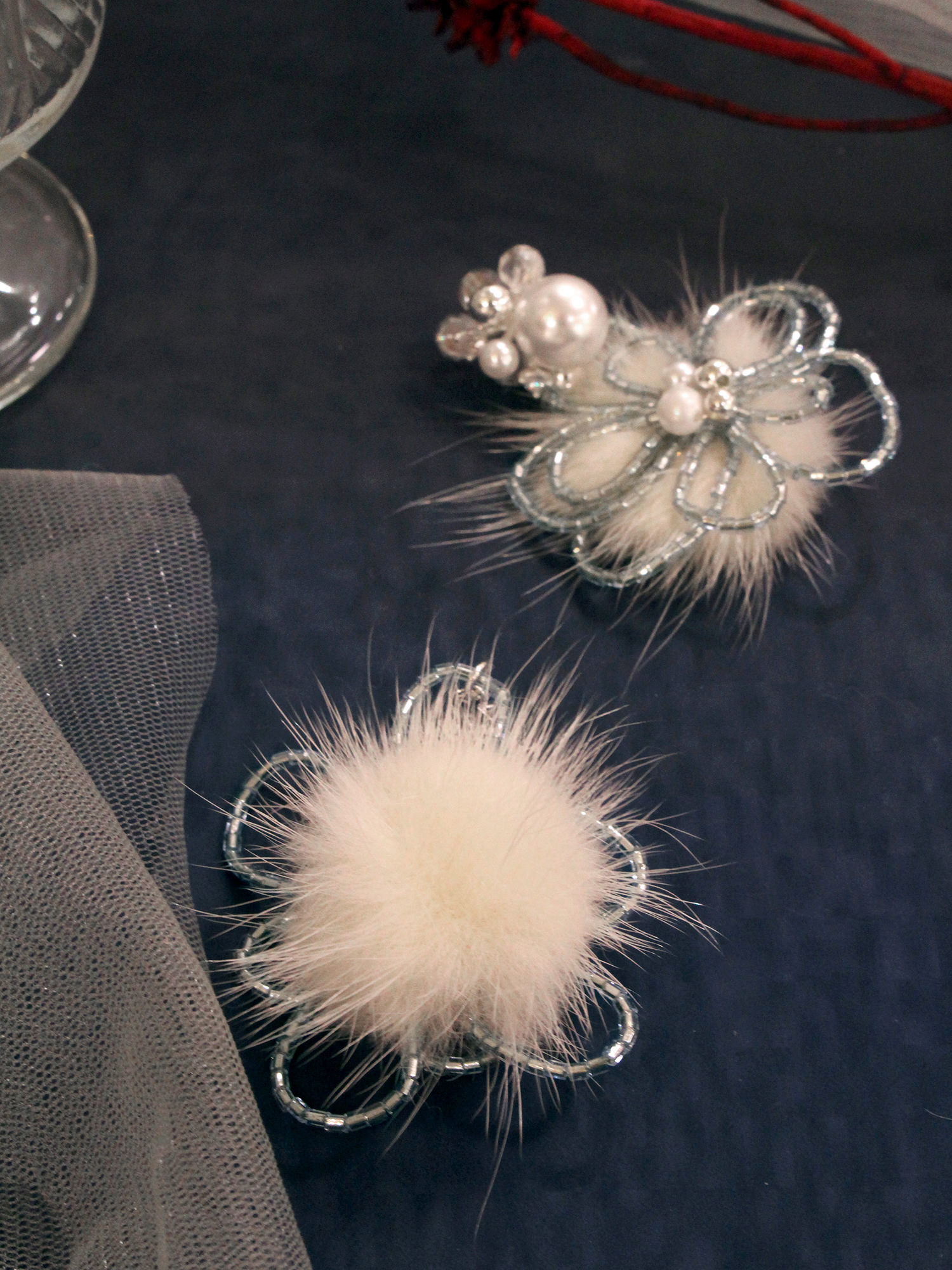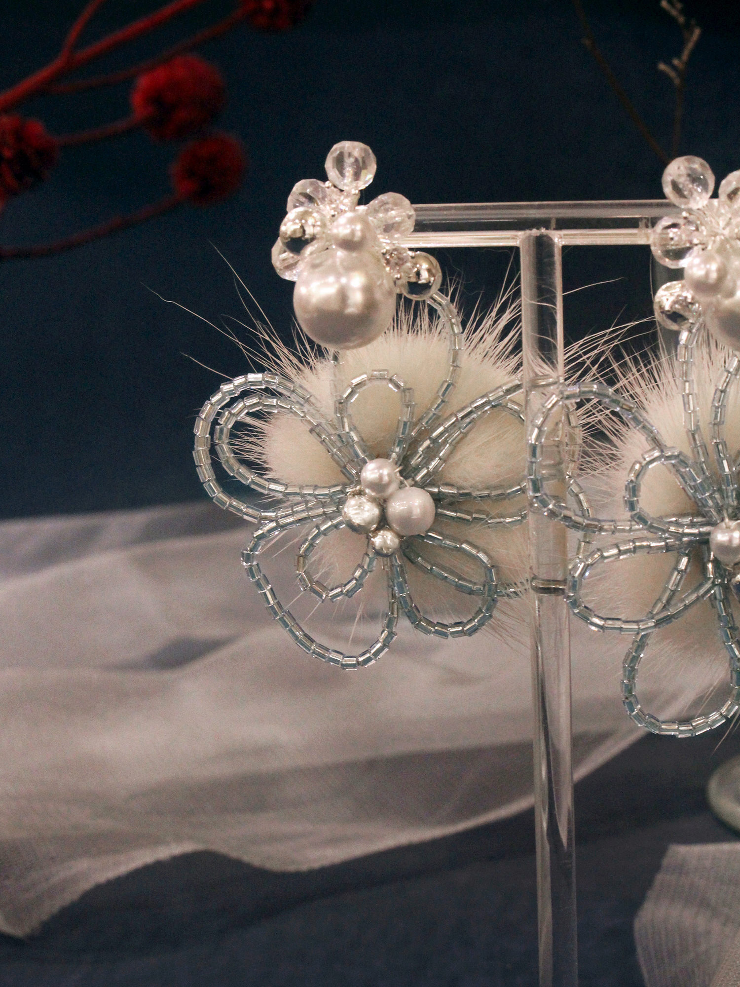 ▸ 素材:銅鍍白銀、聚酯纖維、水晶珠、仿珠、串珠、毛球等複合材質