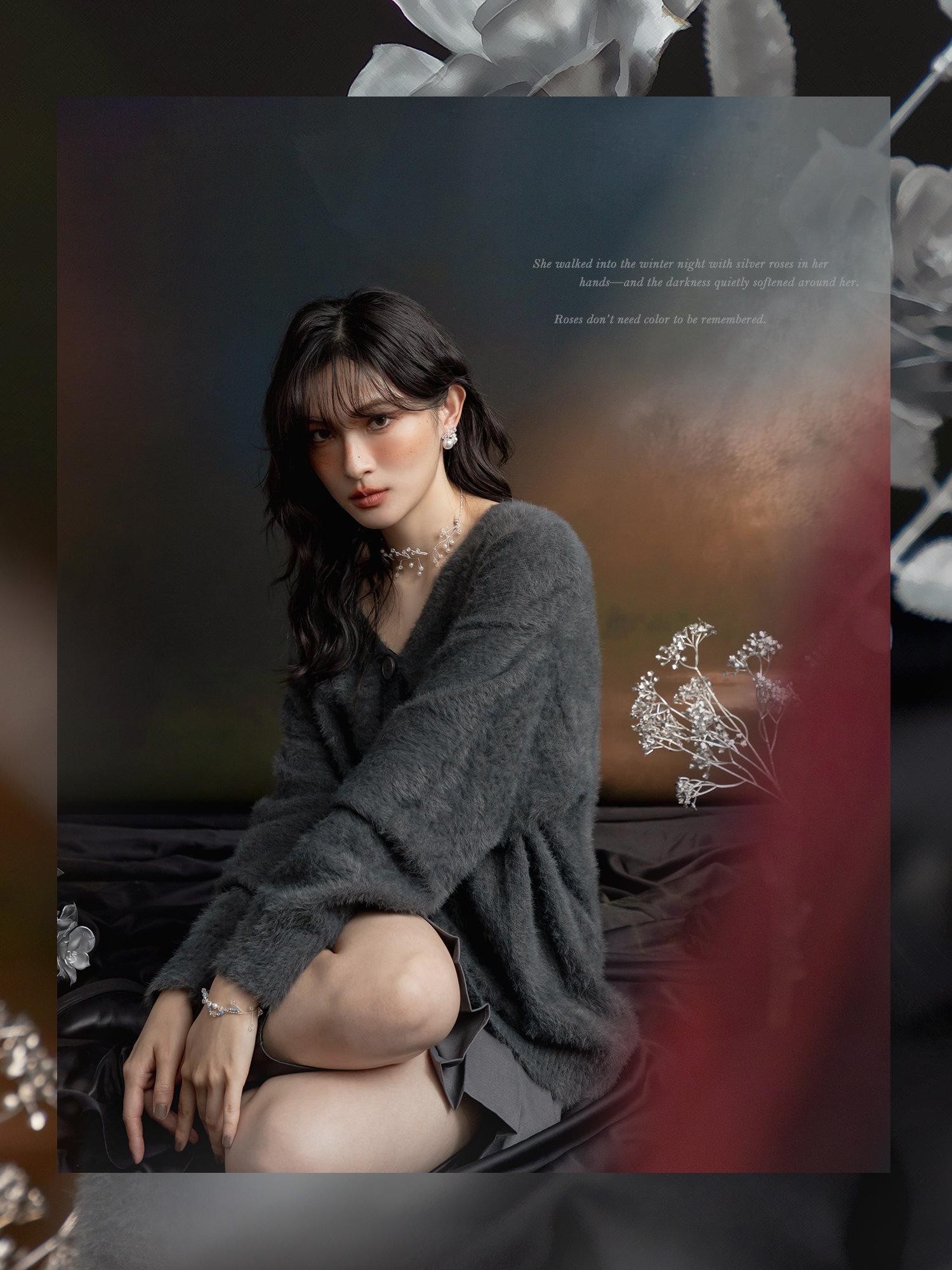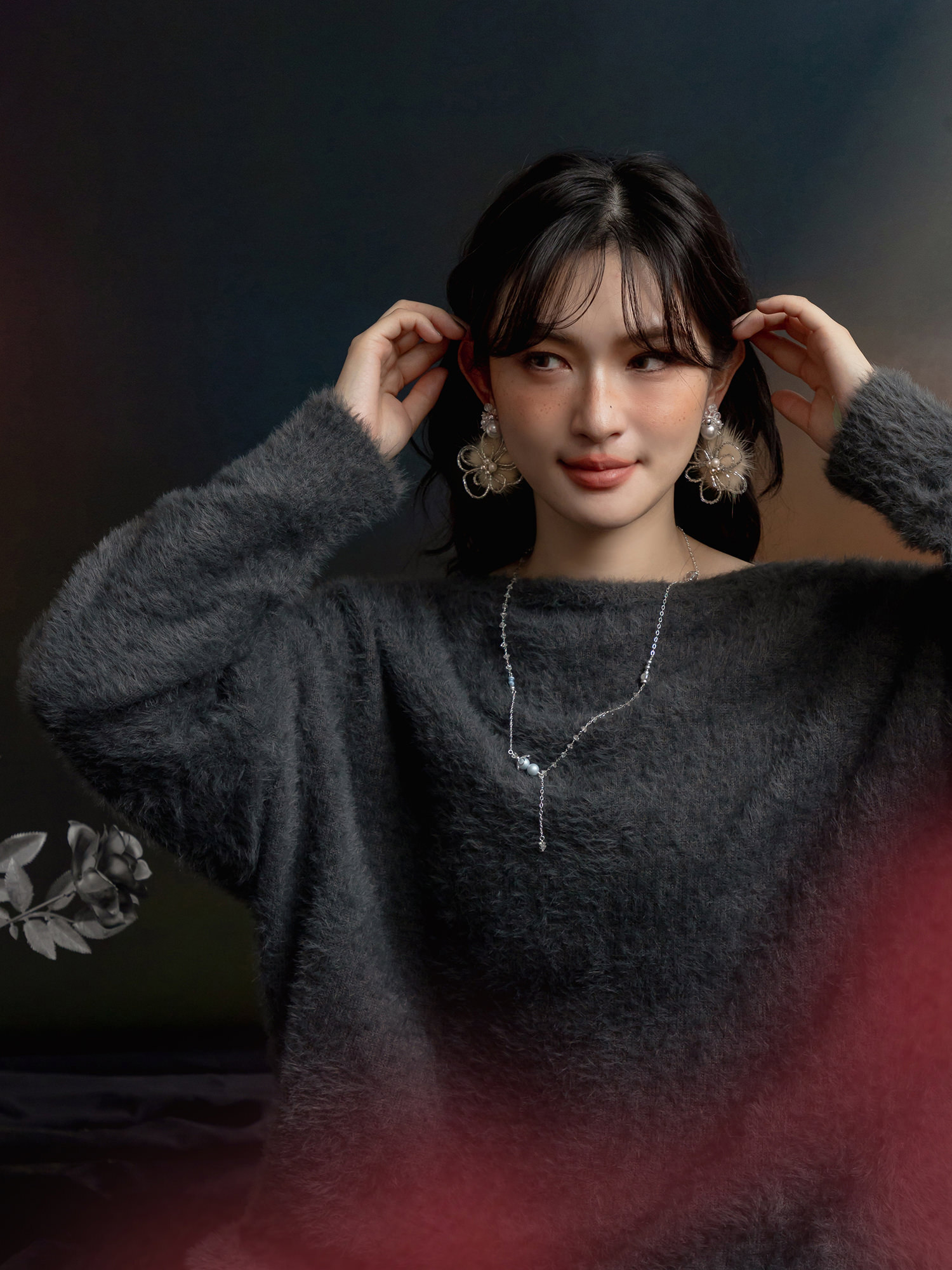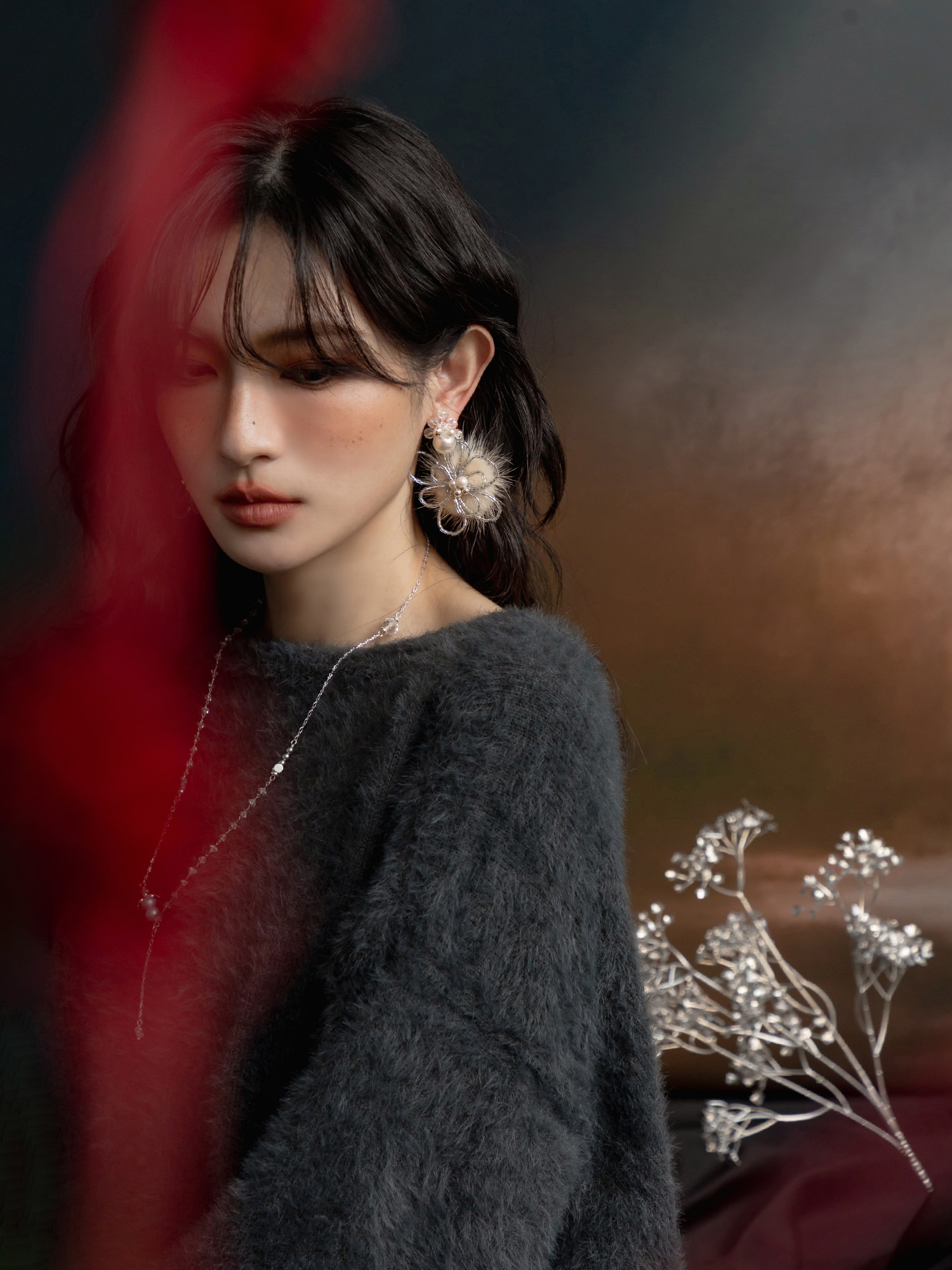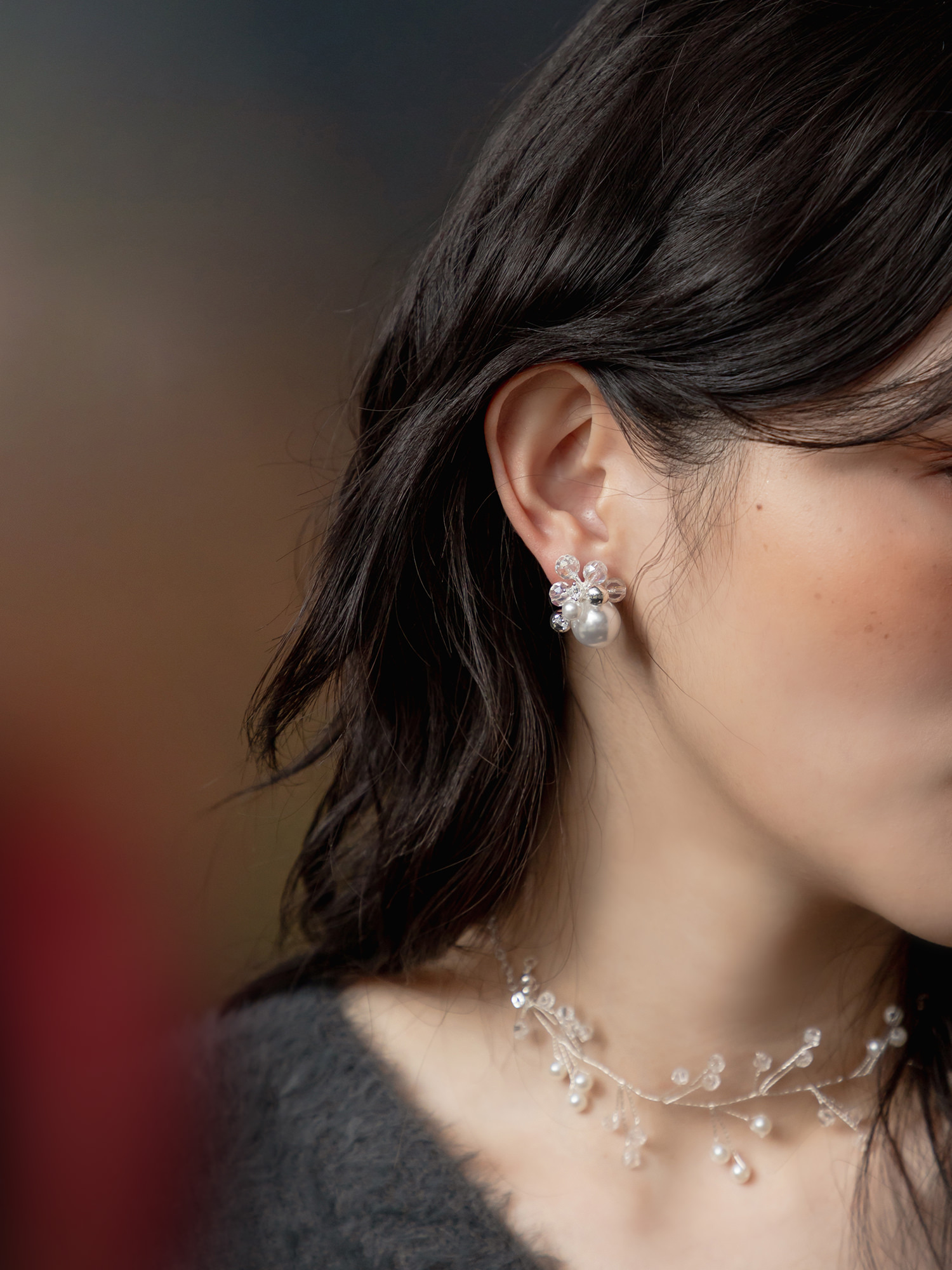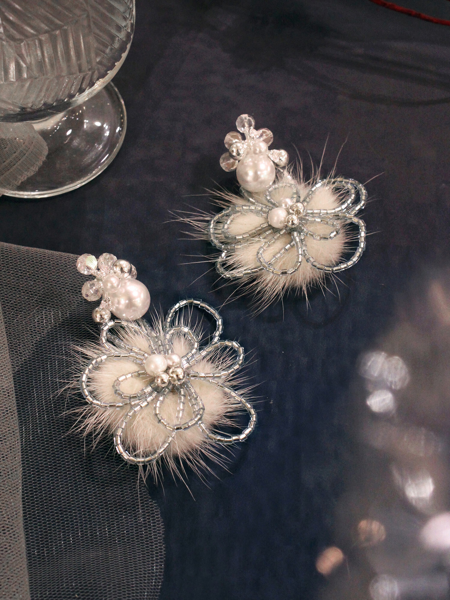 ▸ 素材:銅鍍白銀、聚酯纖維、水晶珠、仿珠、串珠、毛球等複合材質