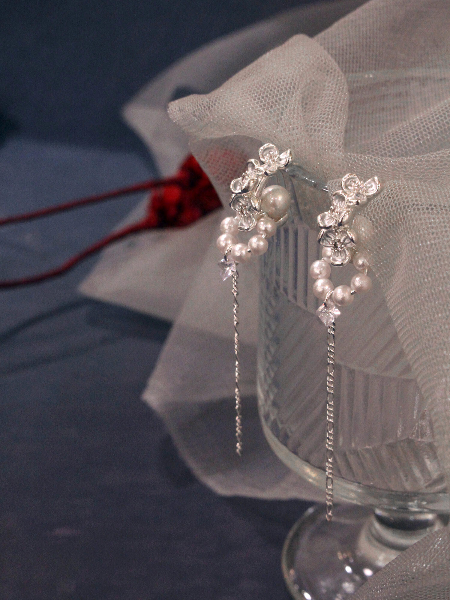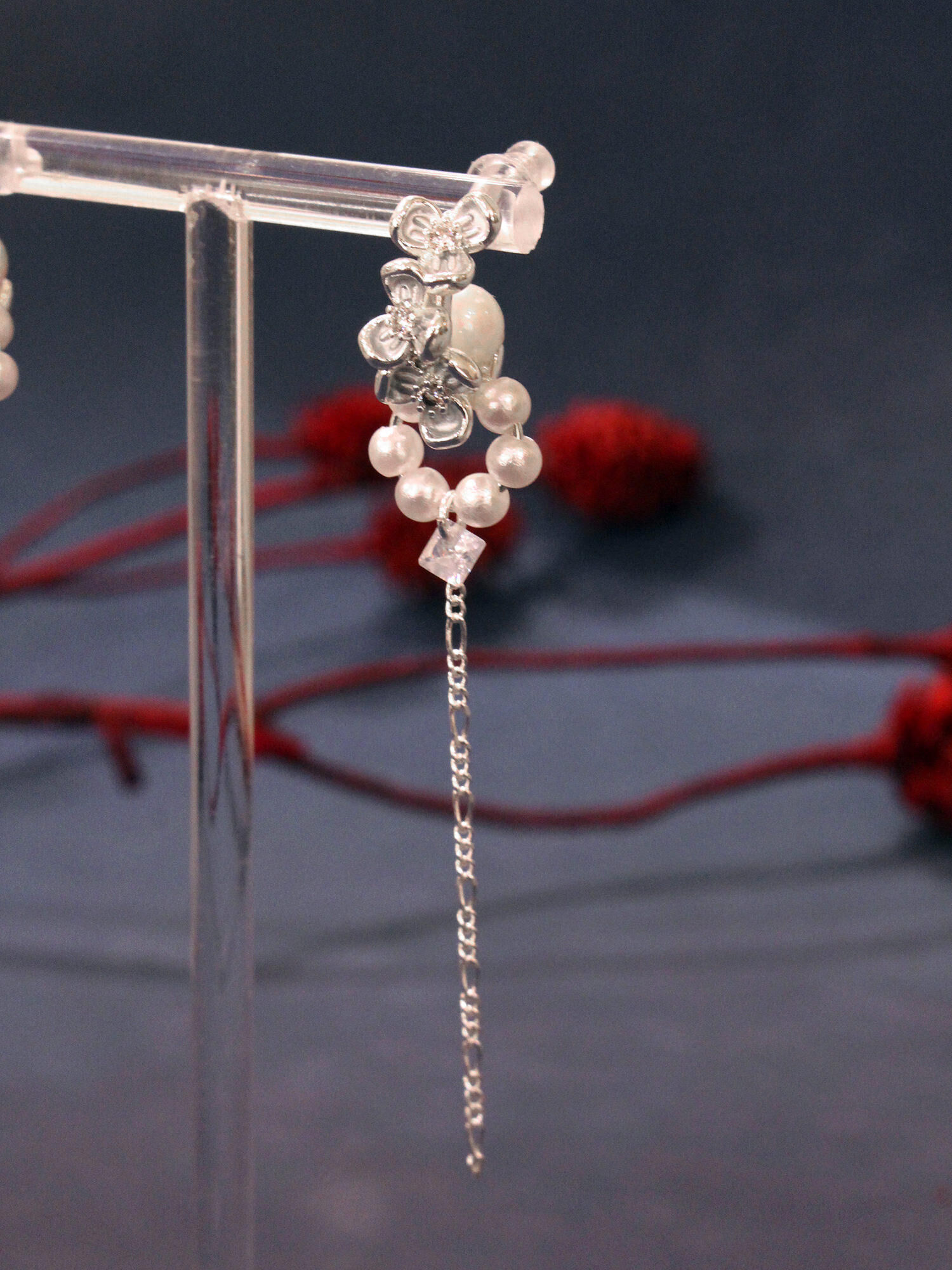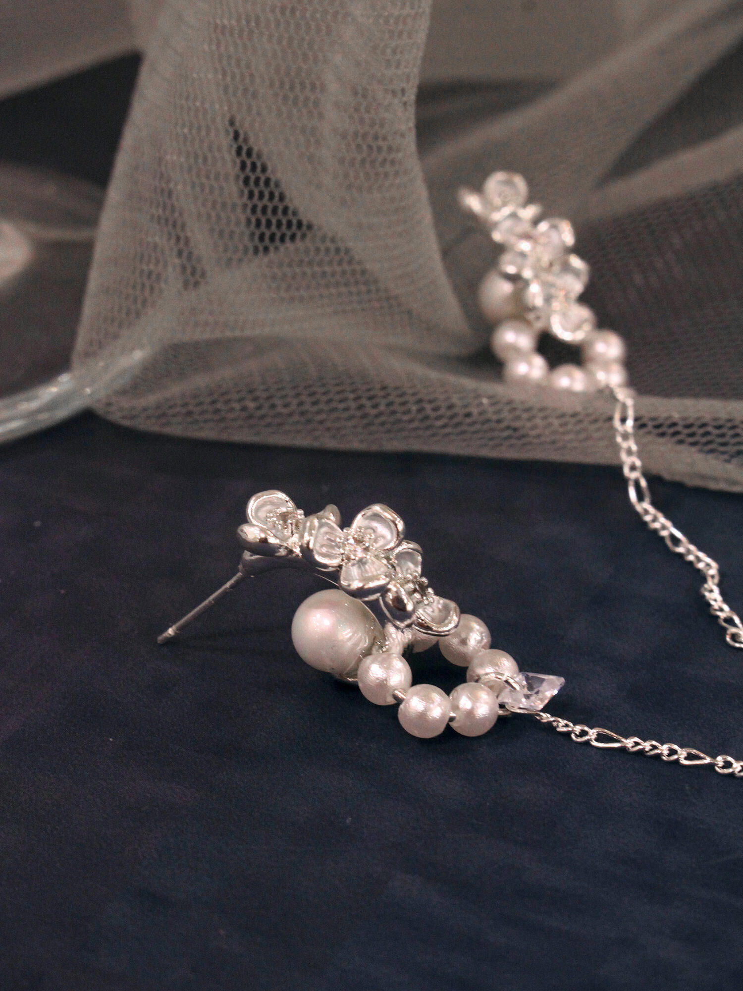 ▸ 素材:銅鍍白銀、鋯石、仿珠等複合材質