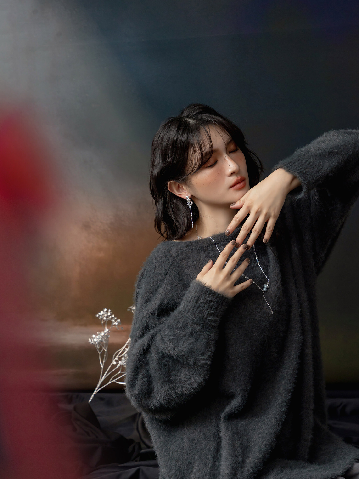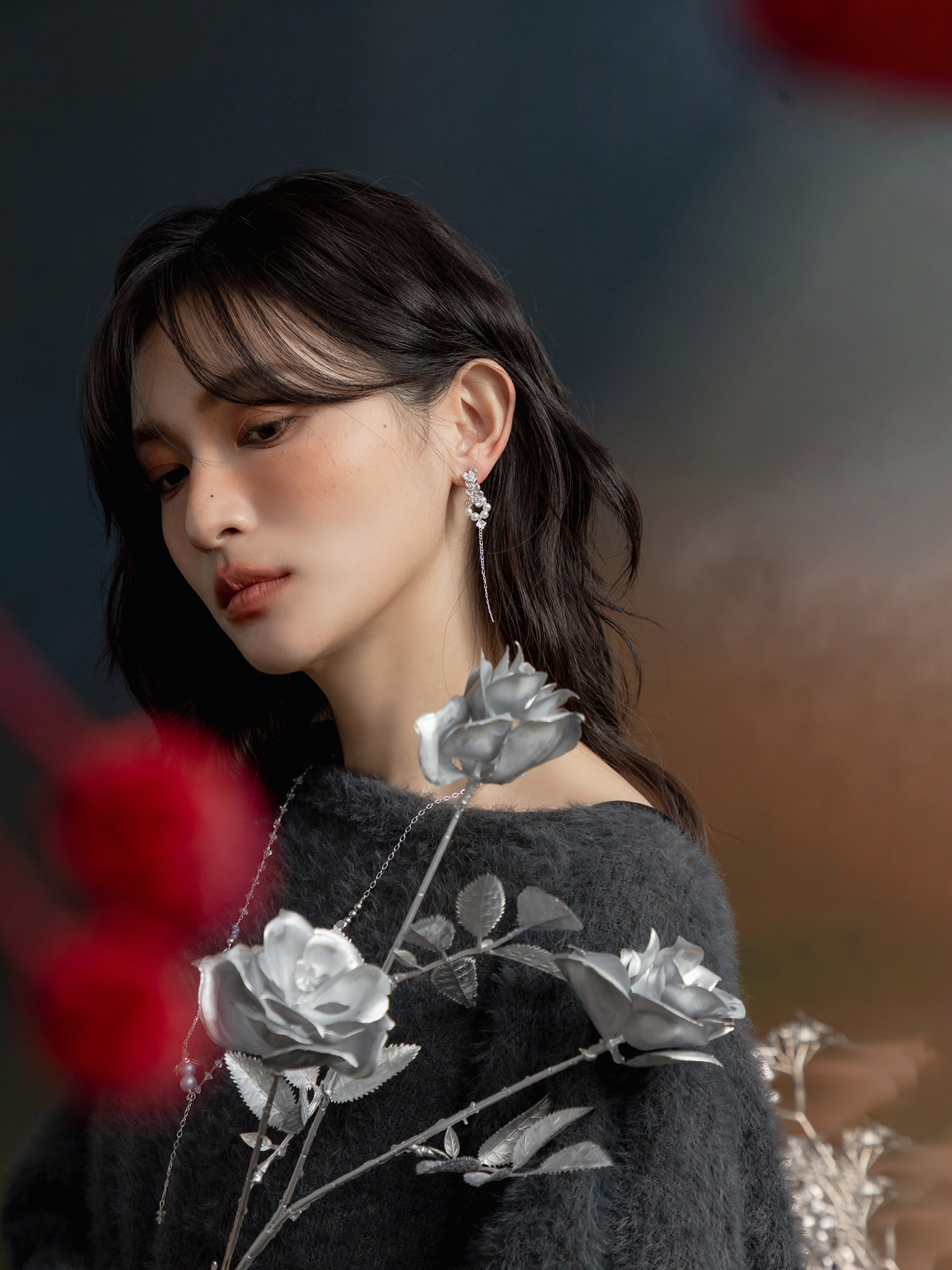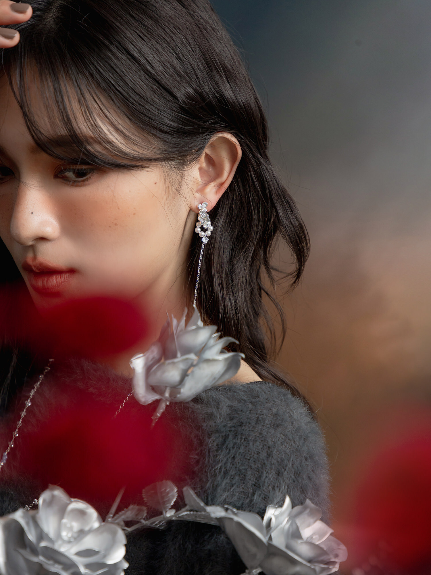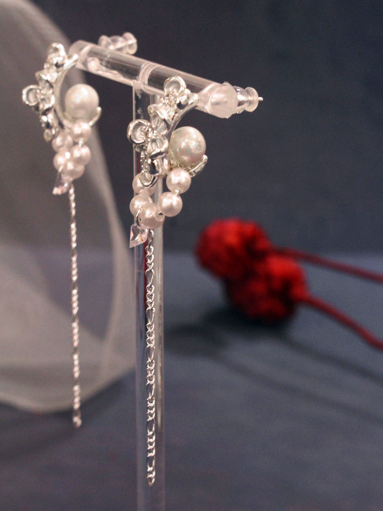 ▸ 素材:銅鍍白銀、鋯石、仿珠等複合材質