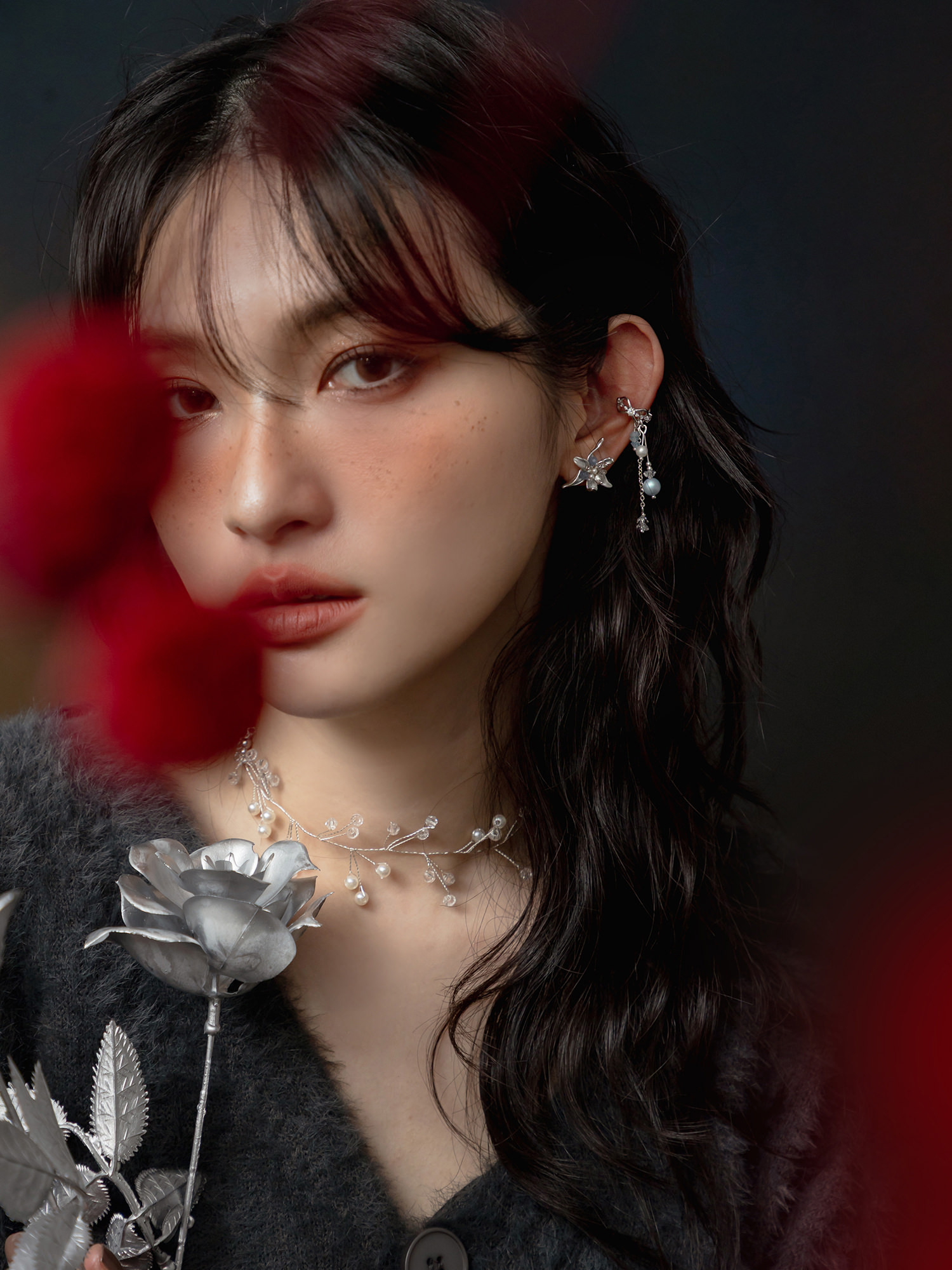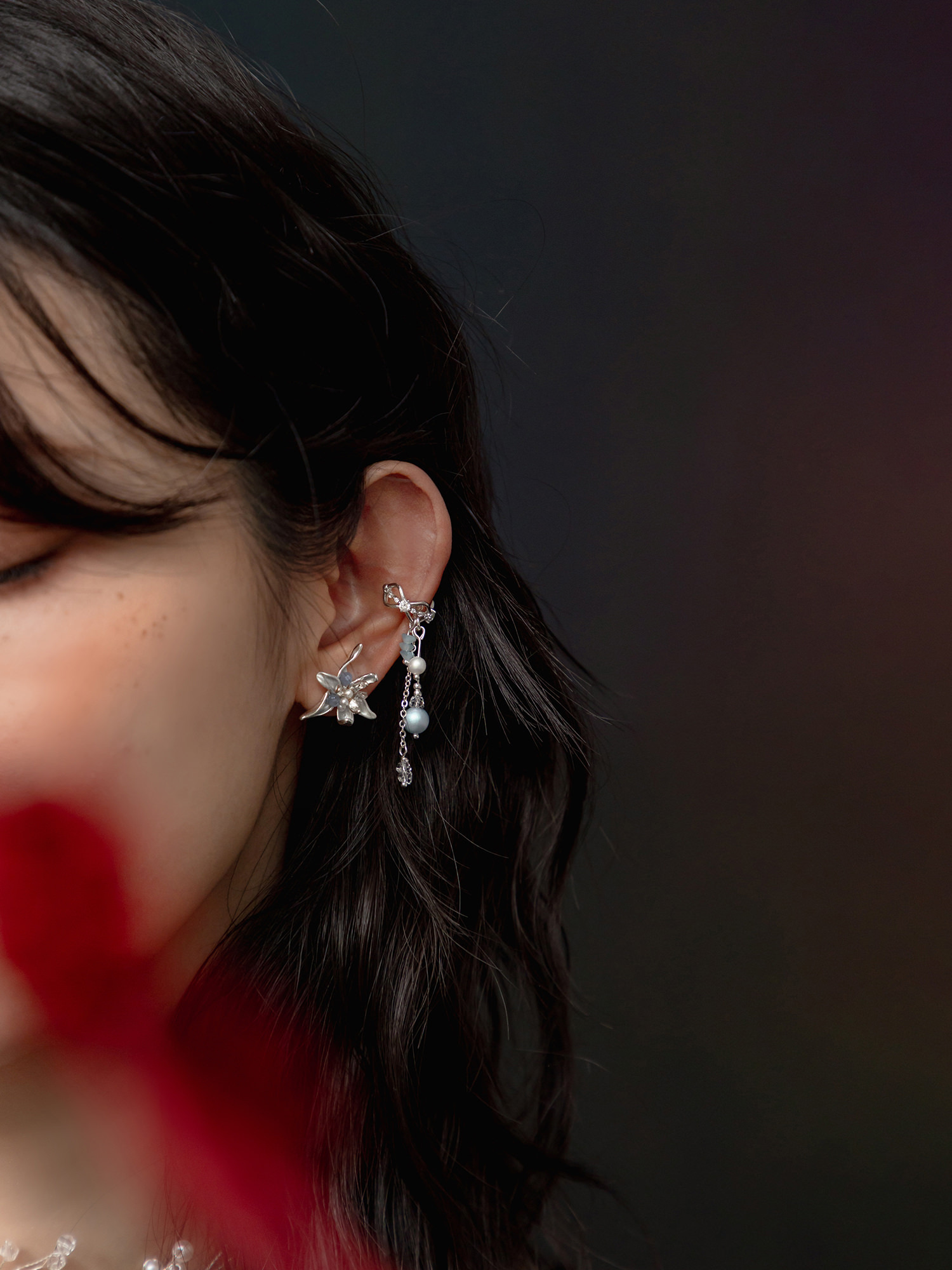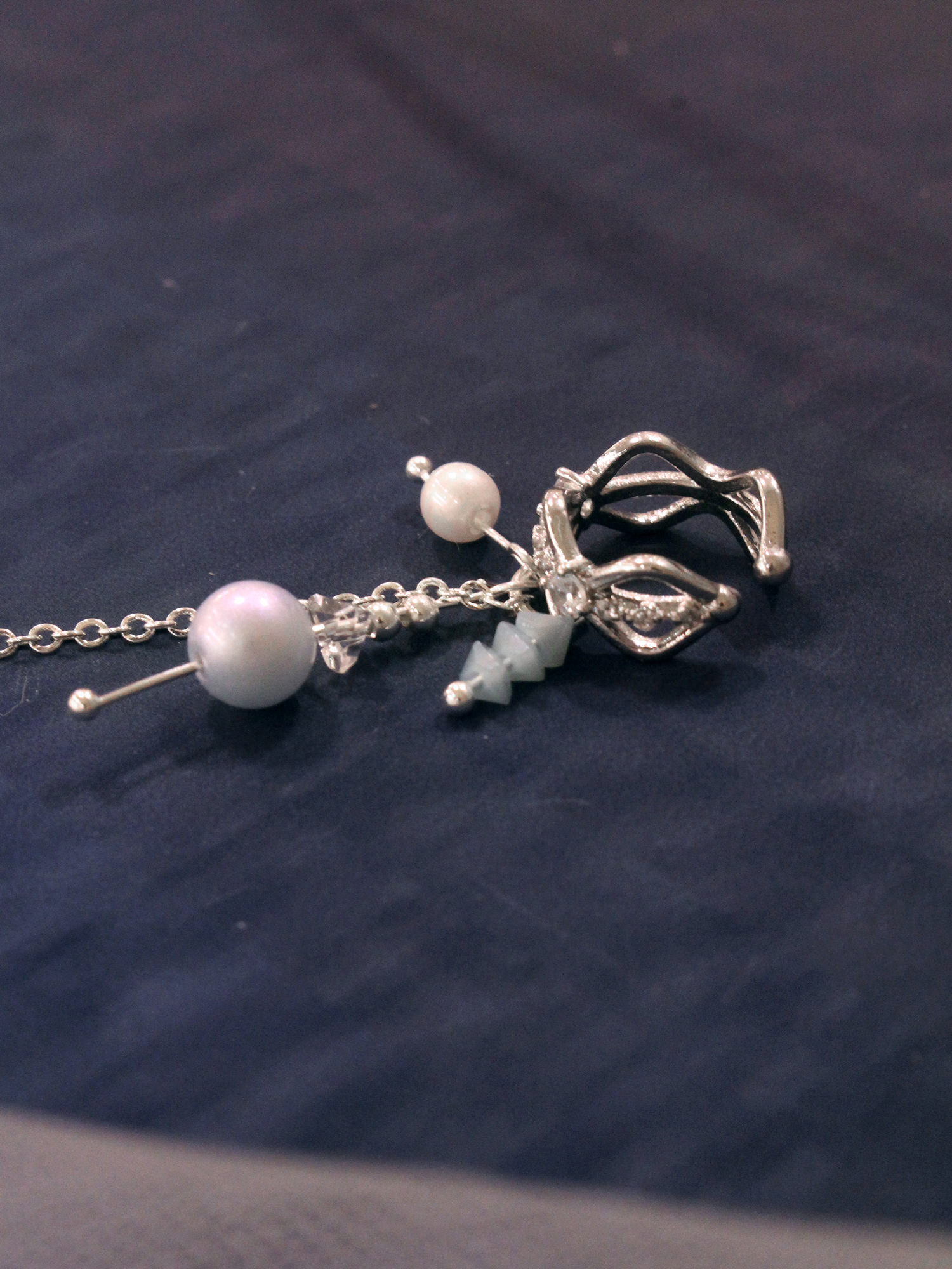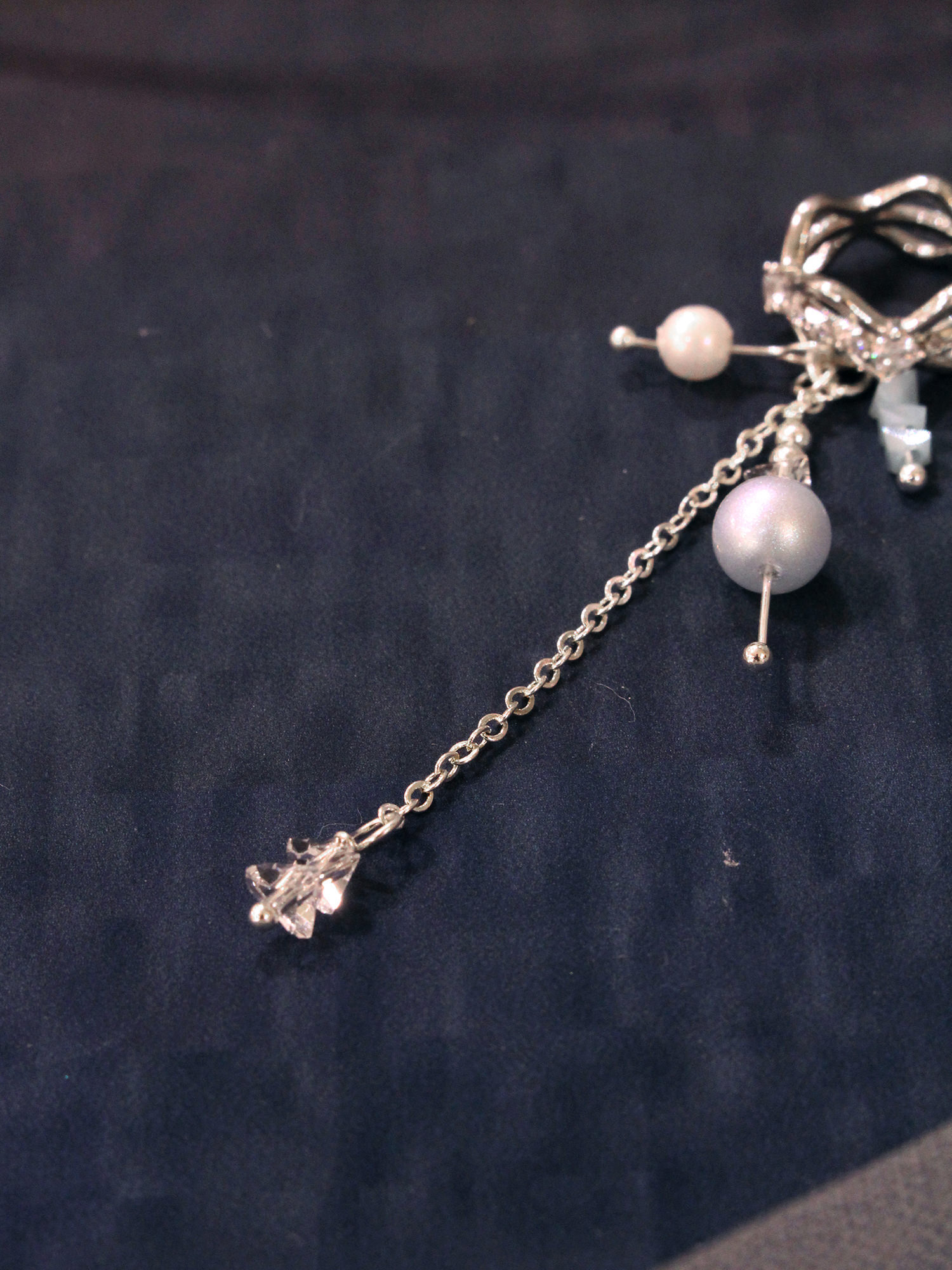 ▸ 素材:銅鍍銀、銅鍍白K、鋯石、仿珠、三角水晶等複合材質