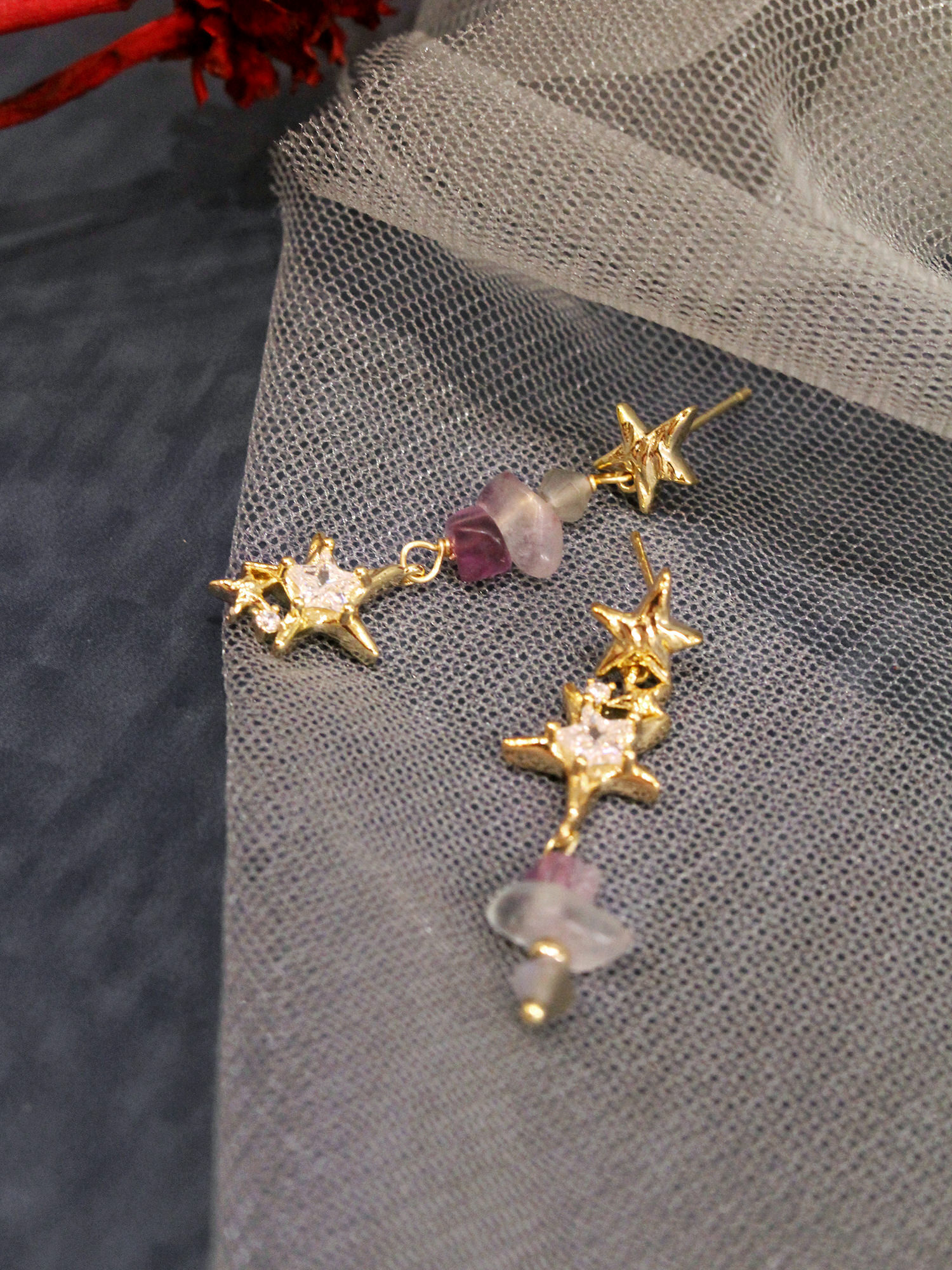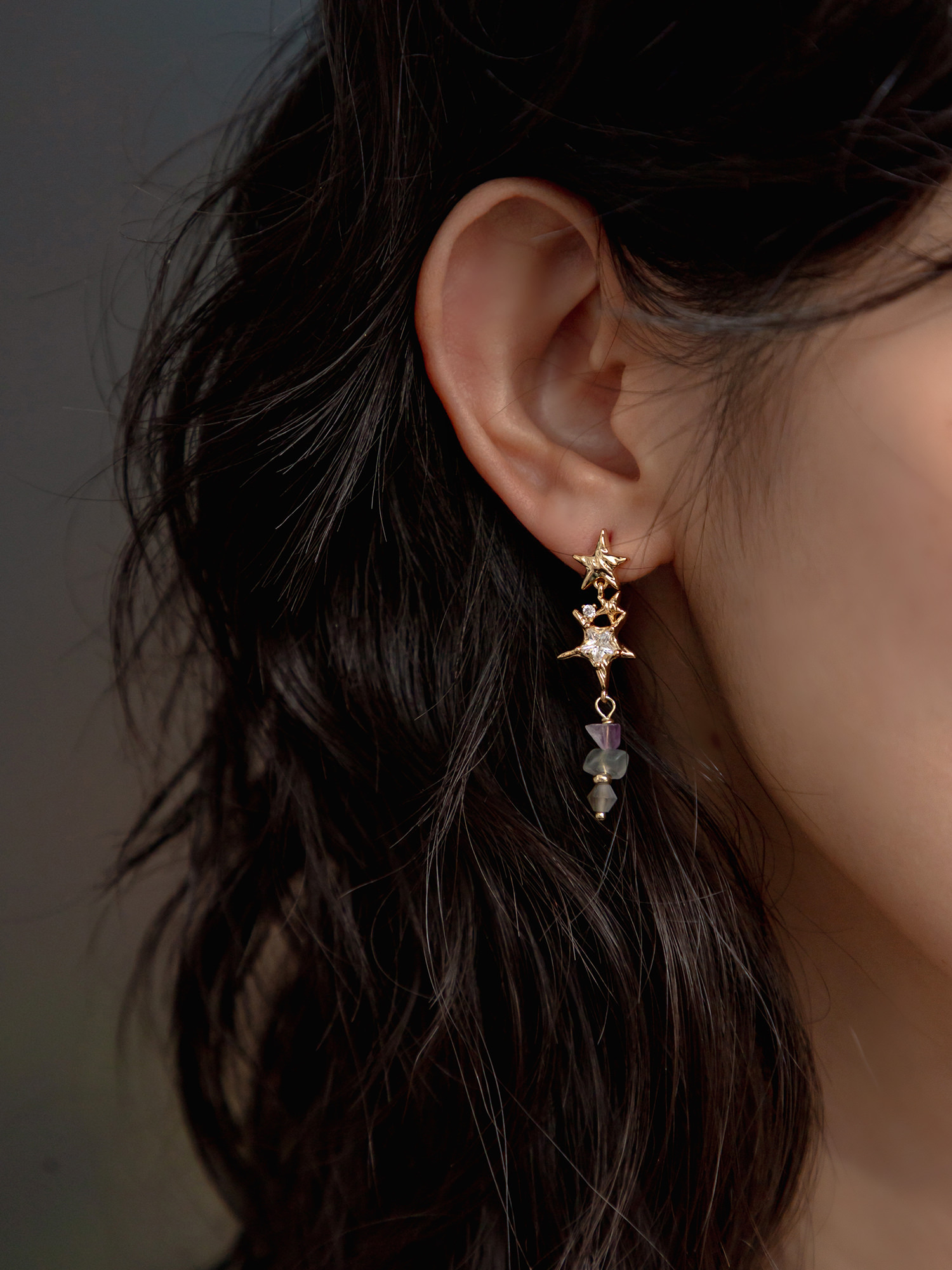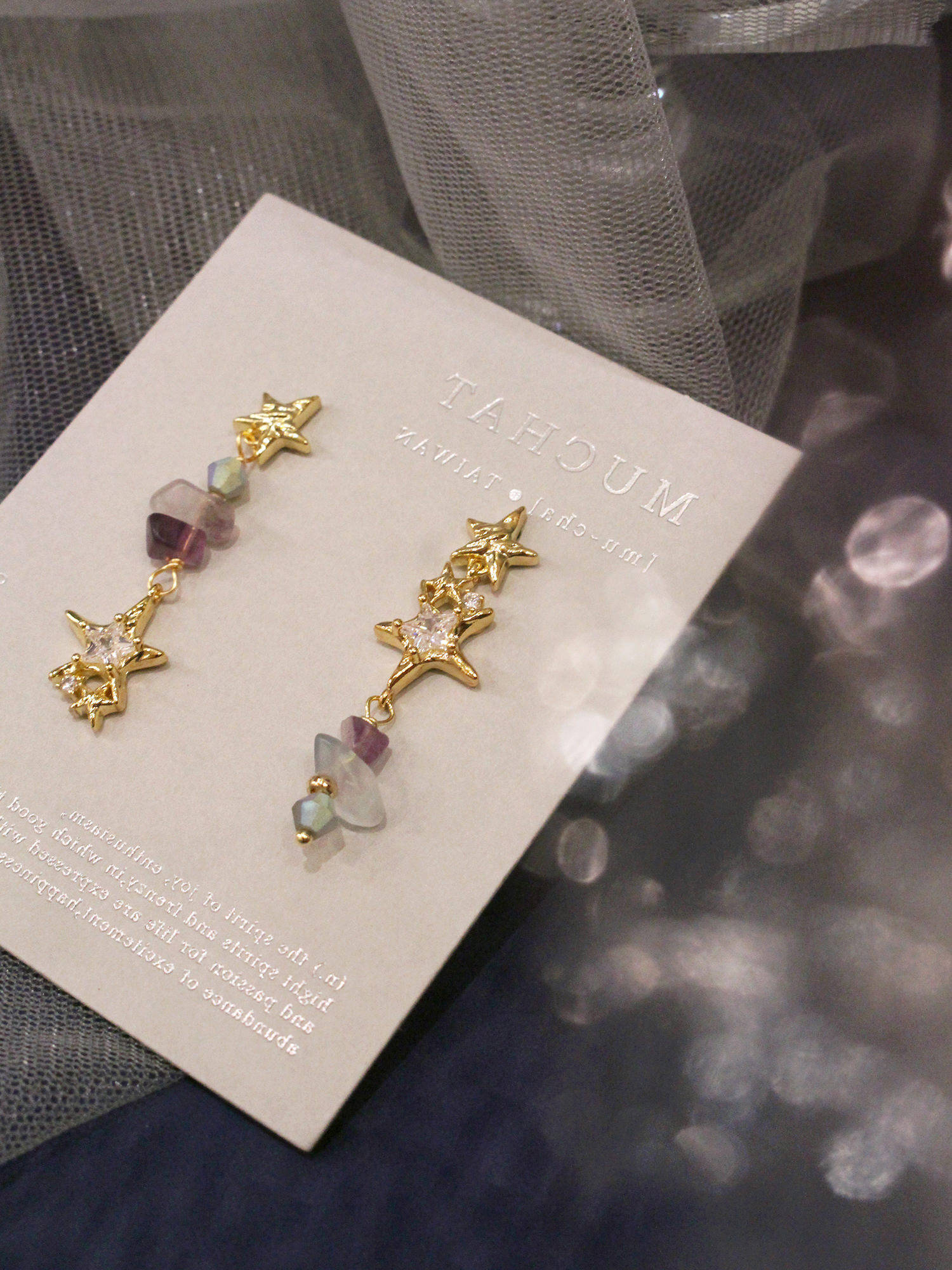 第七個預言。MUCHAT手作14KGP螢石星芒純銀針耳環