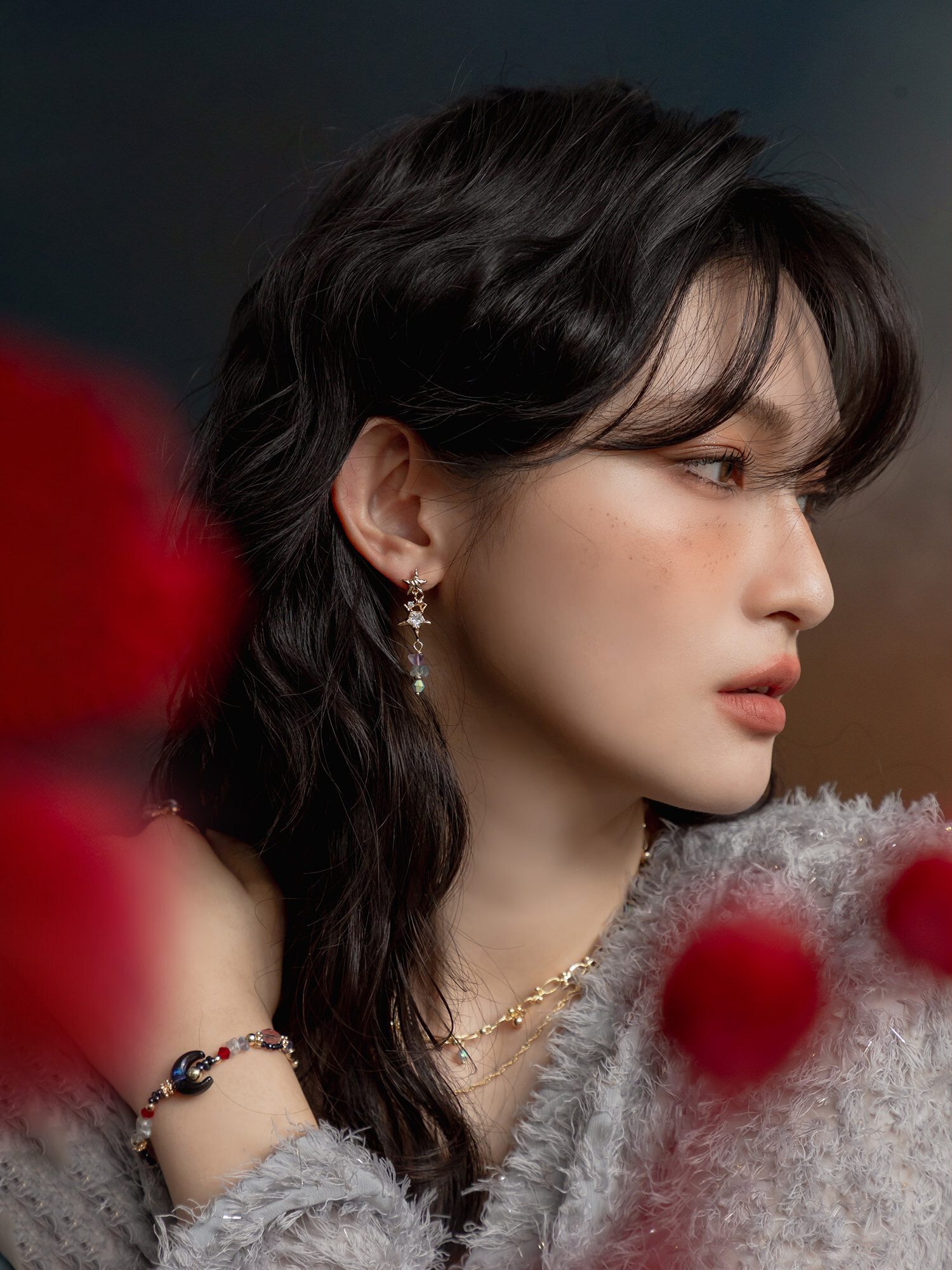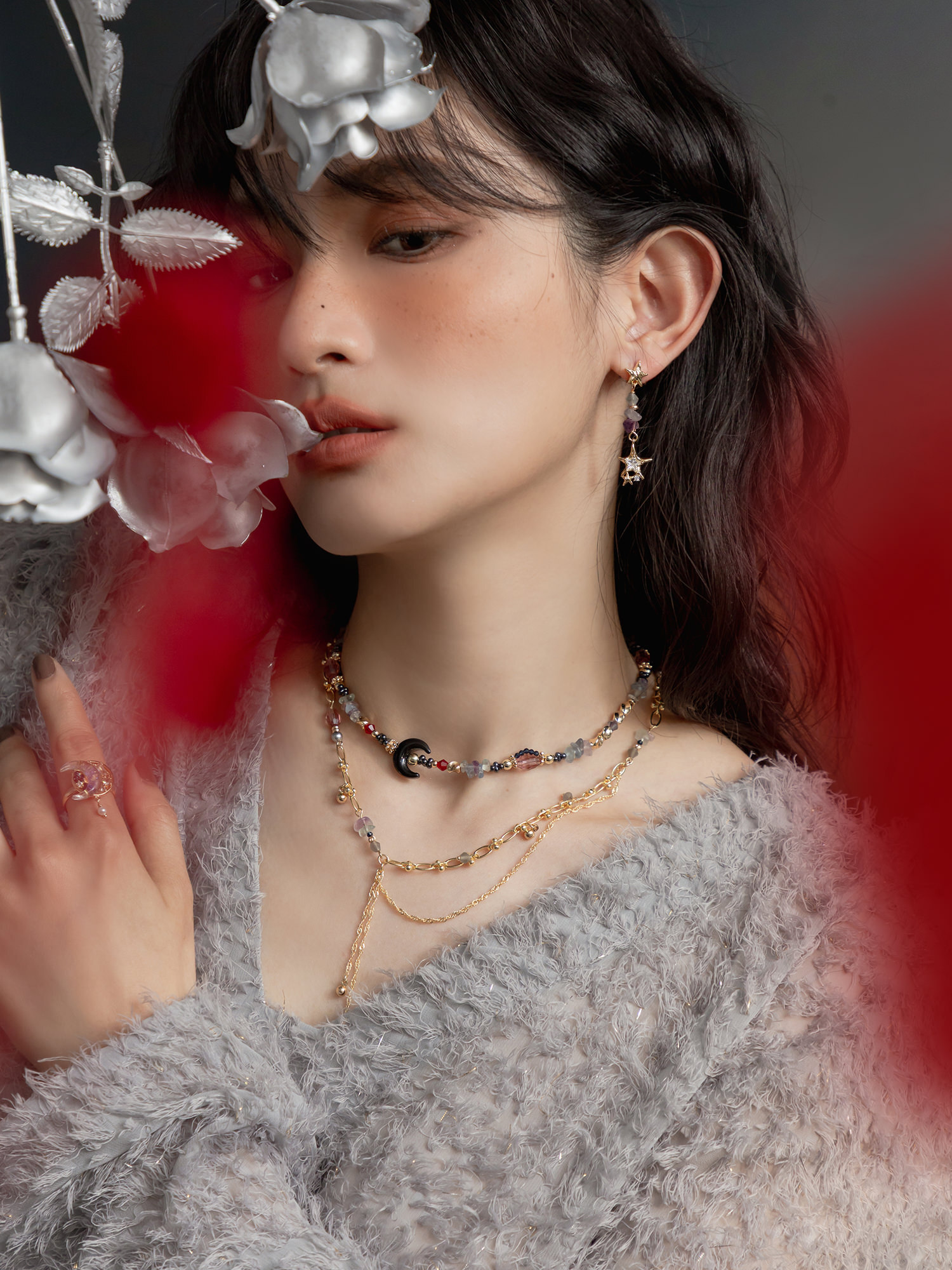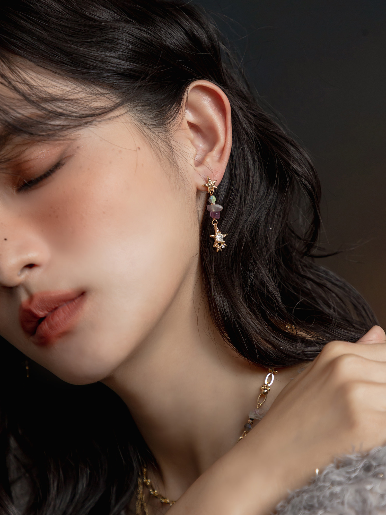 ▸ 素材:銅鍍14KGP、螢石、鋯石、菱形珠等複合材質