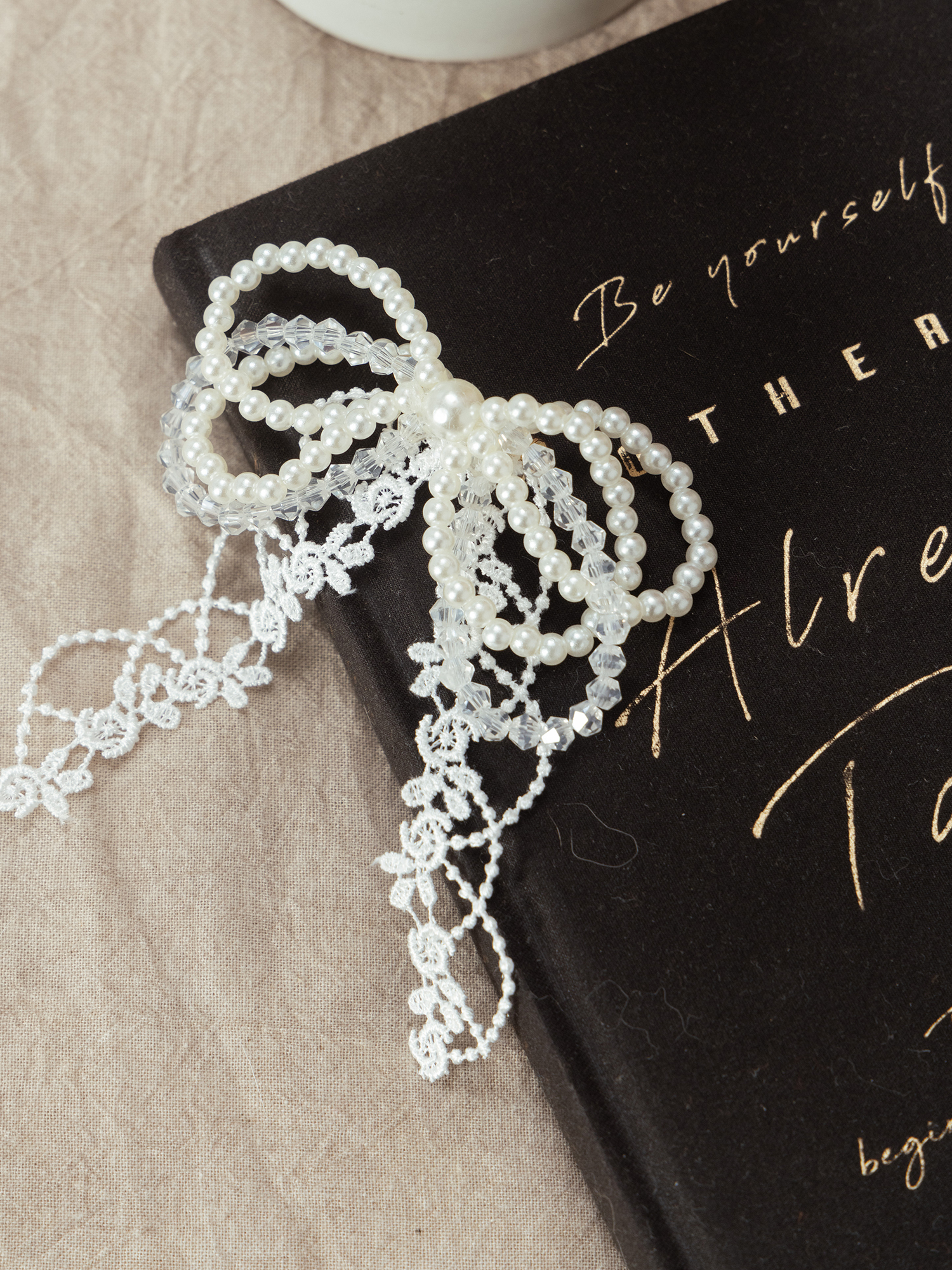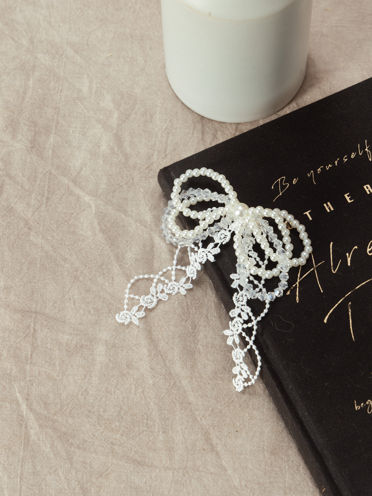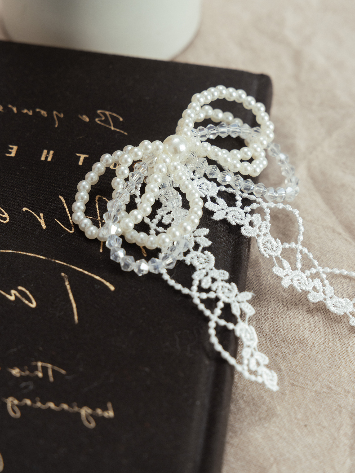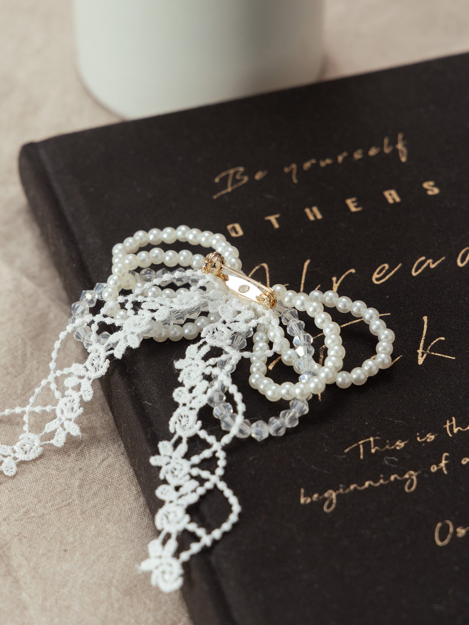浪漫瑪麗。MUCHAT手作14KGP水晶珍珠蕾絲蝶結別針