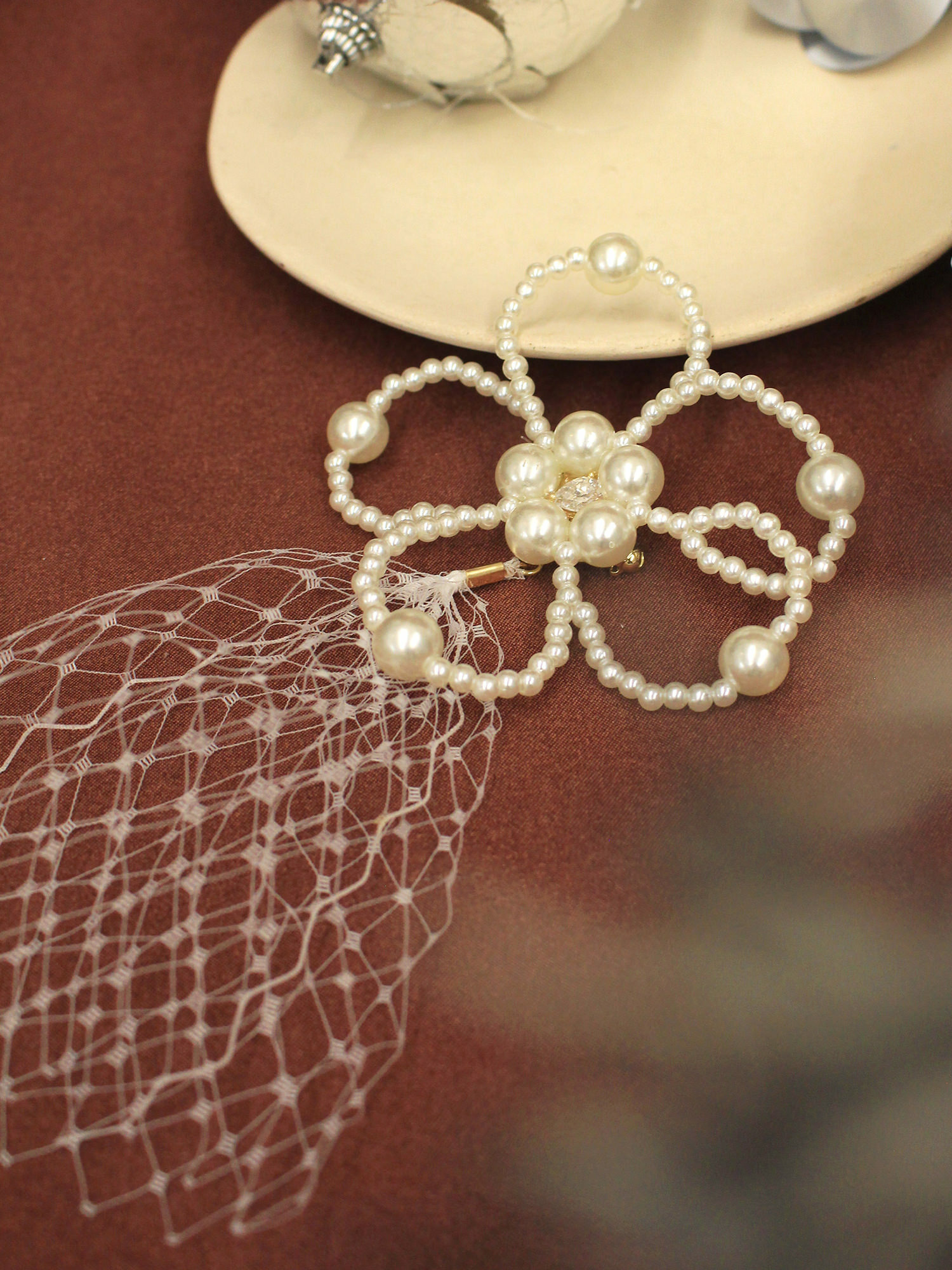環遊世界。MUCHAT手作14KGP水滴蕾絲珍珠別針
