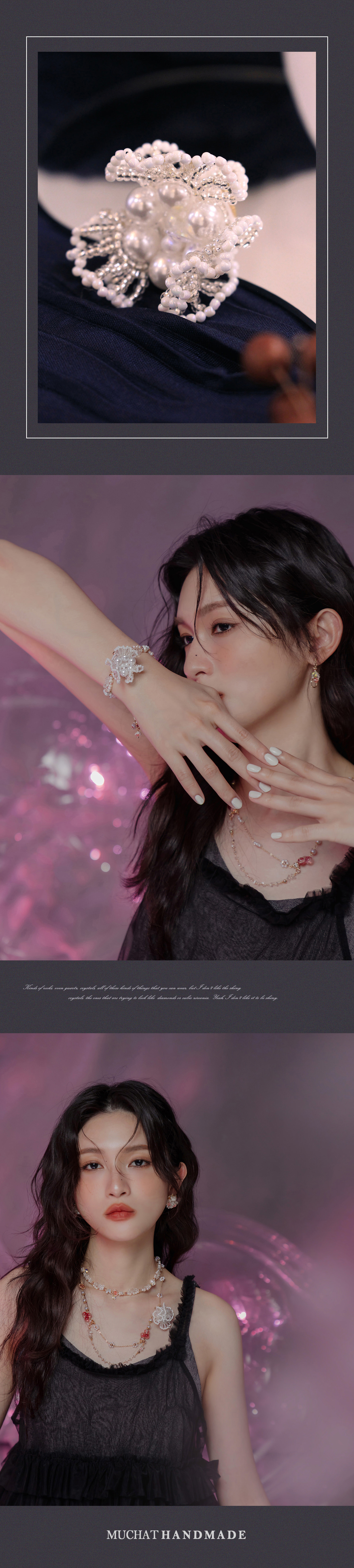 ▸ 水晶、貝殼、天然珍珠為天然材料,混色與花紋每款或有差異,鍍金屬不均、斑點、刮痕與凹洞為正常,非瑕疵。