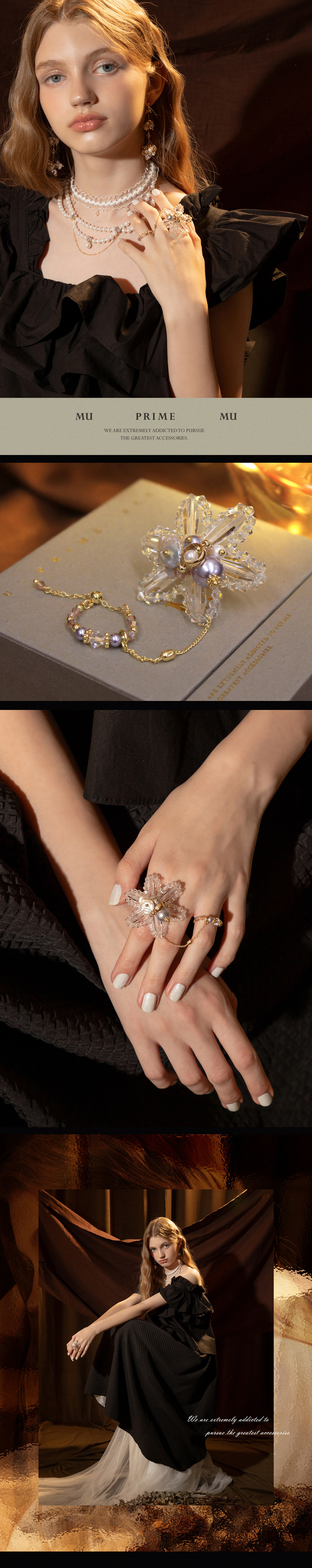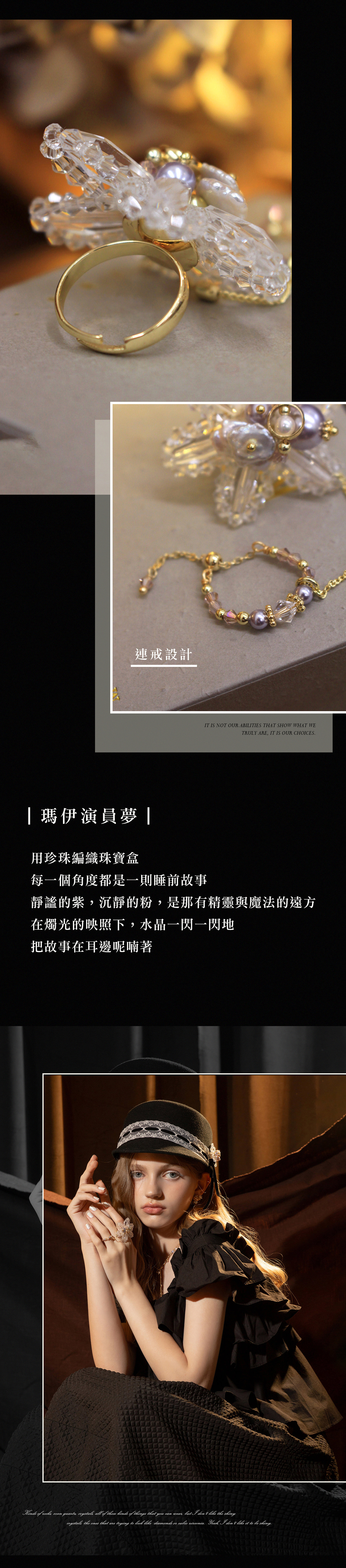 瑪伊演員夢。MUCHAT手作14KGP施華洛珍珠雪花戒指