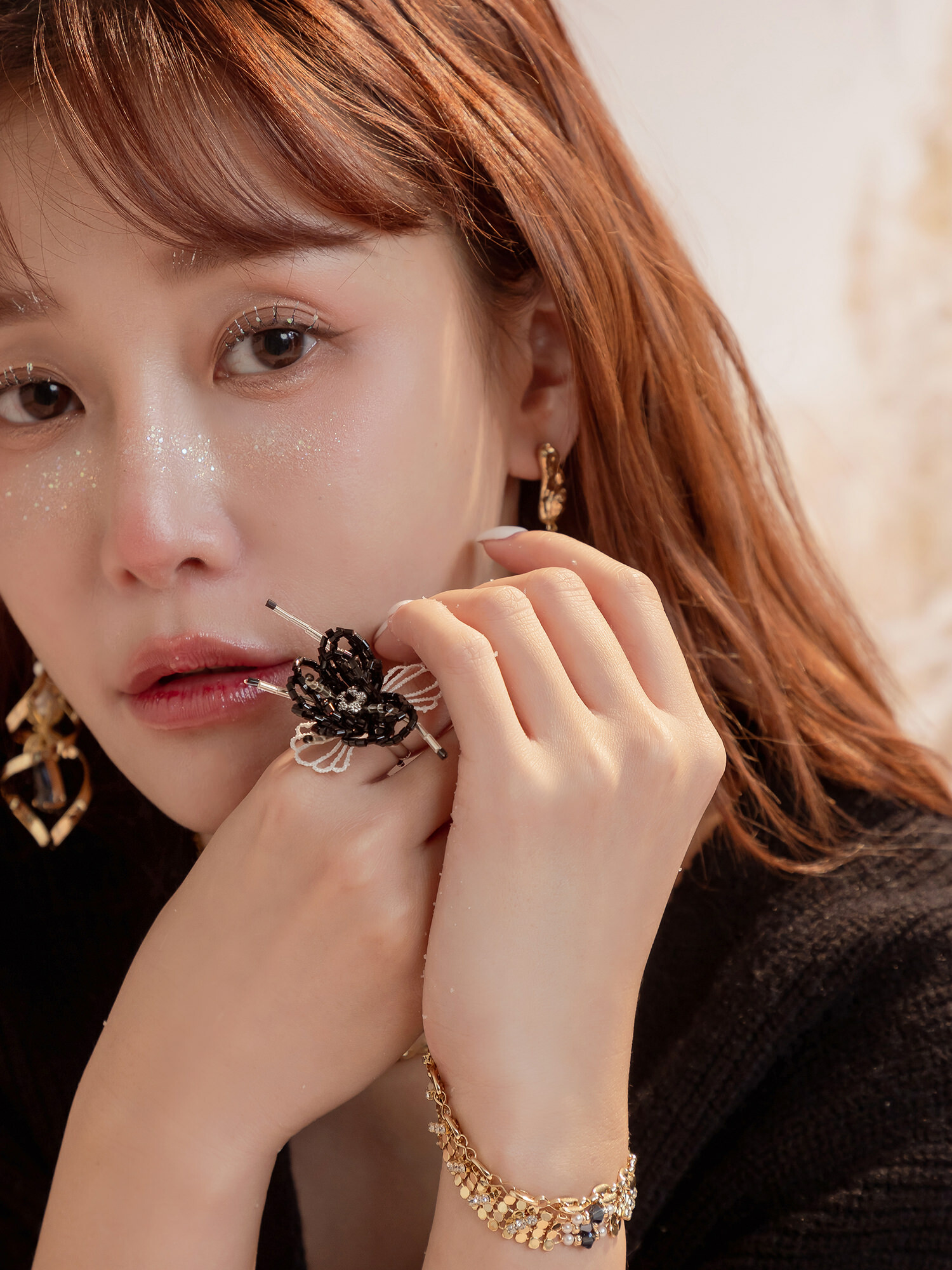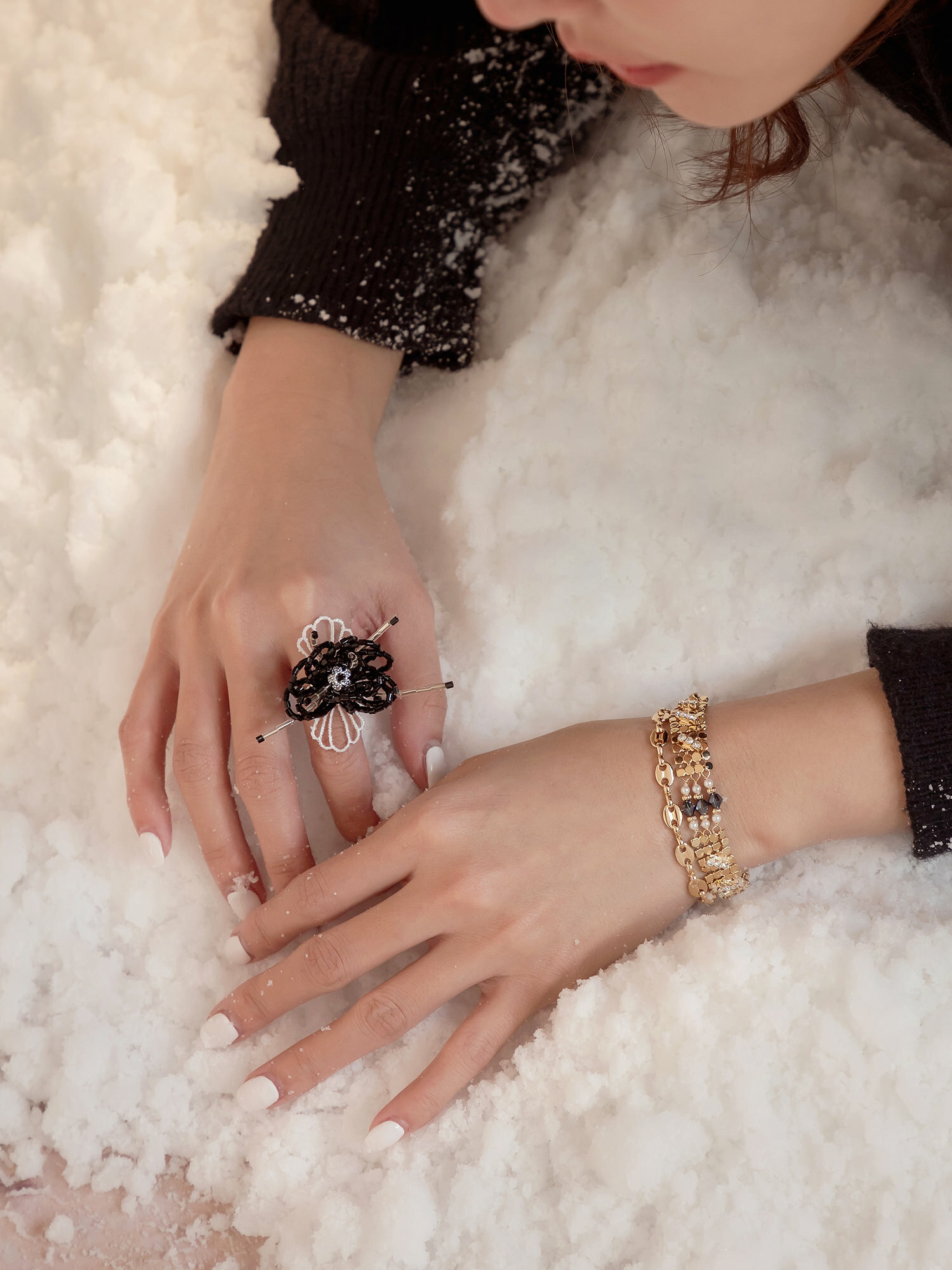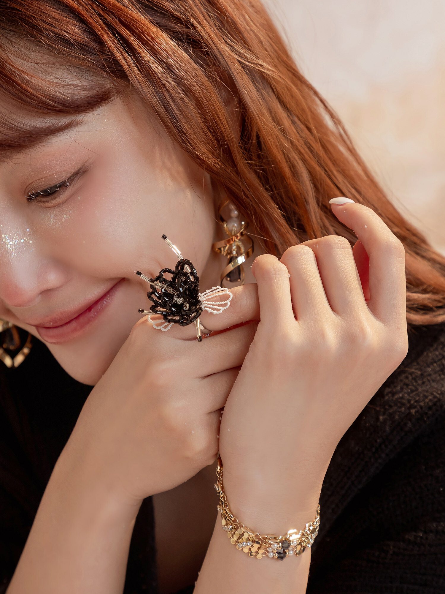 黑夜白晝日。MUCHAT手作立體珠花蕾絲戒指