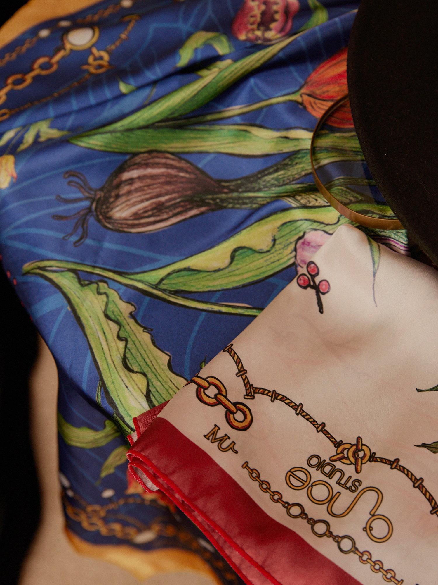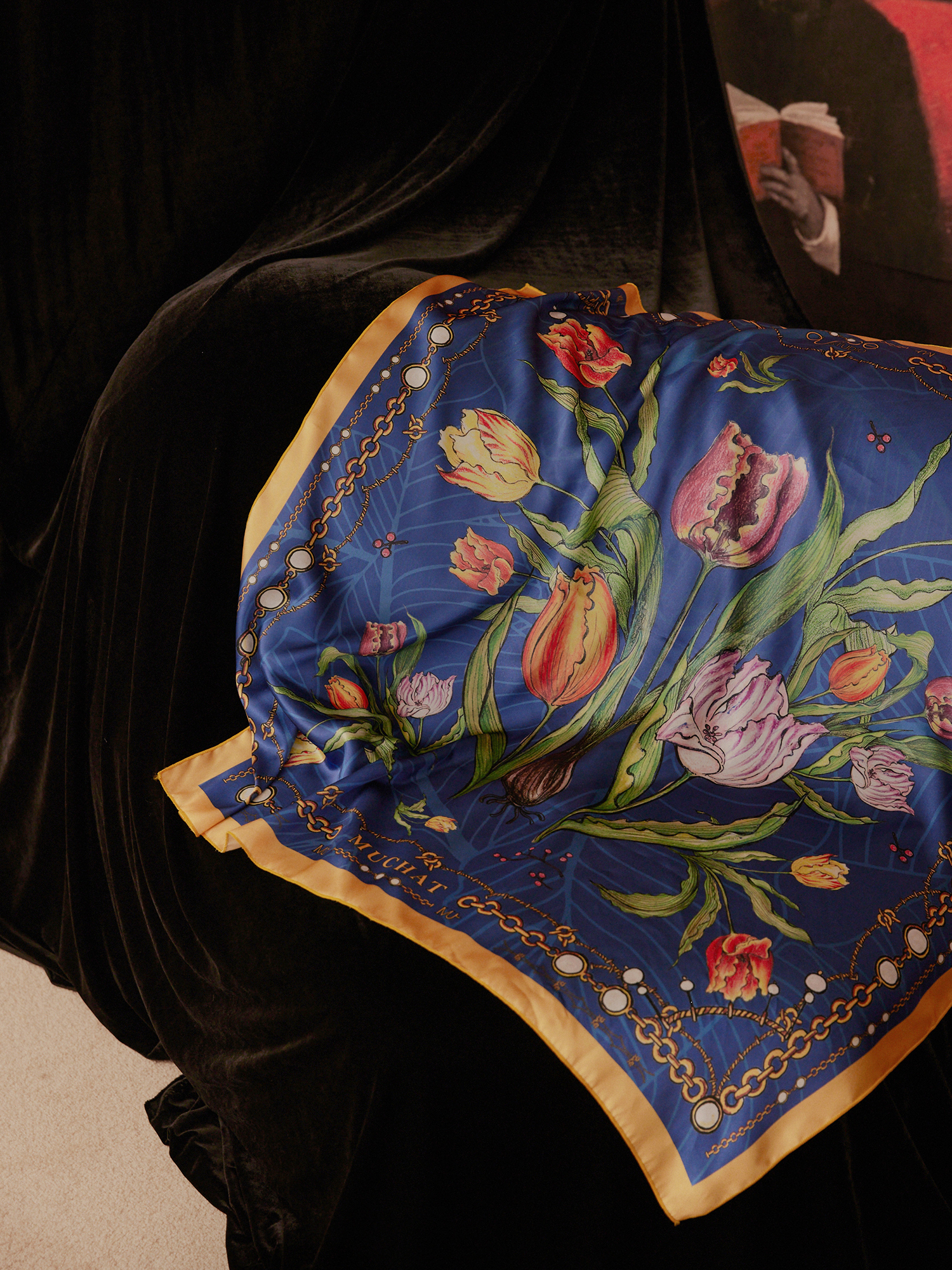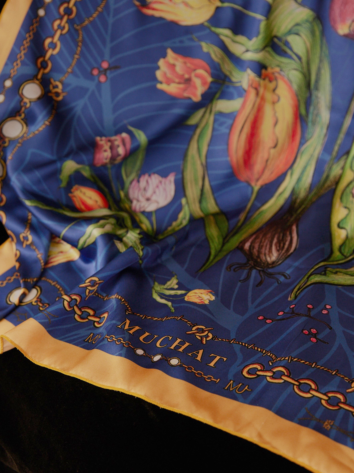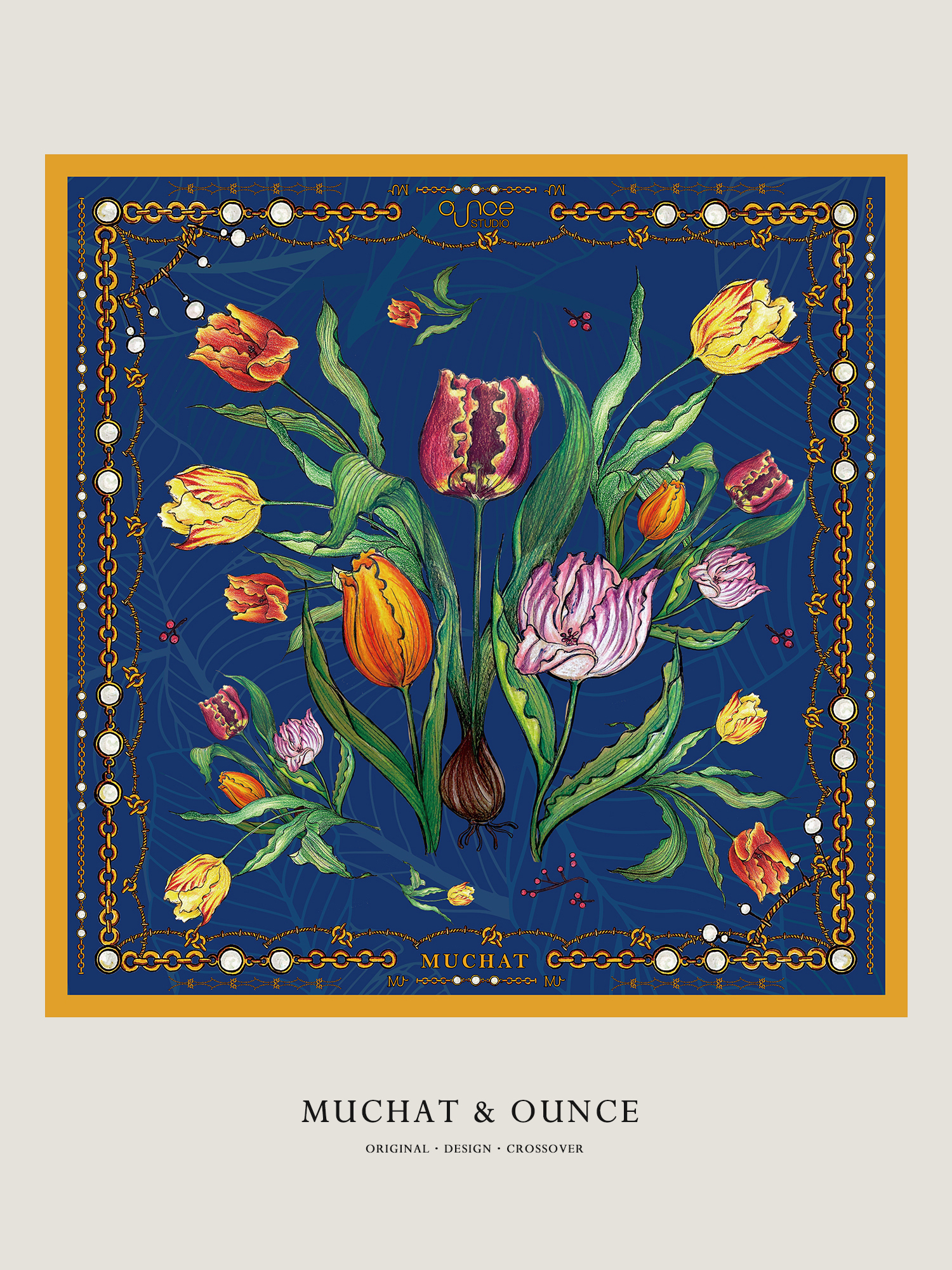 Muchat x Ounce 聯名浮世花卉絲巾-藍