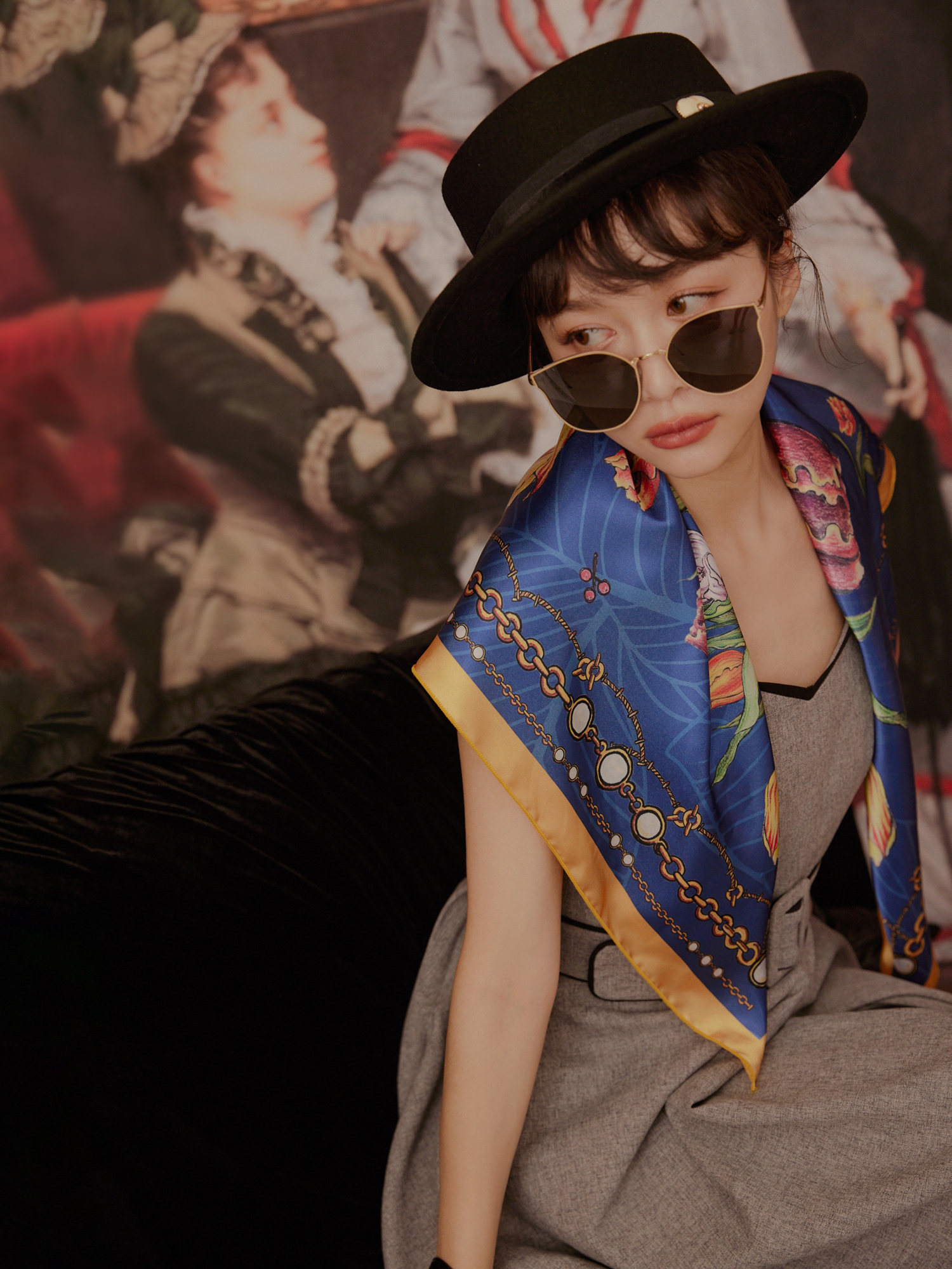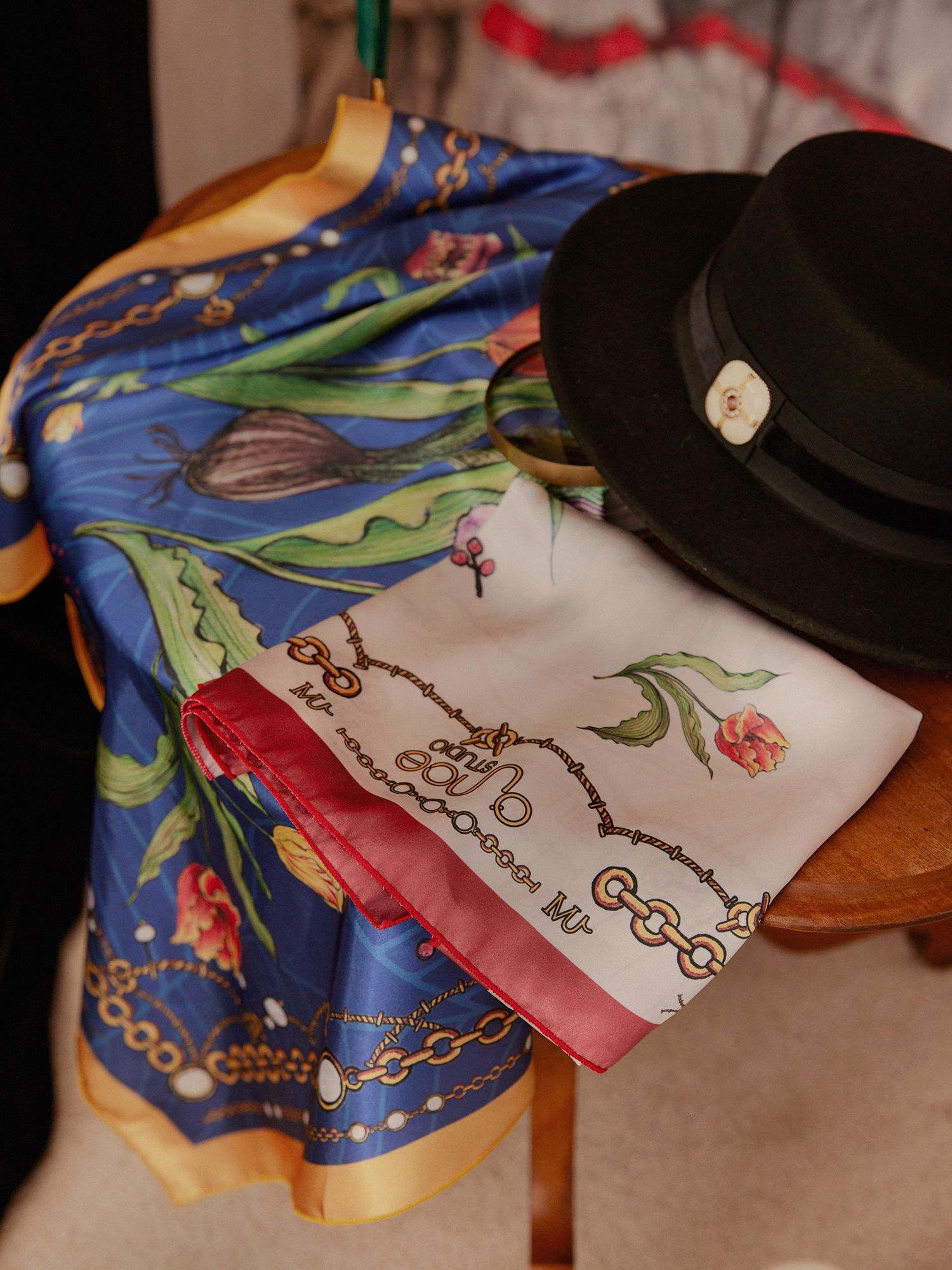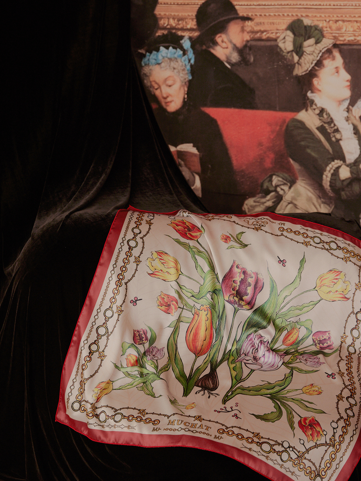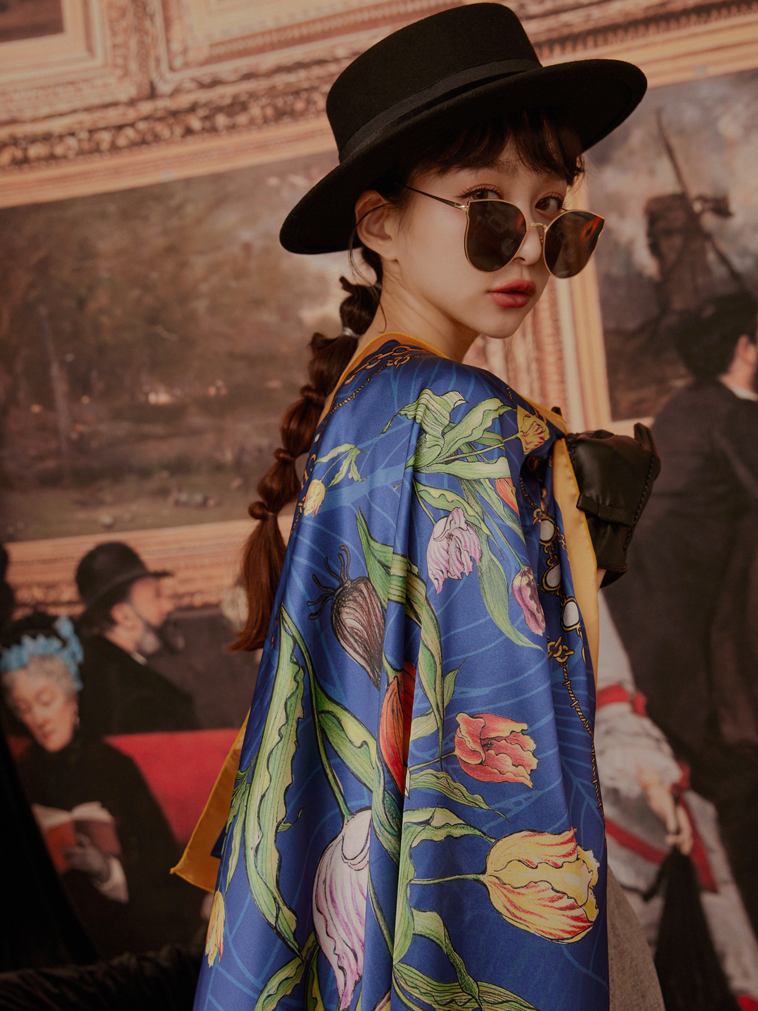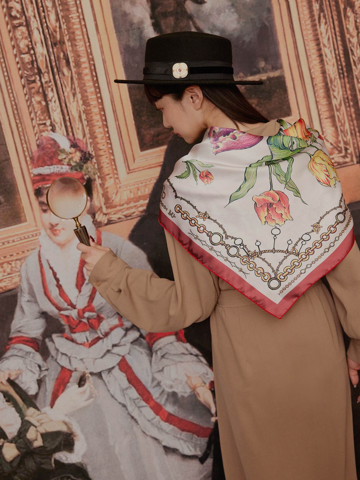 Muchat x Ounce 聯名浮世花卉絲巾-藍
