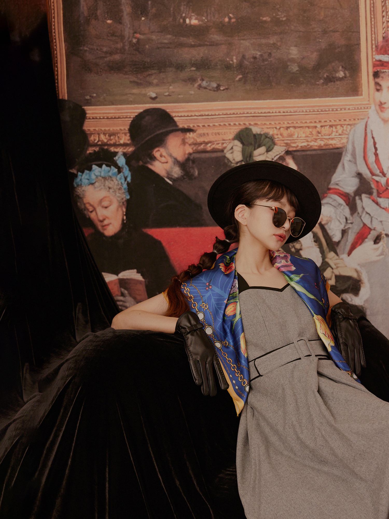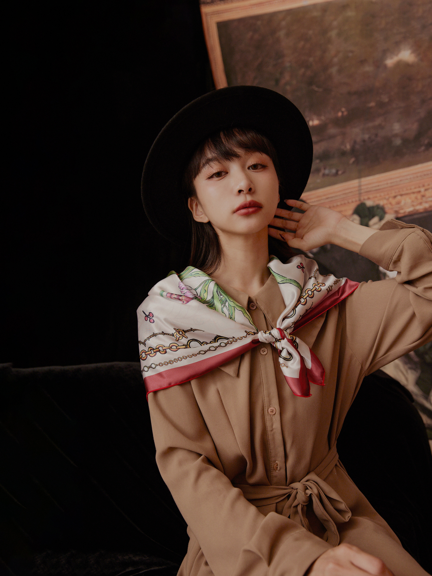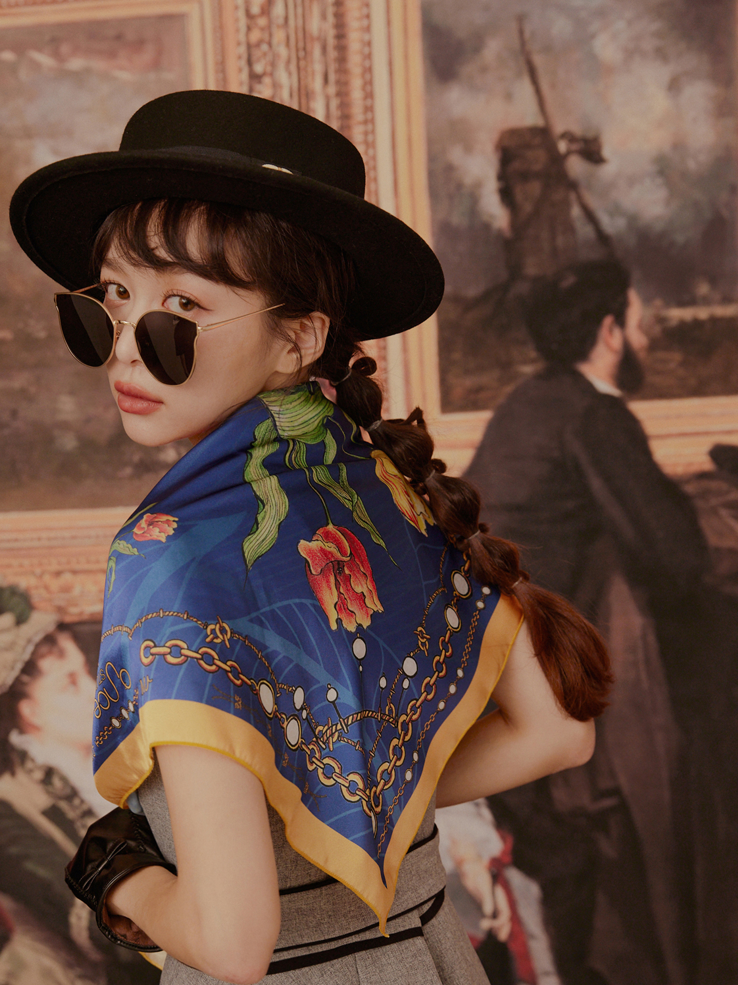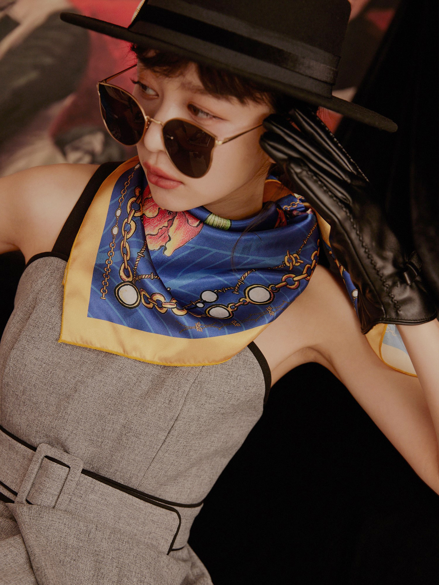 Muchat x Ounce 聯名浮世花卉絲巾-藍