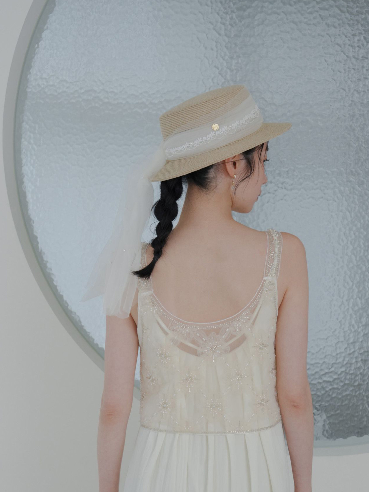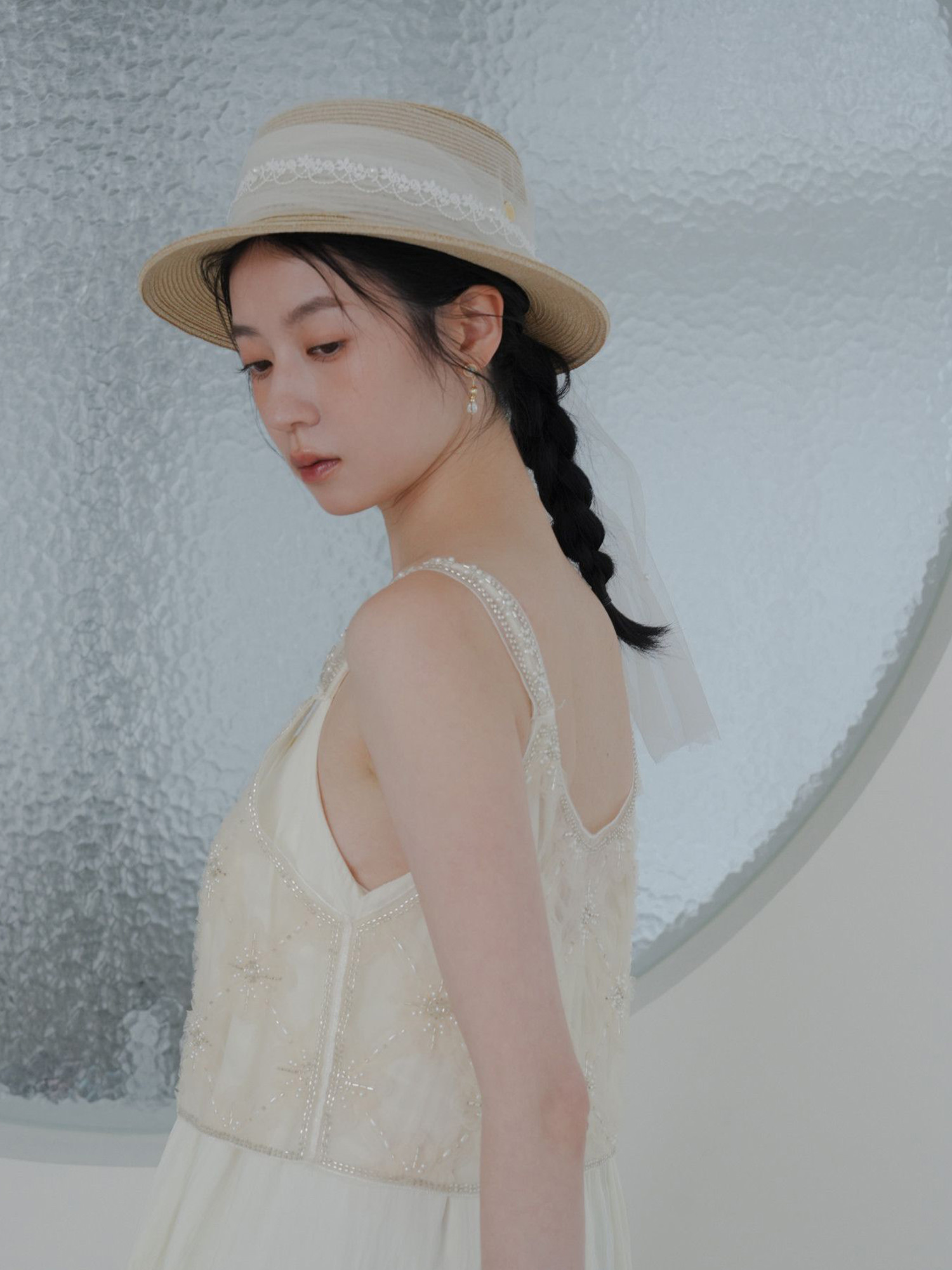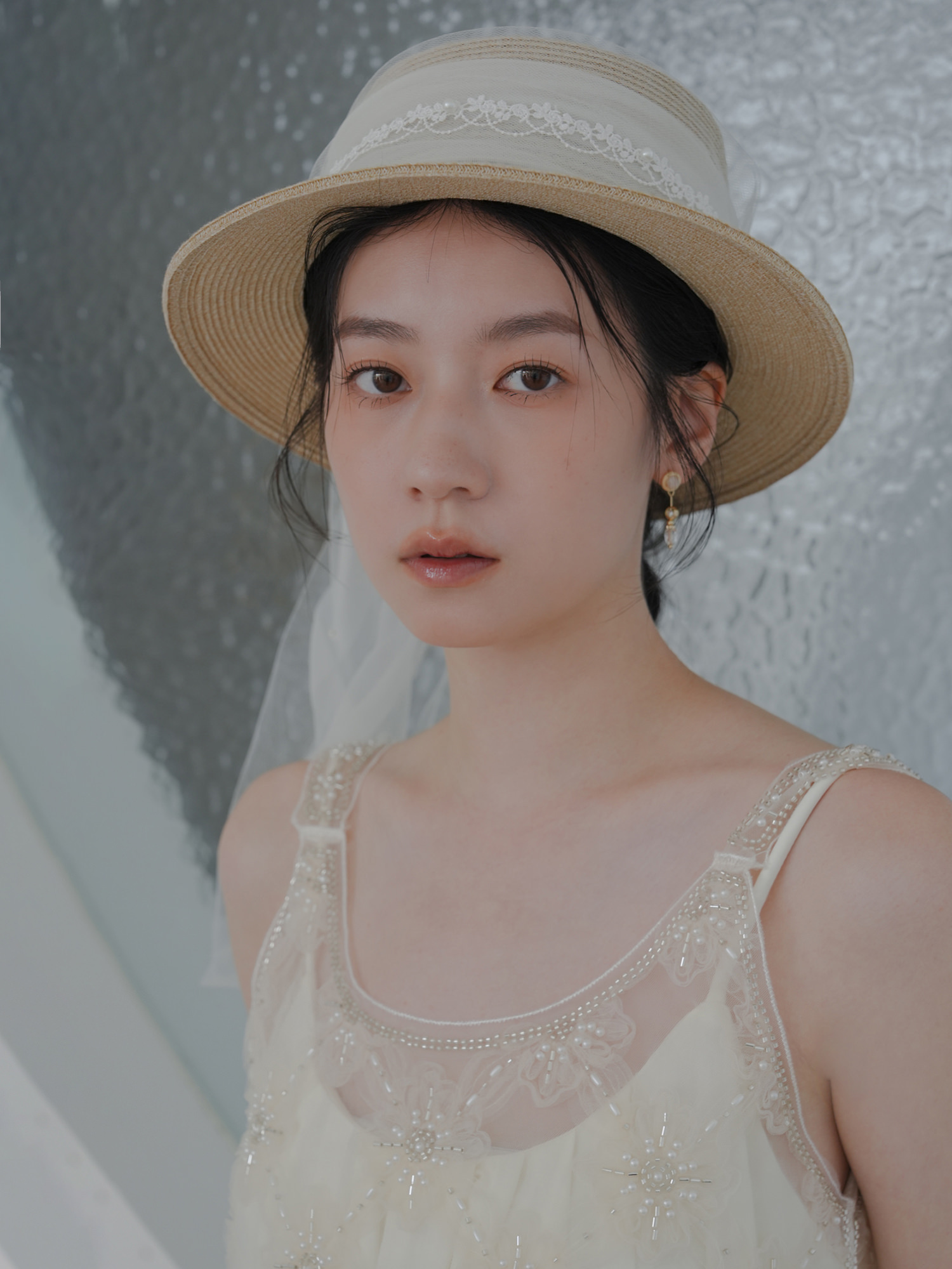 ▸ 素材:聚酯纖維、蕾絲、仿珠等複合材質