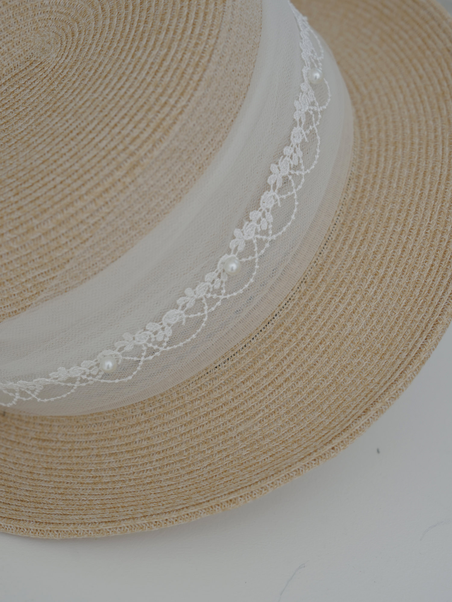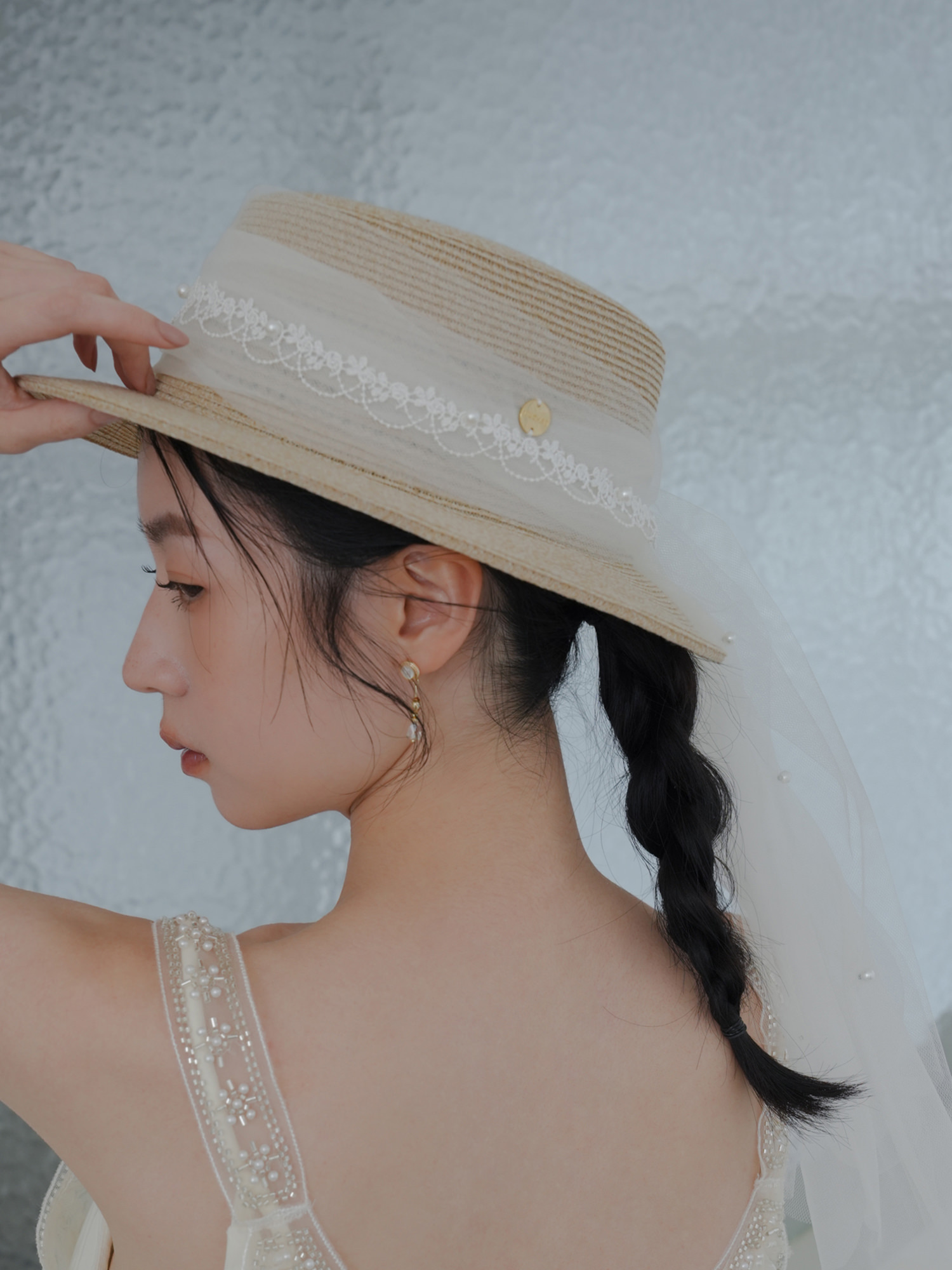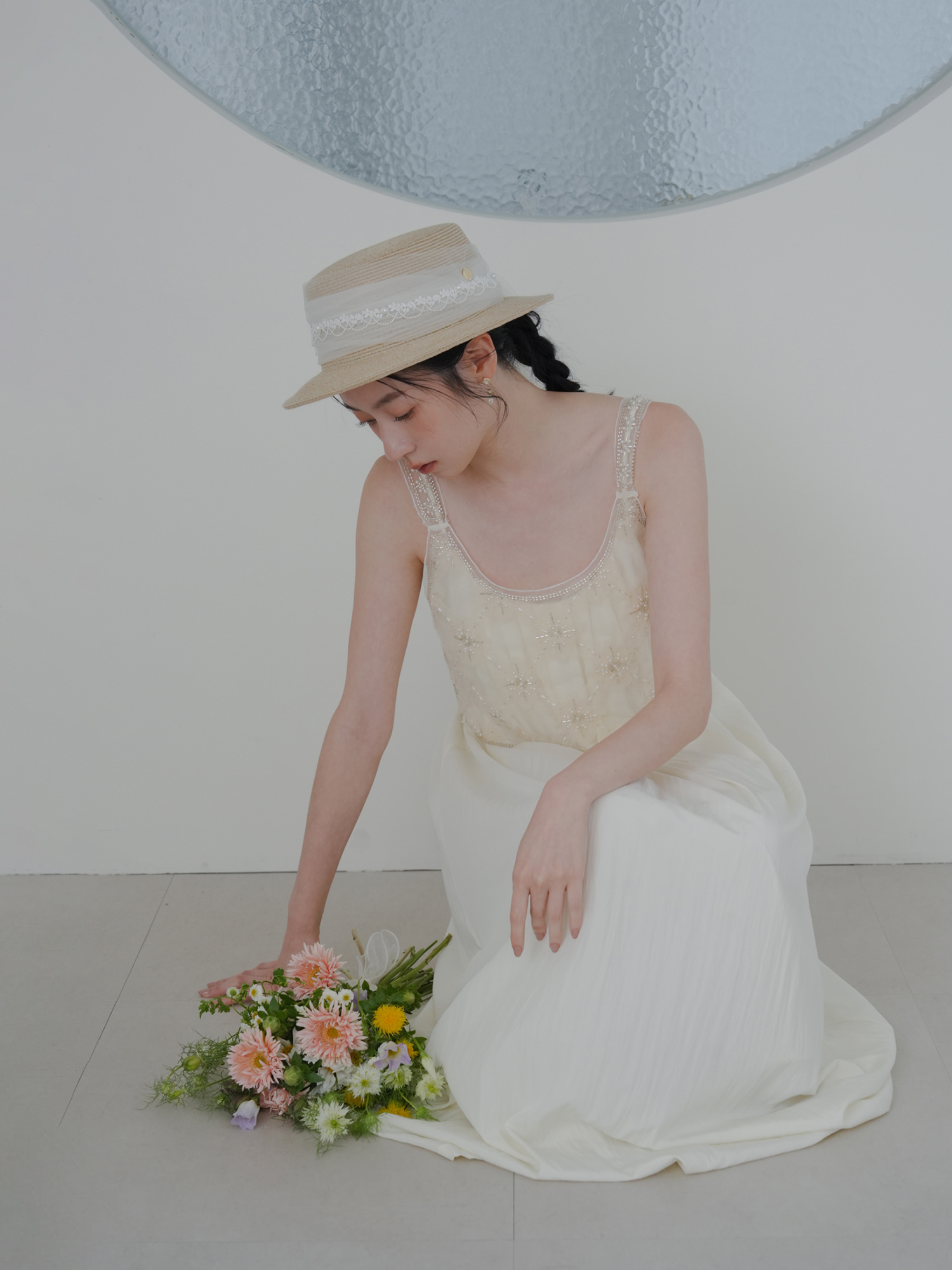 ▸ 素材:聚酯纖維、蕾絲、仿珠等複合材質