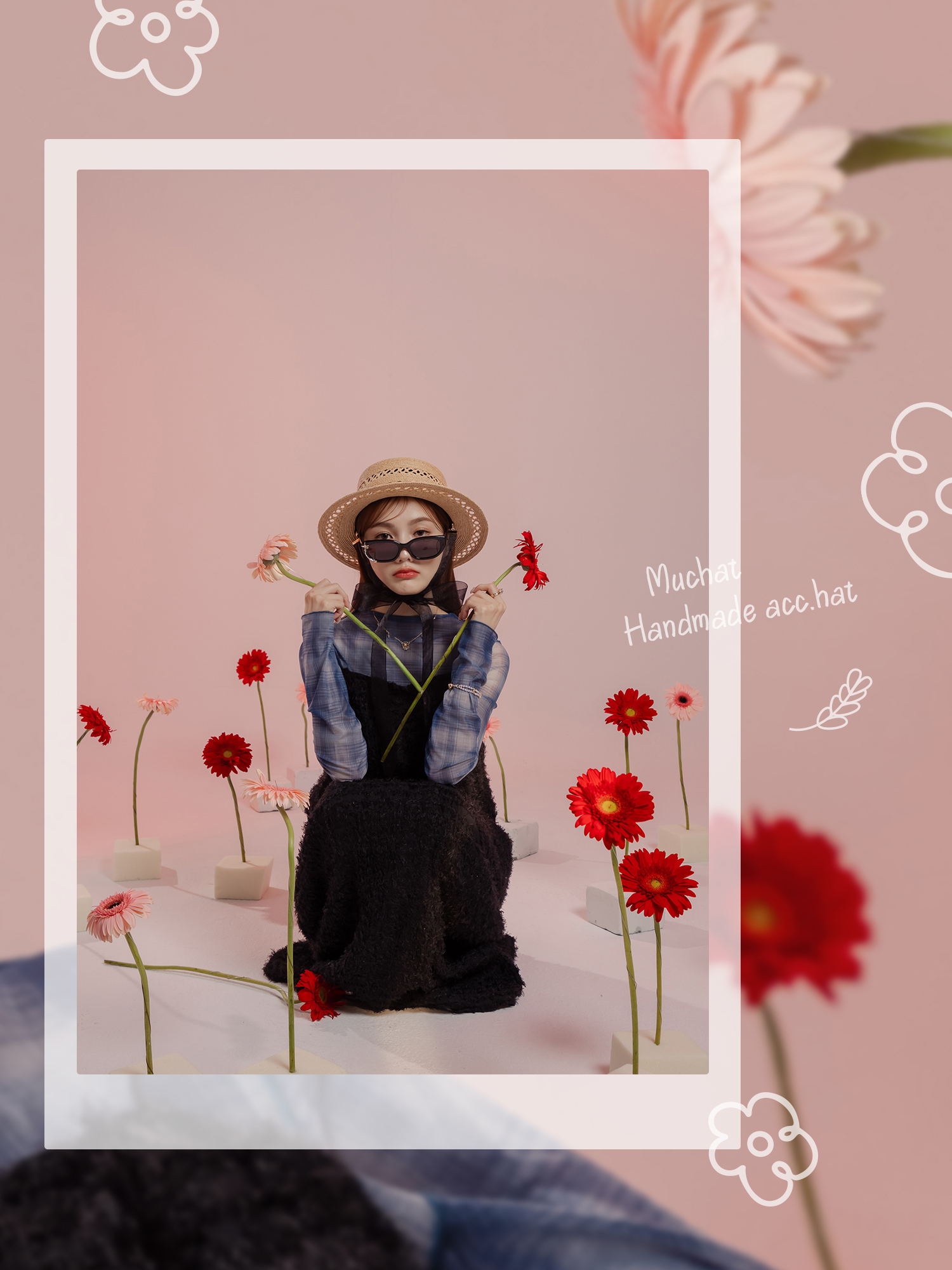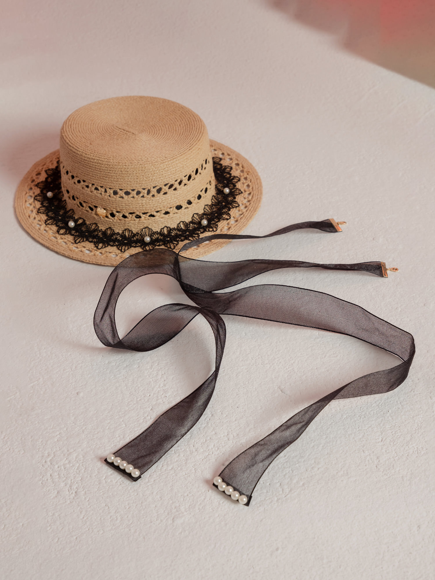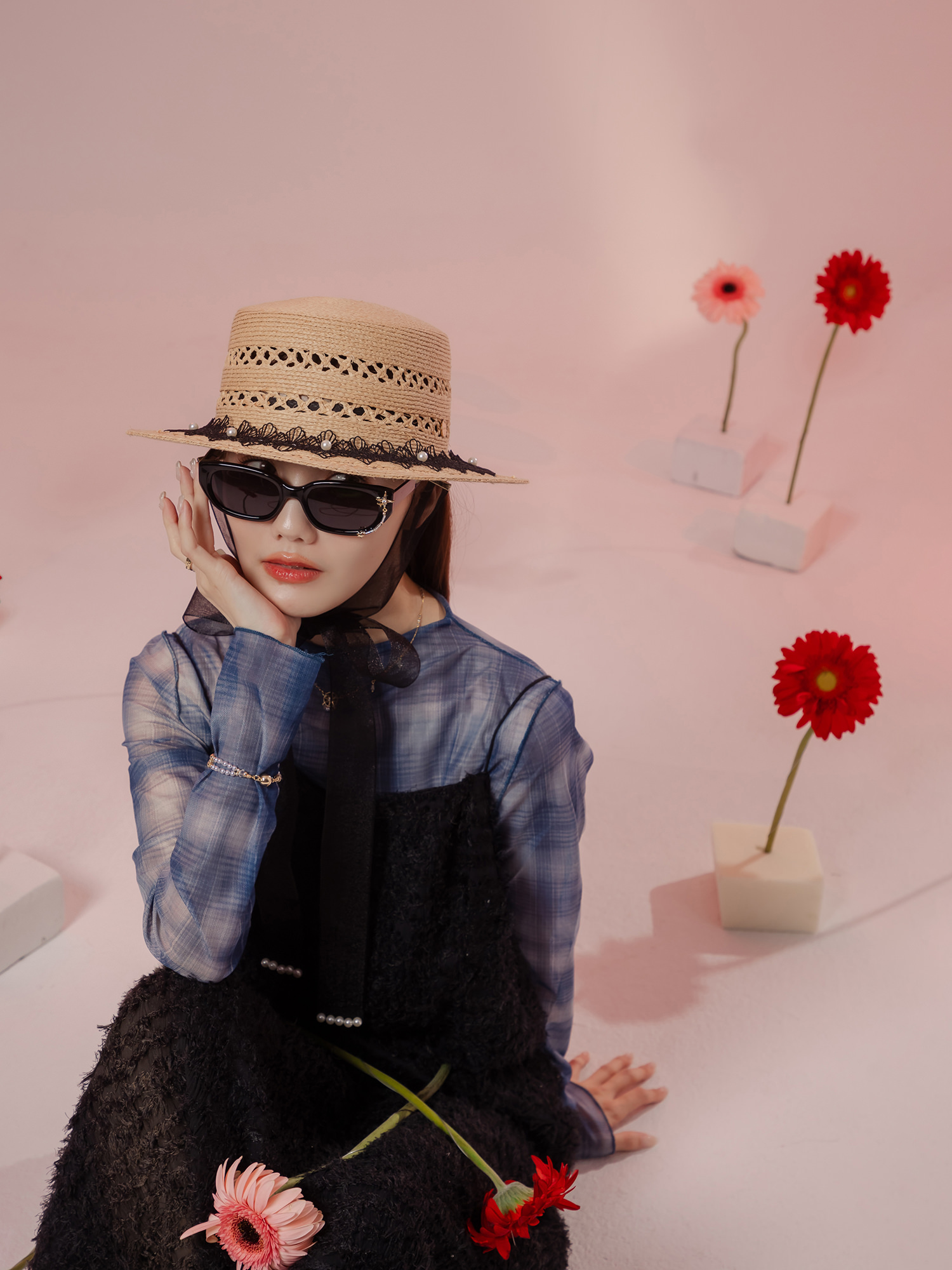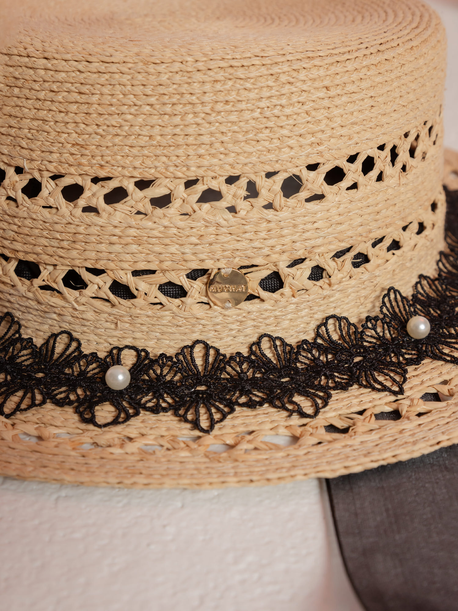 紅雀斑女子。MUCHAT手作蕾絲珍珠綁帶拉菲草平頂草帽