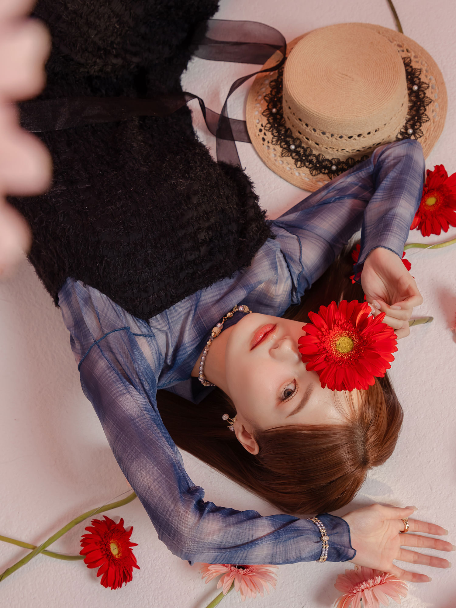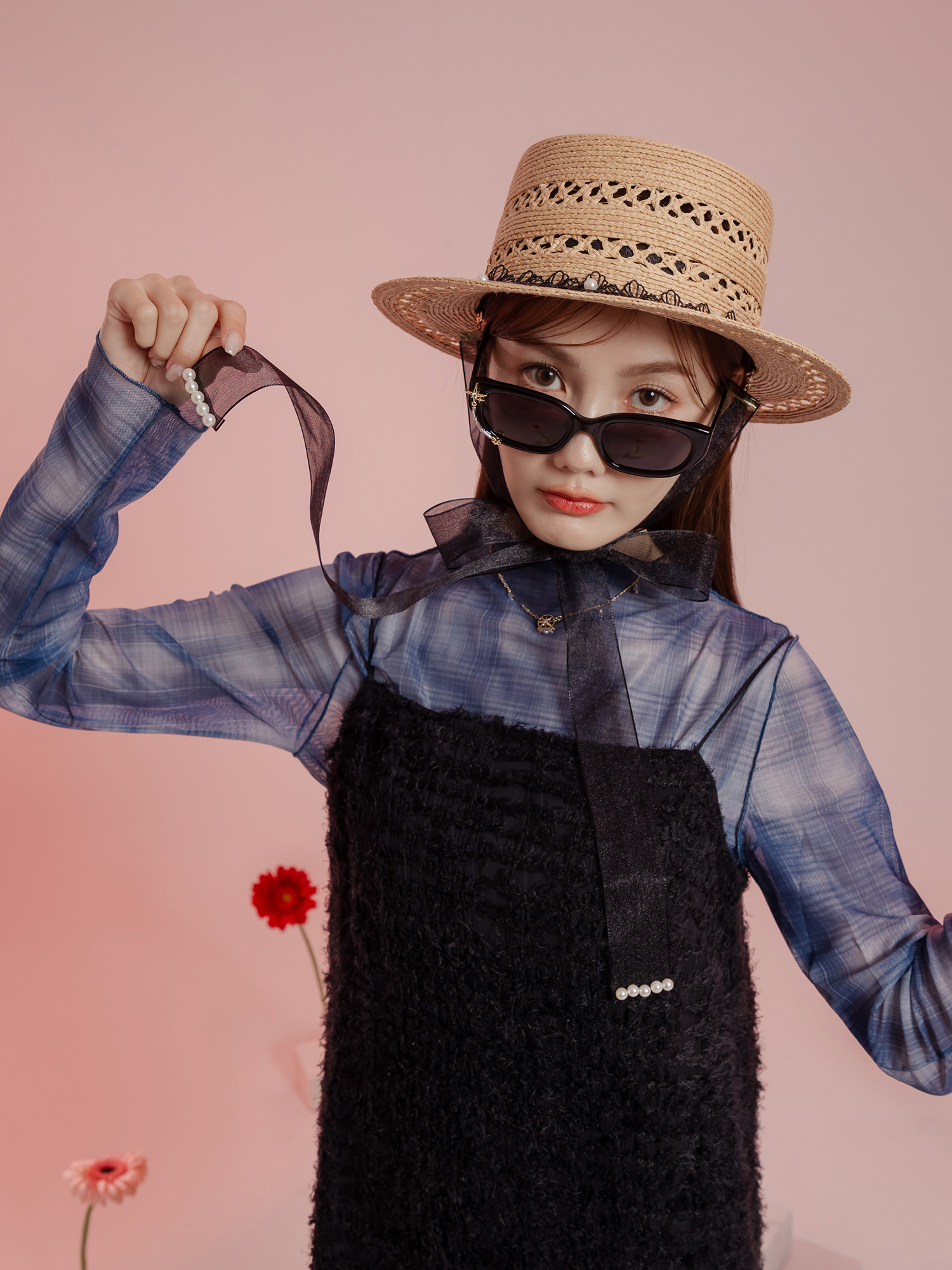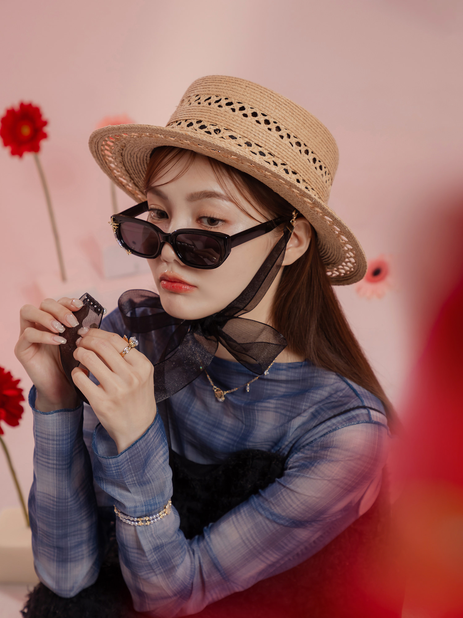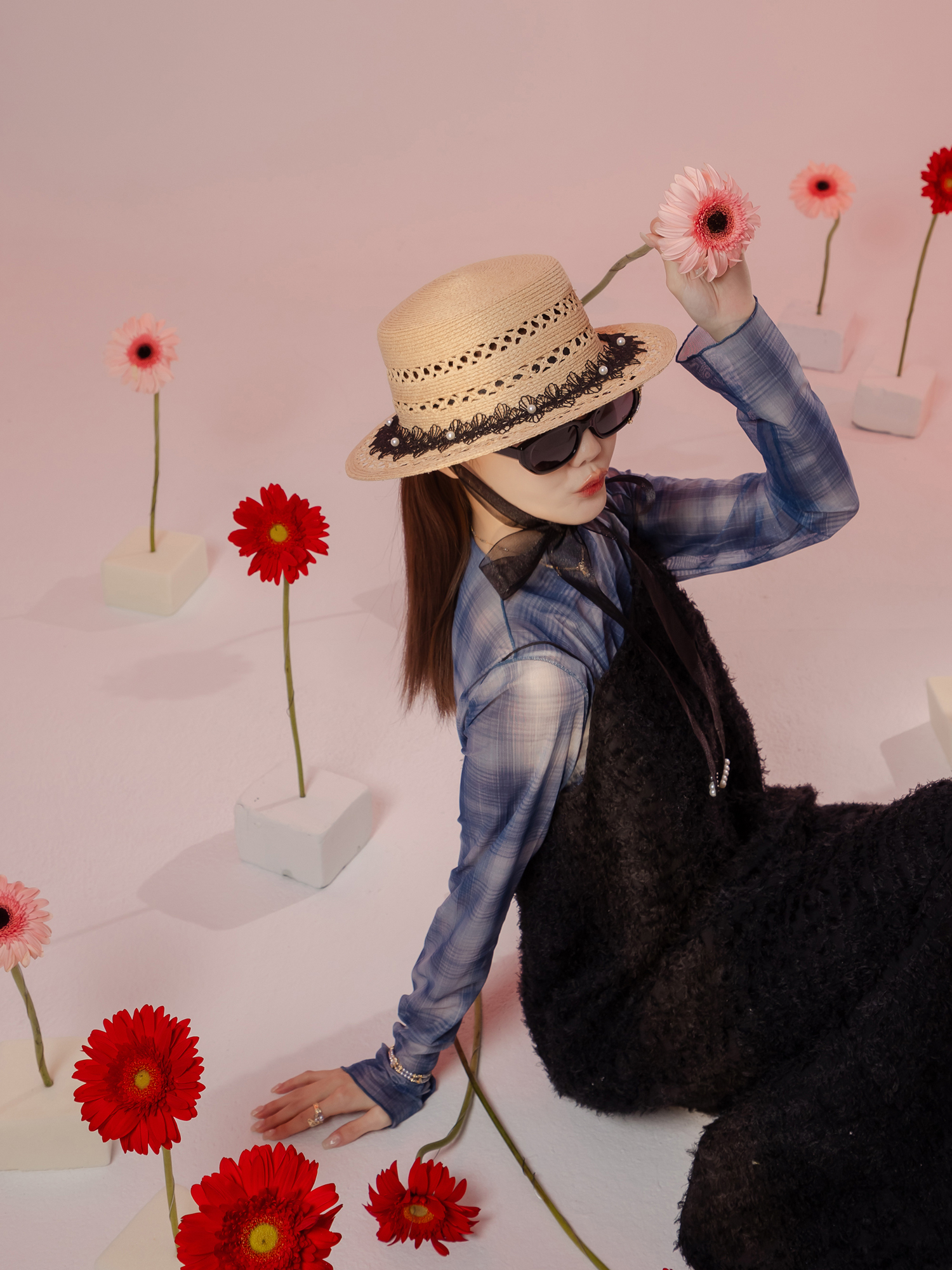 紅雀斑女子。MUCHAT手作蕾絲珍珠綁帶拉菲草平頂草帽