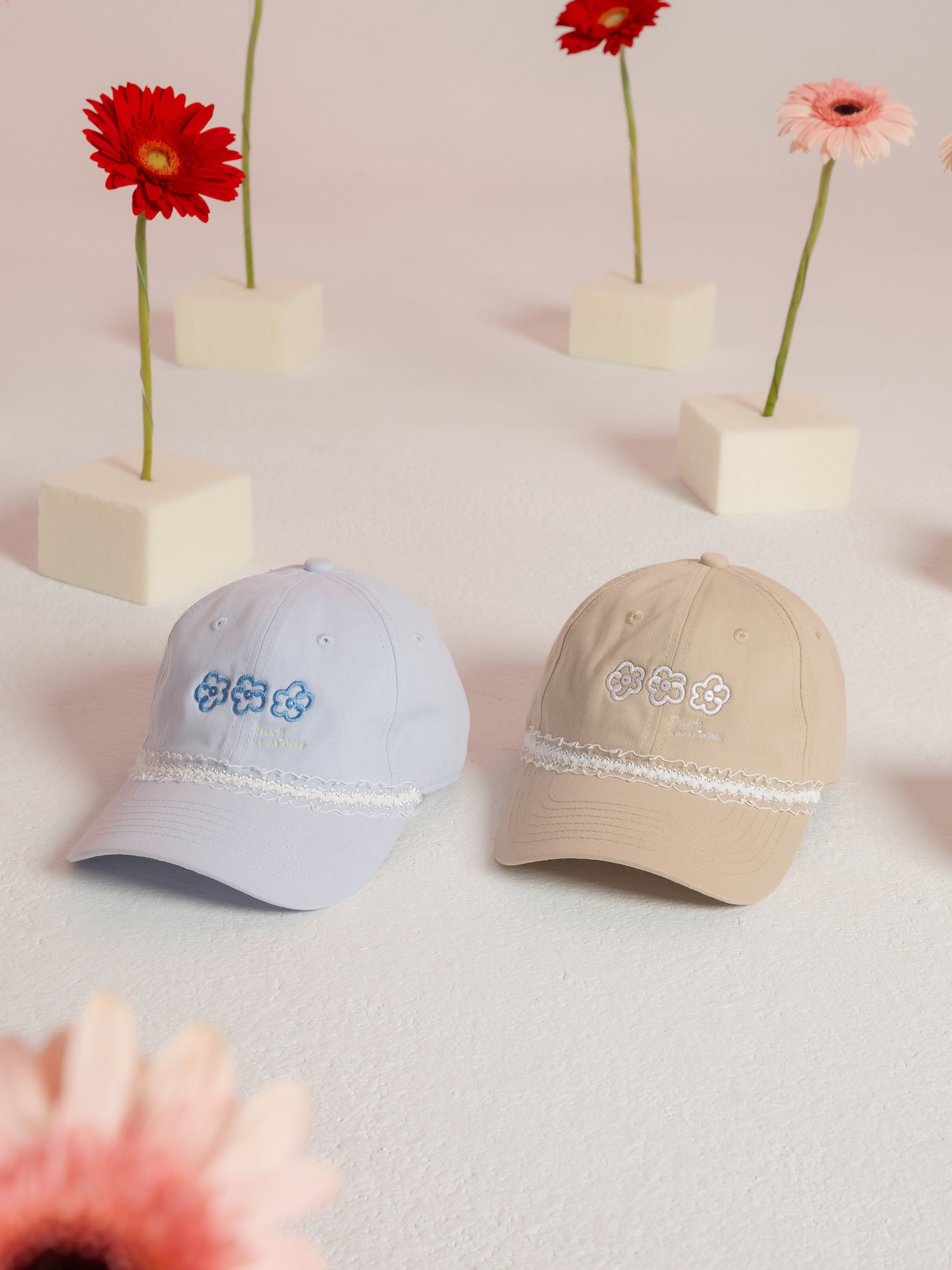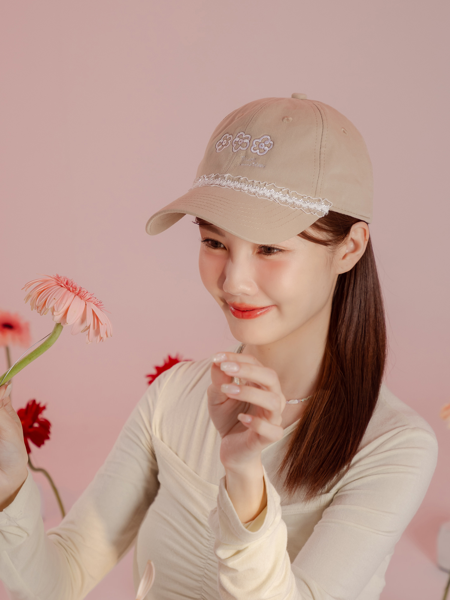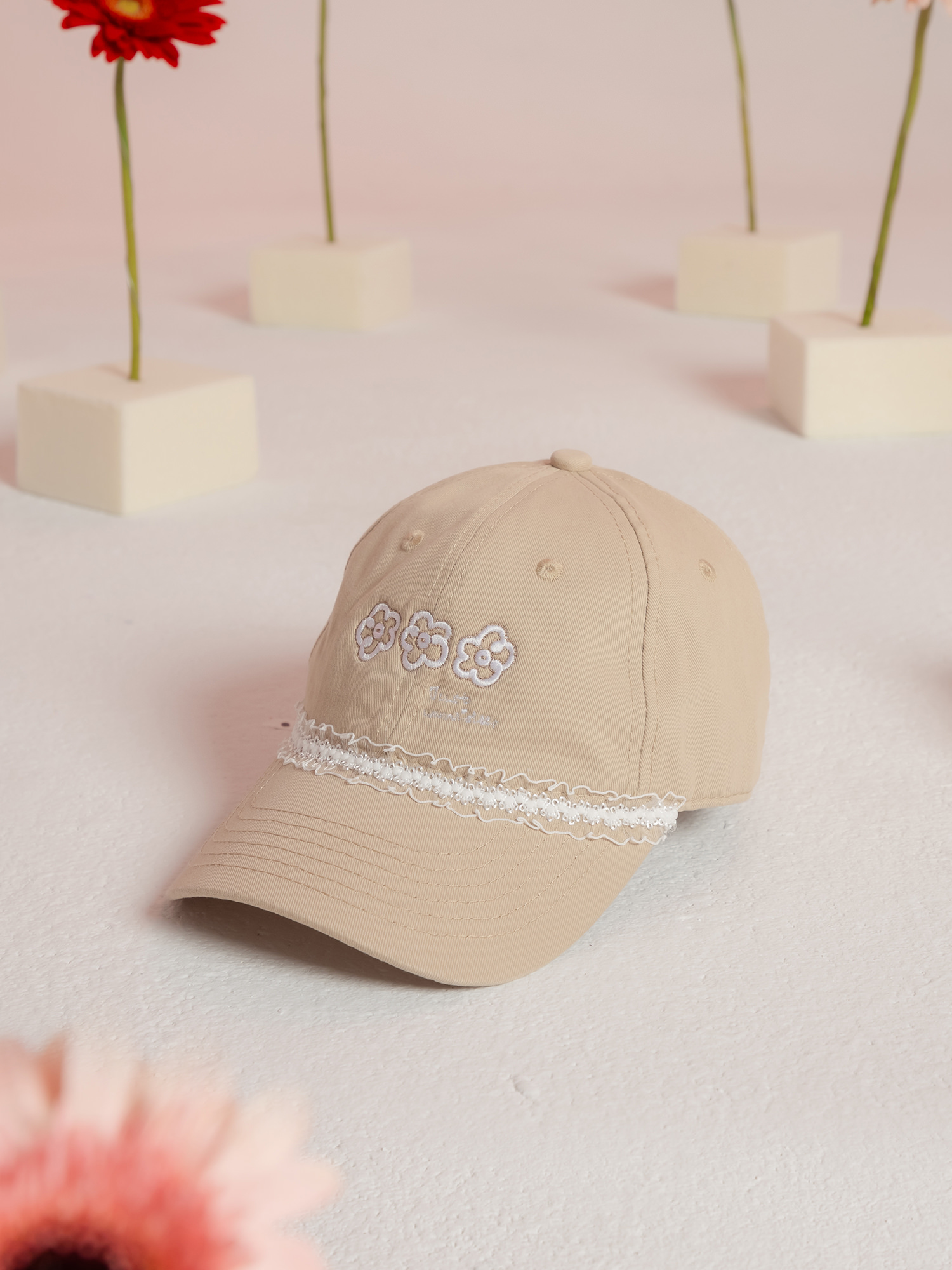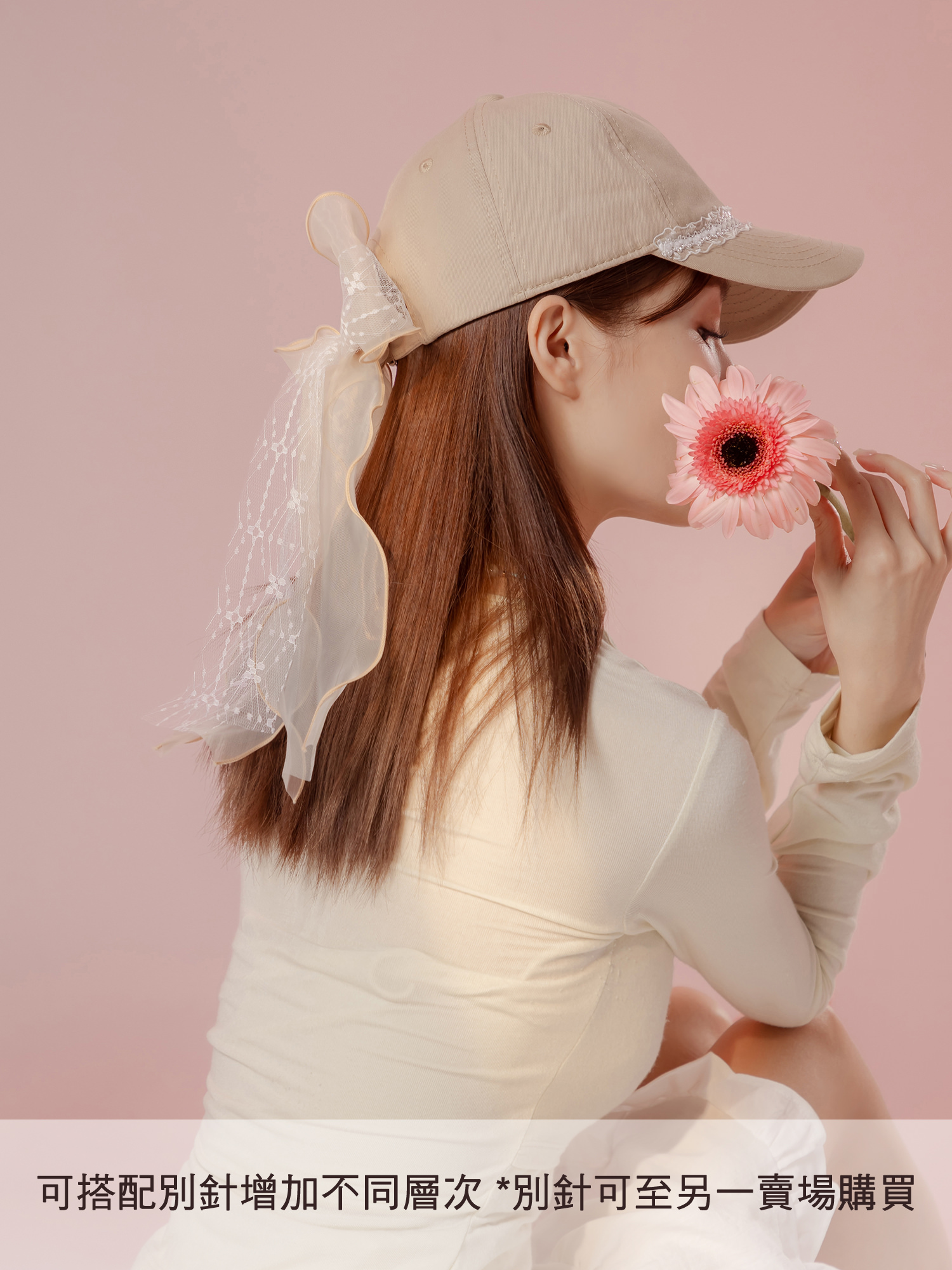 週末計畫。MUCHAT手作刺繡小花蕾絲棒球帽 (素帽卡其不含別針)