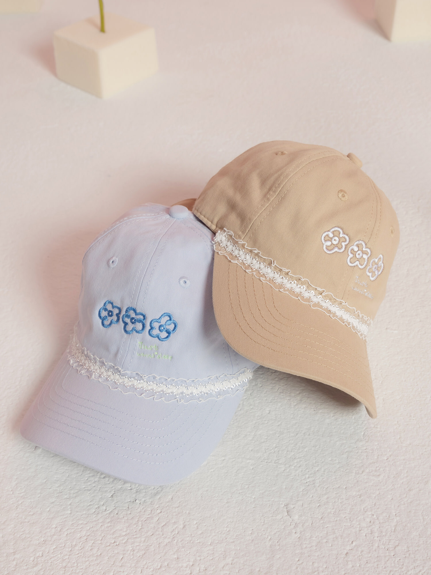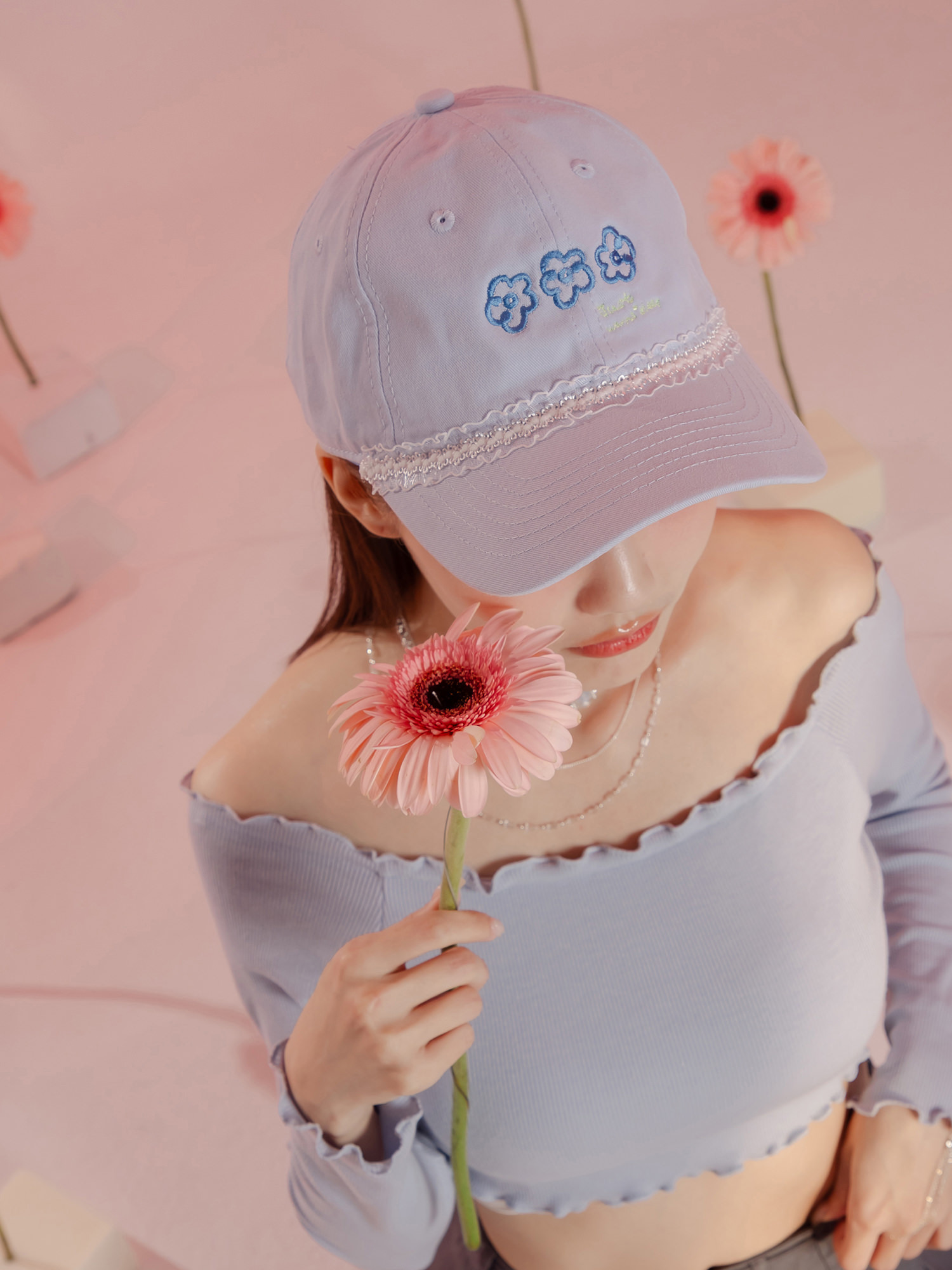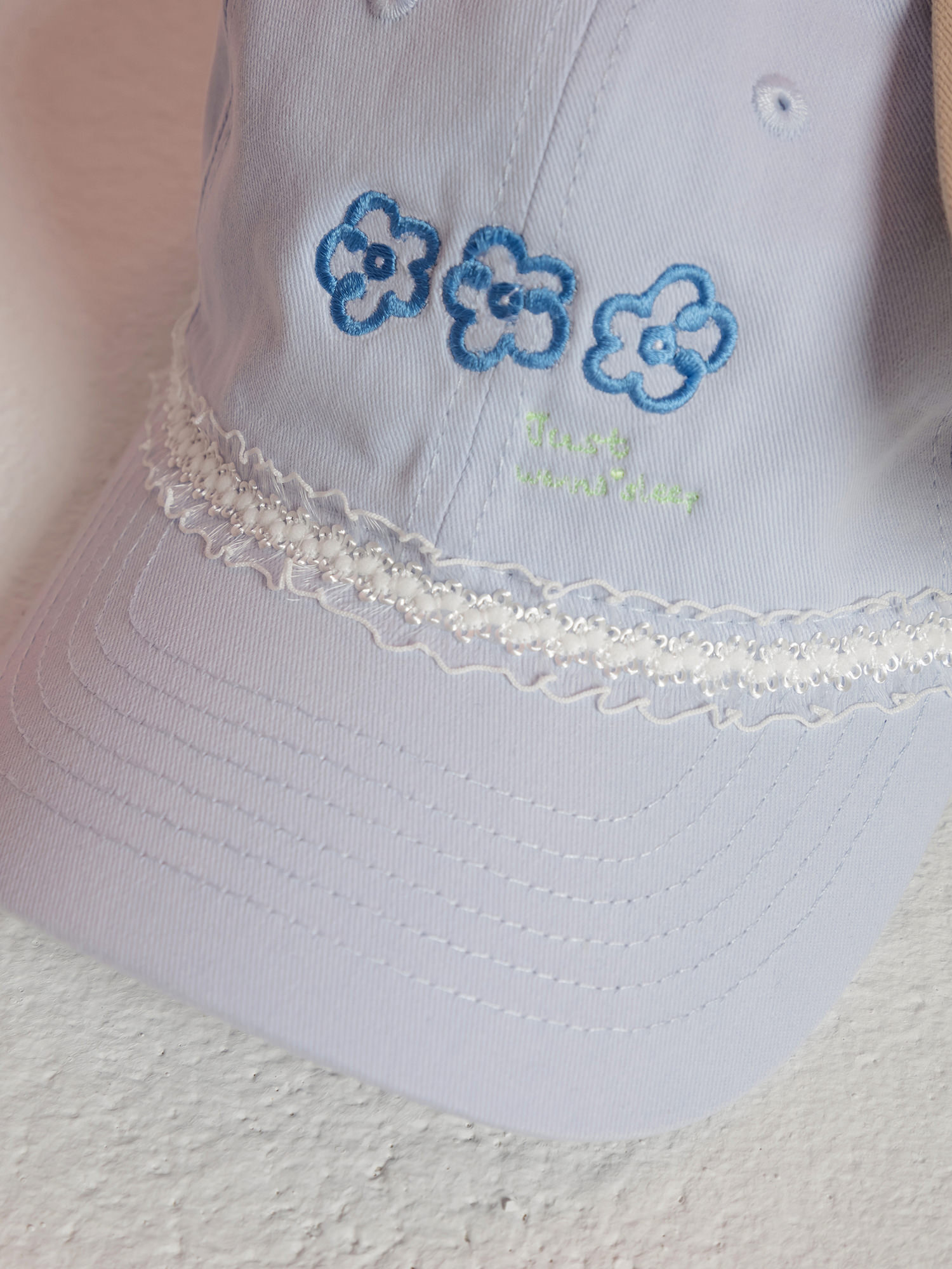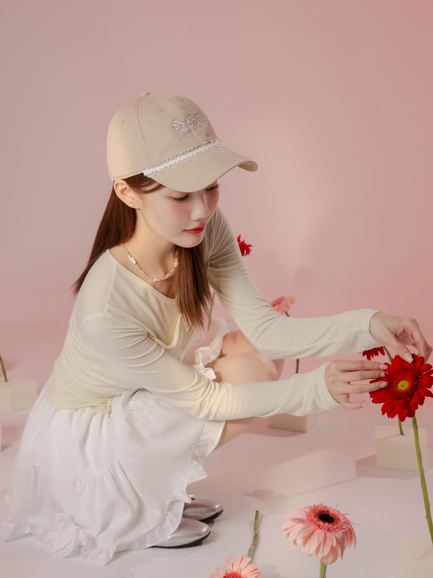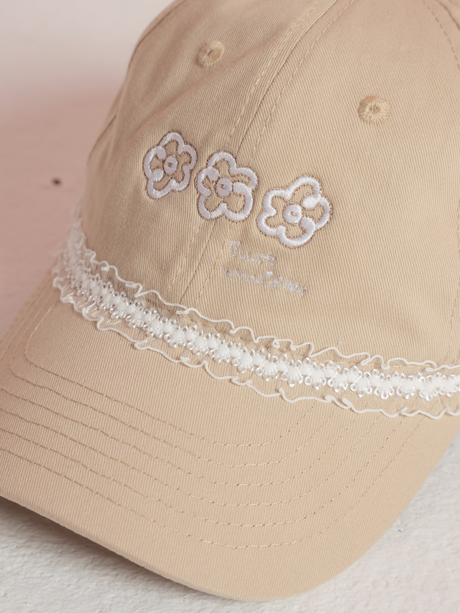 週末計畫。MUCHAT手作刺繡小花蕾絲棒球帽 (素帽卡其不含別針)